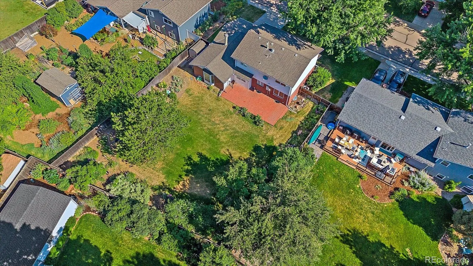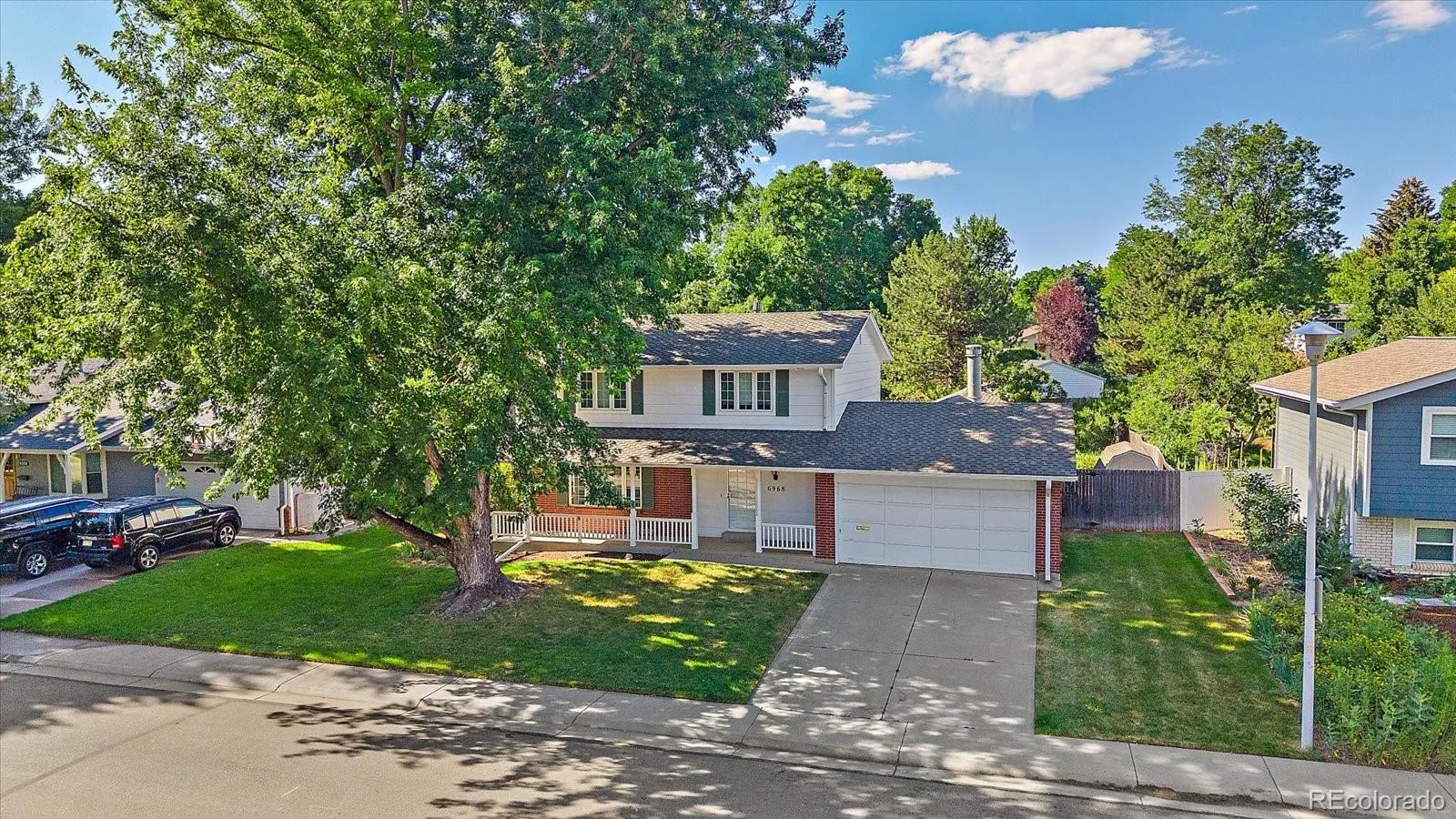 Fabulous opportunity to personalize this contemporary home in an amazing location and an established neighborhood with NO HOA. Cosmetic updates can be done while you live here and make it your own. Brand new HVAC! The back yard is huge and very well loved. You will enjoy the perennials some of which are flocks, lilies (tiger and day) peonies, roses, iris, penstamon, various ground coverings, delphinium and dogwood that will come back year after year and trees in the breathtaking back yard. The house has 3 bedrooms that includes a primary suite and 2 full baths on the second level and triple pane windows. The living room, dining room, kitchen with eat-in area, family room with fireplace, and powder room are on the main floor. The unfinished basement is waiting for you! Walking distance to Bible Park and multiple shopping areas Easy access to I-25 and I-225. Sold as-is.