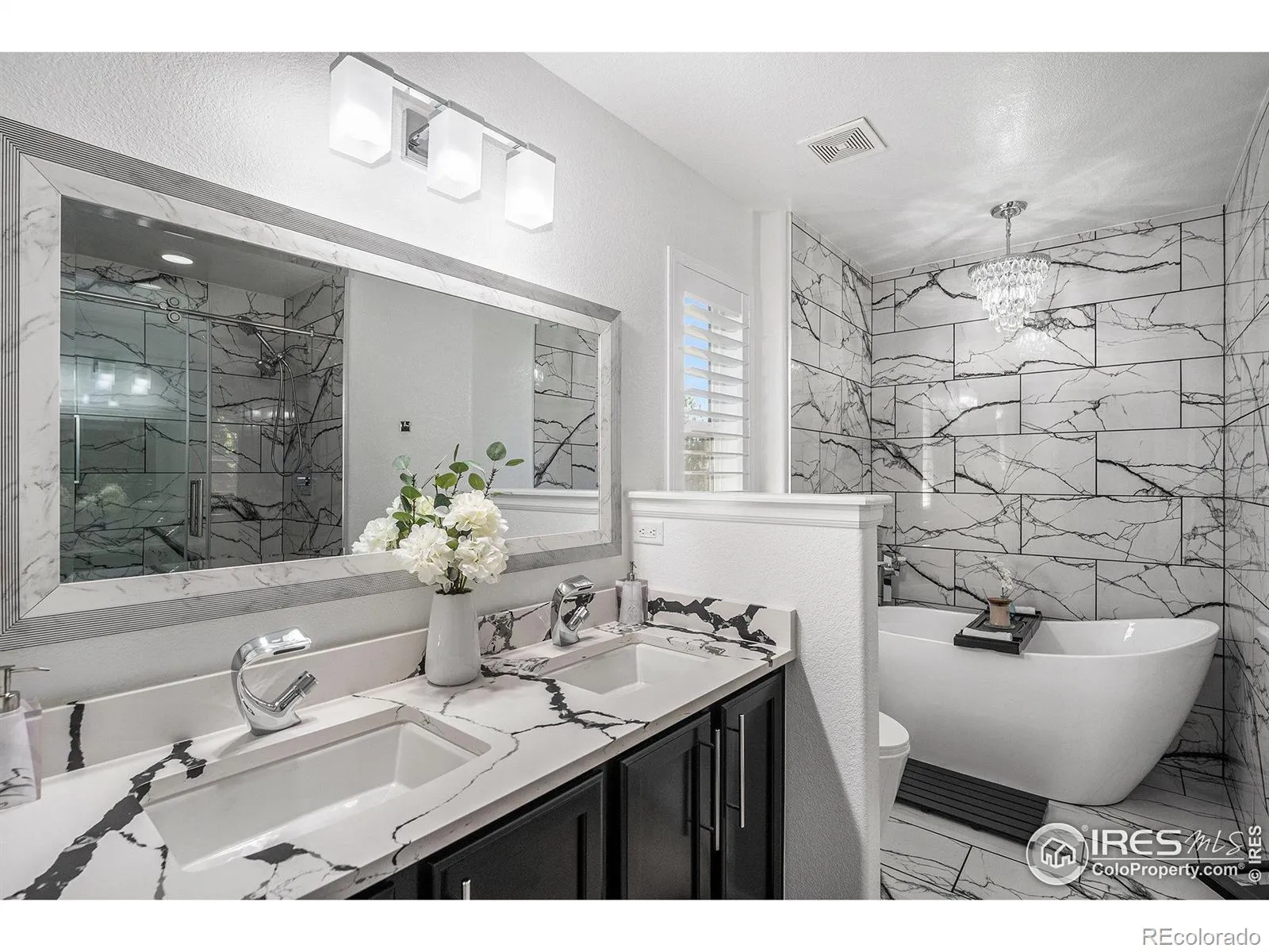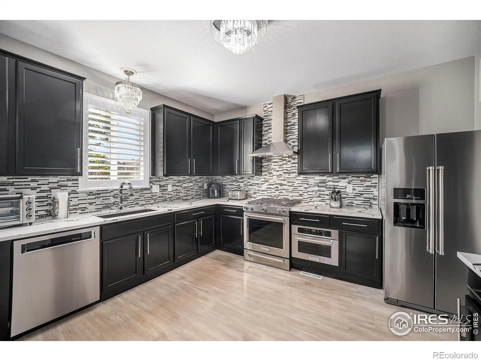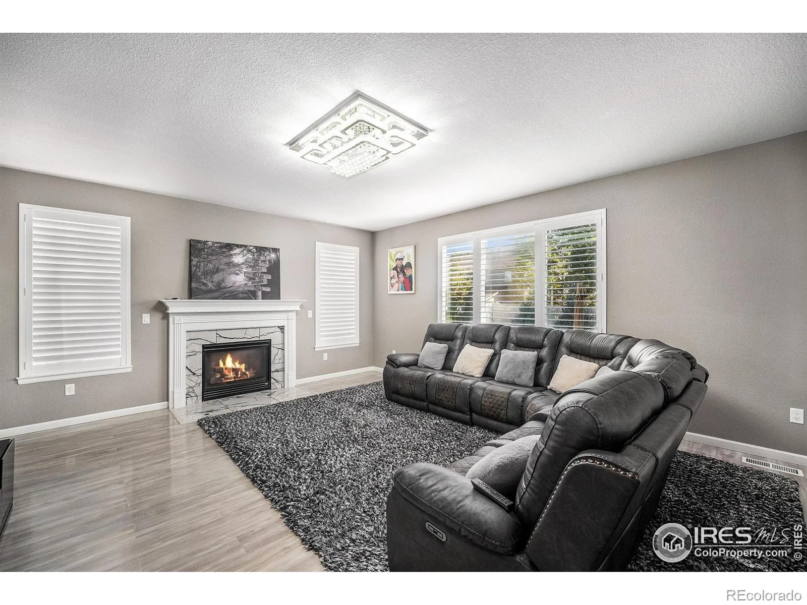 SELLER IS OPEN TO CONTINGENCIES Welcome to luxury living in the coveted Mountain Shadows North community of Firestone! This fully remodeled 2004 home sits on a beautifully landscaped 0.22-acre corner lot and showcases over $400K in premium upgrades, offering true turnkey elegance.From the inviting covered front porch to the stunning interior finishes, every detail has been thoughtfully updated. Inside, you’ll find plantation shutters, custom lighting, and an ideal layout for modern living. The main floor features formal living and dining rooms, a private office, and an open-concept kitchen/family room with a cozy gas fireplace. The gourmet kitchen is a chef’s dream, boasting quartz Counter tops, all new stainless steel appliances, and a designer Backsplash. A spacious breakfast nook opens to the back deck for seamless indoor-outdoor entertaining.Upstairs, retreat to the luxurious primary suite with vaulted ceilings and a spa-inspired 5-piece bath. A versatile loft, three additional large bedrooms all closets updated by closet by design, a full bath, and a dedicated laundry room offer ample space for guests. New electrical panel, new a/c, water heater and new roof.The huge unfinished basement provides room to grow or ample storage.Outside, enjoy the custom stamped concrete patio, built-in gas Fire pit and seating, In line gas grill, two large storage units, and a lush lawn within a fully fenced backyard-your personal oasis.Additional upgrades include an attached 3-car heated/cooled garage, owned solar panels, and three new AC units, ensuring comfort and efficiency year-round.Located in a quiet, desirable neighborhood close to parks, schools, and shopping, this exceptional home blends style, function, and unbeatable value.Don’t miss this rare opportunity-schedule your private showing today!
