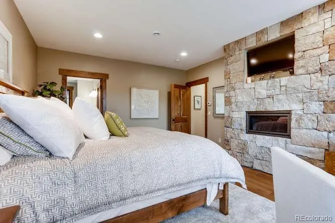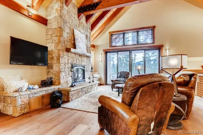 Nestled in the sought-after Warriors Preserve, this exceptional custom-built home offers unparalleled convenience and luxury, allowing you to walk, ski, or hop on the bus to Peak 9 or vibrant Main Street Breckenridge. With exquisite custom finishes throughout, no detail has been overlooked. Offered fully furnished this home is turnkey and ready for you to enjoy. The heart of the home features a spacious and inviting layout, perfect for both entertaining and relaxing. Enjoy the breathtaking views of Baldy Mountain from the covered deck, or unwind in the expansive, enclosed Colorado room complete with a fire pit, hot tub, and built-in grill. This 4-bedroom, 5-bathroom masterpiece includes a cozy bunk room and three bedrooms featuring private ensuite baths. Additional living spaces include second living room on the lower level and a versatile office, art studio, or exercise room. The large garage includes a fully outfitted gear storage room, perfect for all your mountain toys! Enjoy access to the slopes from Warriors Preserve, and make use of two extra parking spaces across from the driveway on this almost half-acre lot. A perfect blend of mountain living, luxury, and convenience — a true Breckenridge gem!