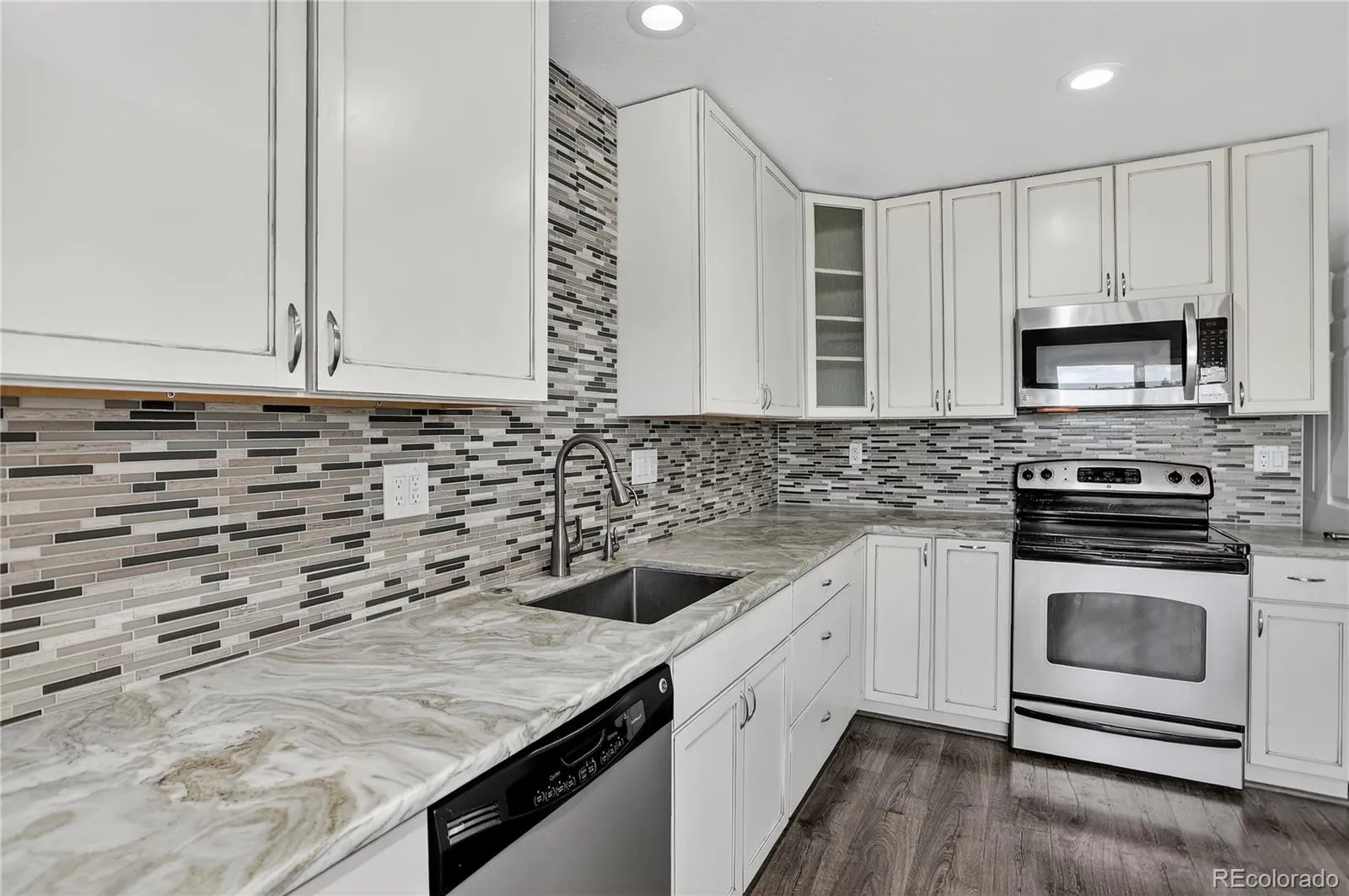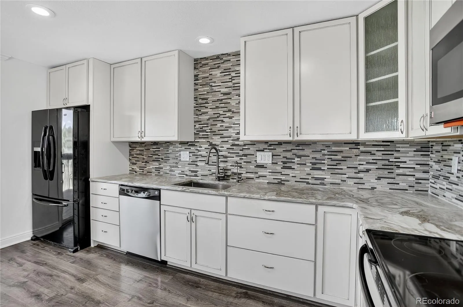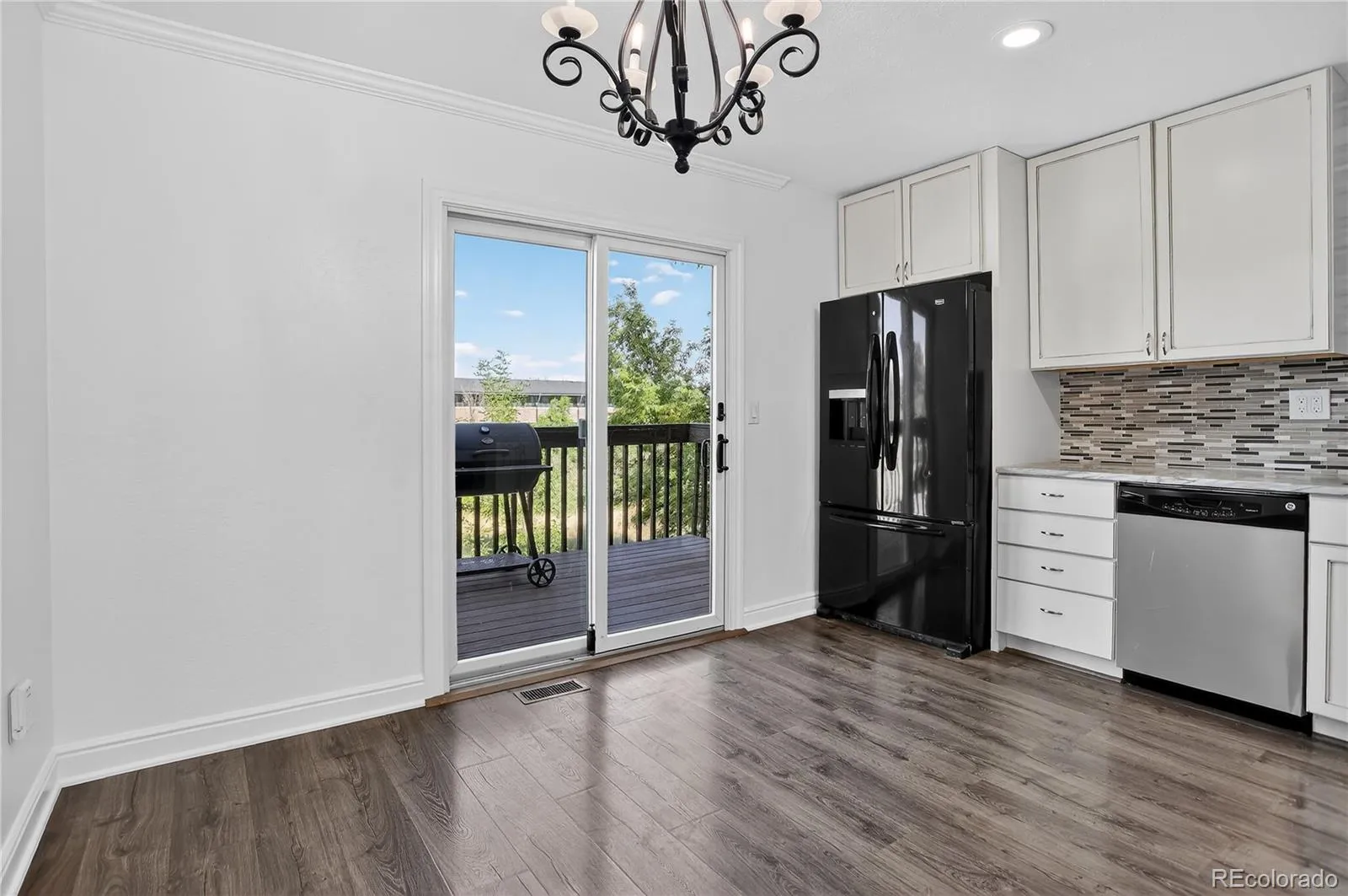 VA ASSUMABLE LOAN AT A 2.25% INTEREST RATE! (veterans only) See private remarks for more details. Welcome to this beautifully updated townhouse backing to serene open space—offering the perfect blend of comfort, function, and style. The main level welcomes you with a cozy stone gas fireplace in the family room, creating a warm and inviting space ideal for everyday living or entertaining. The kitchen is a true standout—featuring stunning quartzite countertops, stainless steel appliances, walk-in pantry, recessed lighting, elegant chandelier, and eye-catching tile backsplash. Just off the kitchen, step out onto your private back deck and soak in peaceful views of open space. A main-level powder bath with built-in shelving adds extra convenience. The fully finished walk-out basement expands your living space with a spacious bedroom, oversized closet, recessed lighting, sliding glass doors to the patio, and access to a well-appointed laundry room with built-in shelving and extra storage. Upstairs, you’ll find two generously sized bedrooms. The primary suite offers a ceiling fan, oversized closet, and private en suite bath. The second bedroom also features an oversized closet with built-in shelving and easy access to a nearby full bath with a tiled surround. An additional upper-level bathroom with tiled shower and built-in shelving adds even more function. Stylish upgrades throughout include vinyl flooring on the main level, newer carpet upstairs, modern lighting, and fresh interior paint; making this home completely move-in ready. Enjoy both a deck (soon to be replaced by the HOA) and a ground-level patio that back to open space, providing privacy and relaxation. Two reserved parking spaces—one oversized—offer plenty of room, even for larger vehicles. Low-maintenance living, modern finishes, the location is unbeatable. Check out all of the nearby amenities. University Blvd provides direct access to the Denver Zoo, Museum of Nature & Science & more. WELCOME HOME!