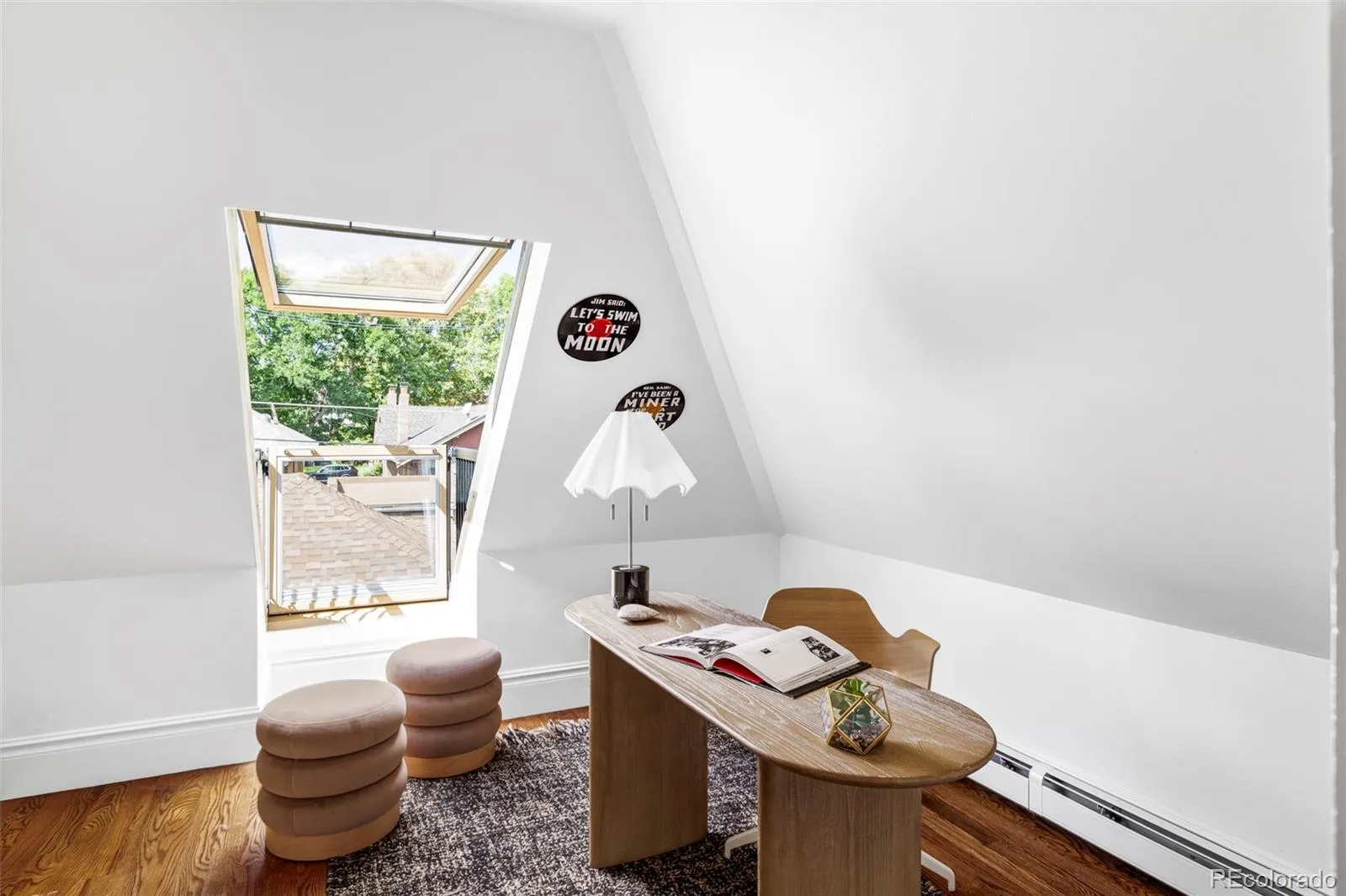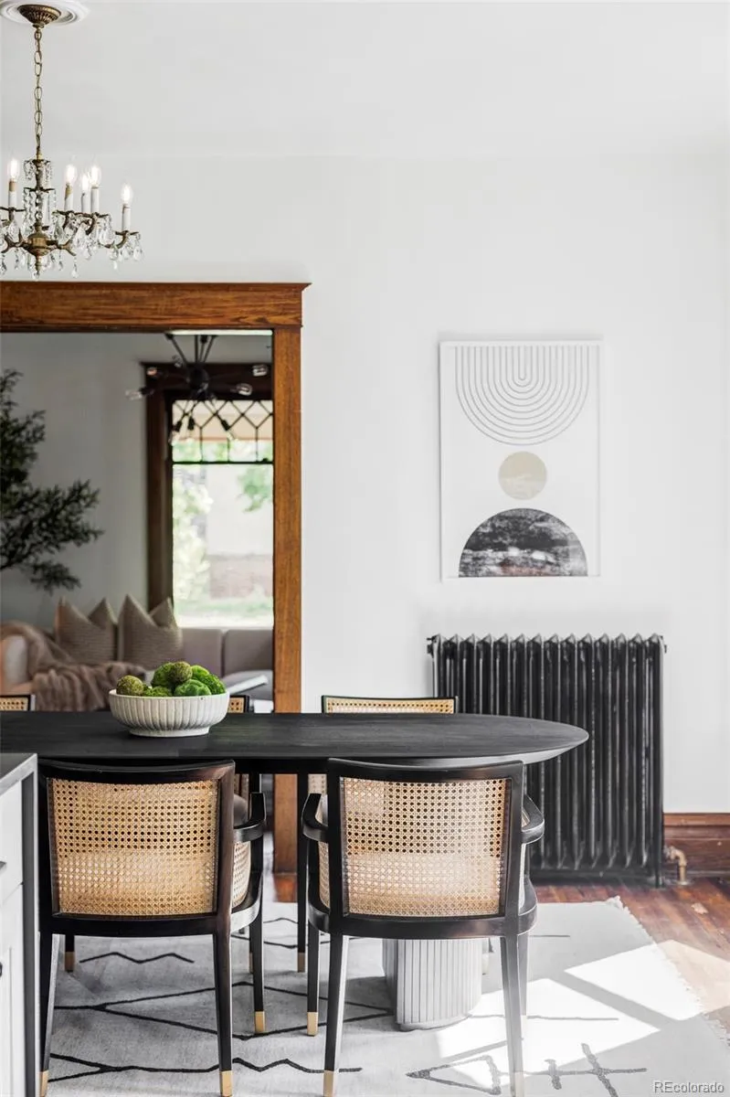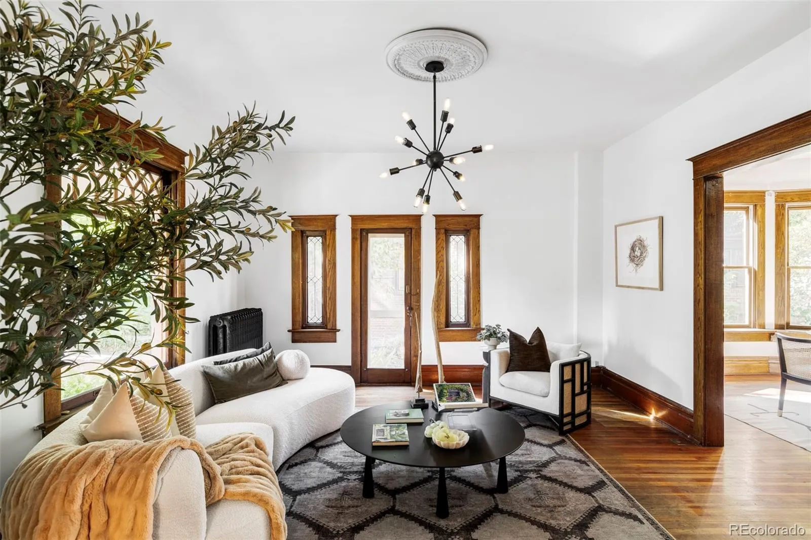 A rare architectural gem in the heart of Congress Park, this Victorian-style bungalow beautifully blends timeless character with modern updates. An architecturally designed remodel brings new life to the open-concept kitchen, primary suite, second-floor bath and office, highlighted by a striking VELUX balcony roof window, radiant heated floors and a five-burner stove with a custom griddle top. Original leaded and stained-glass windows preserve historic charm, while a fully insulated sunroom with a pellet stove offers year-round comfort and views of the lush backyard grounded by a mature apple tree. The main-level primary suite with en-suite bath and laundry is a rare find for the era, and the garden-level basement with exterior access provides ADU potential. With refreshed exterior paint, a rebuilt garage crafted from original brick, EV-ready 200-amp service and a new roof scheduled before closing, this home delivers enduring style and comfort in one of Denver’s most coveted locales.