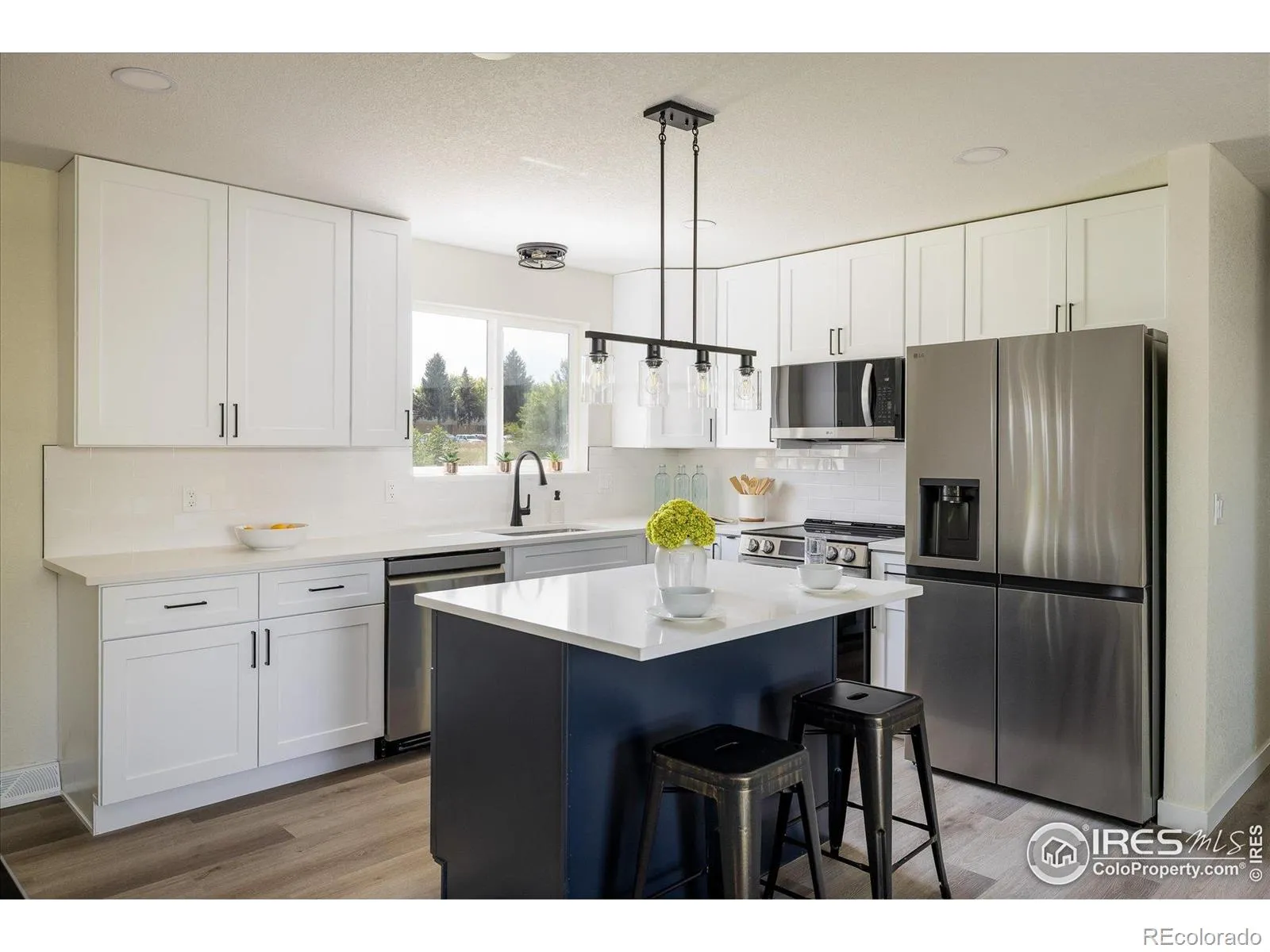 Every inch of this fully renovated 4 bedroom, 3 bathroom home has been thoughtfully reimagined with modern comfort and lasting quality in mind. Set against the natural backdrop of Little Dry Creek, the property offers both privacy and a rare connection to nature, while still being just minutes from Olde Town Arvada, Downtown Westminster and Highway 36, providing quick access to both Denver and Boulder. The brand new kitchen is the centerpiece of the home, featuring classic white shaker cabinets, a bold blue island, and beautiful quartz countertops that create the perfect gathering space. Move in worry free knowing that every major system has been updated, including a new roof with Class IV impact resistant shingles, new furnace, new A/C, upgraded electrical panel, new windows, and brand new appliances. Stylish one panel shaker interior doors add a modern touch throughout. Curb appeal shines with fresh landscaping, a fully xeriscaped front yard for low-maintenance living, and a spacious, newly sodded backyard ideal for entertaining, relaxing, or enjoying the peaceful creekside setting. With Little Dry Creek just beyond your back fence and Lake Arbor a short walk away, you’ll have immediate access to trails, parks, and year-round outdoor recreation. Inside and out, this home is turnkey and ready for its next chapter. Best of all, there’s no HOA restricting your use or vision.