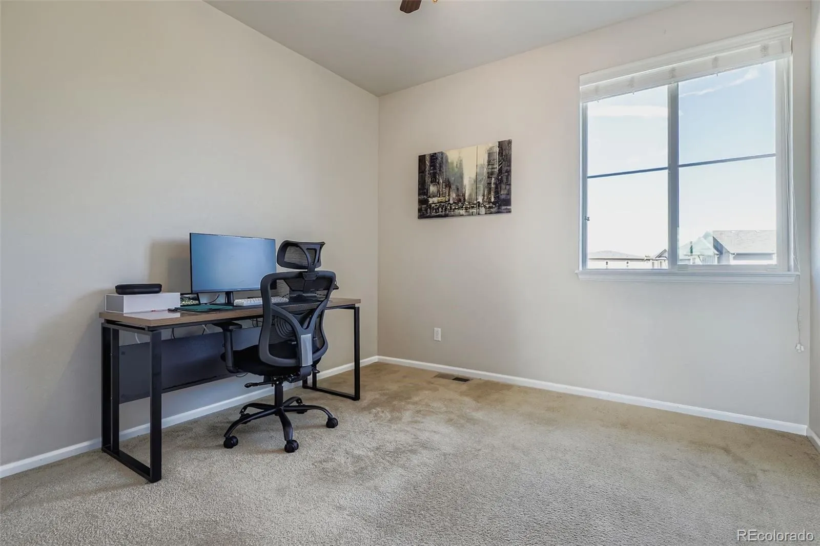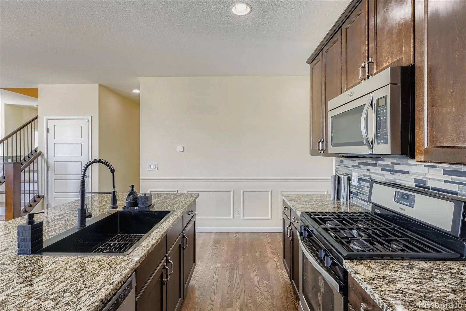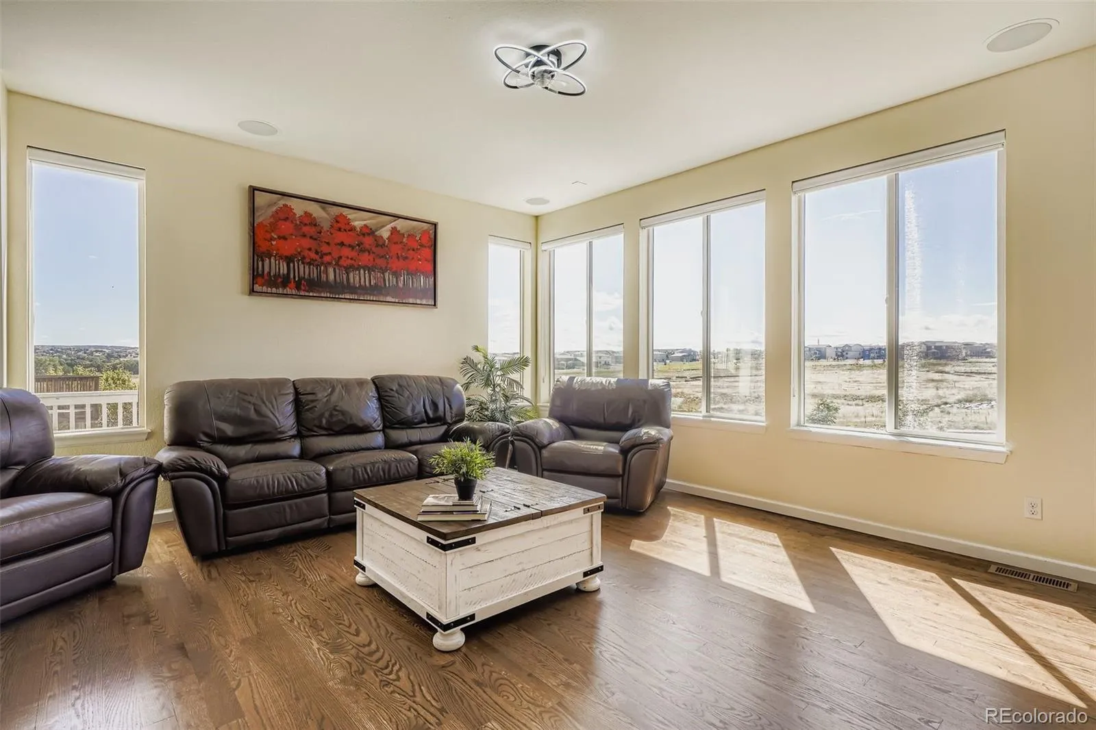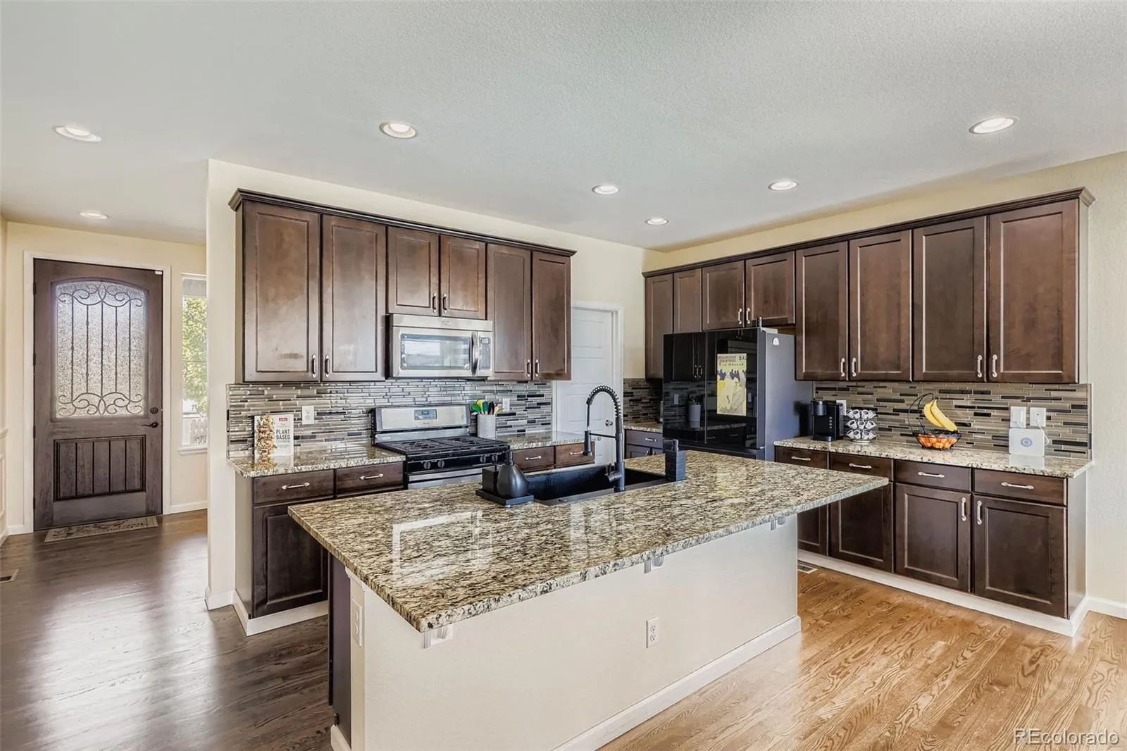 Stop the search—this is the one! Welcome to this gorgeous 5-bedroom, 3-bathroom home in Parker’s highly desirable Horseshoe Ridge neighborhood. On the main floor, you’ll find a bright and airy office and an inviting open-concept living area featuring voice-controlled smart lighting, a ceiling-mounted surround sound system, and an included 85″ Samsung TV. A guest bedroom with a nearby ¾ bath adds convenience and flexibility. The chef’s kitchen showcases stainless steel appliances—including a Samsung smart refrigerator with touchscreen display—espresso cabinets, granite countertops, a walk-in pantry, and a spacious island. The breakfast nook overlooks your beautifully landscaped backyard complete with a water feature and stamped concrete patio, the perfect space for both relaxation and entertaining. Upstairs, the primary suite offers a dual-sink ensuite and a large walk-in closet. Three additional bedrooms, a full bathroom, and a laundry room complete the upper level. The unfinished walk-out basement awaits your custom design. Located in the highly-rated Douglas County School District, this home offers easy access to shopping, dining, entertainment, I-25, and Parker Road. Horseshoe Ridge residents enjoy neighborhood walking trails, parks, and proximity to the nearby Equestrian Park & Sports Complex. Parker plans to expand Salisbury park with 30 acres of undeveloped open space,