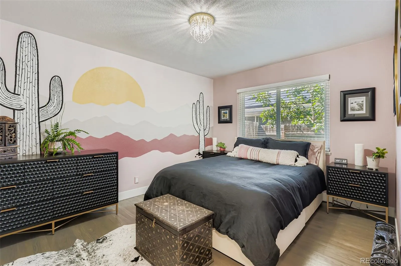 Gorgeous Updated Home with Main Floor Primary Bedroom in the Heart of San Rafael, Denver. Nestled in the vibrant and highly sought-after San Rafael neighborhood of Denver, this inviting residence seamlessly blends modern updates with timeless appeal, offering an unparalleled opportunity for comfortable living in an exceptional location. Step inside to discover a bright and airy open floor plan, where beautiful hardwood floors and an abundance of natural light create a welcoming atmosphere. The spacious living area is perfect for both relaxation and entertaining, effortlessly flowing into the newly updated kitchen. Boasting Quartz countertops, contemporary cabinetry, and stainless-steel appliances, gas range, this kitchen is truly an owner’s dream. The home features three generously sized bedrooms, each providing a peaceful sanctuary with ample closet space and stylish finishes. The remodeled bathrooms are equally impressive, showcasing elegant fixtures and a fresh, modern design. The finished basement offers a 3rd Bedroom with full bath or can be used as a rec room or office. Outside, the low-maintenance, and newly fenced backyard features a dog run, artificial turf, a shed, and is ideal for summer gatherings, outdoor activities, or simply enjoying the Colorado sunshine. The spacious patio offers the perfect setting for dining al fresco or unwinding after a long day. Newer features include LED lighting, a new tankless water heater, and a brand new solar panel system (financed) provides energy savings and long-term value. The detached garage provides added convenience and storage. Located in one of Denver’s most desirable neighborhoods, this home offers easy access to parks, schools, and local amenities. Commuting is a breeze with quick access to major roads and public transportation. 5219 E Martin Luther King Jr Blvd is not just a house—it’s a place to call home. Don’t miss the chance to experience the best of Denver living. Schedule your private tour today!