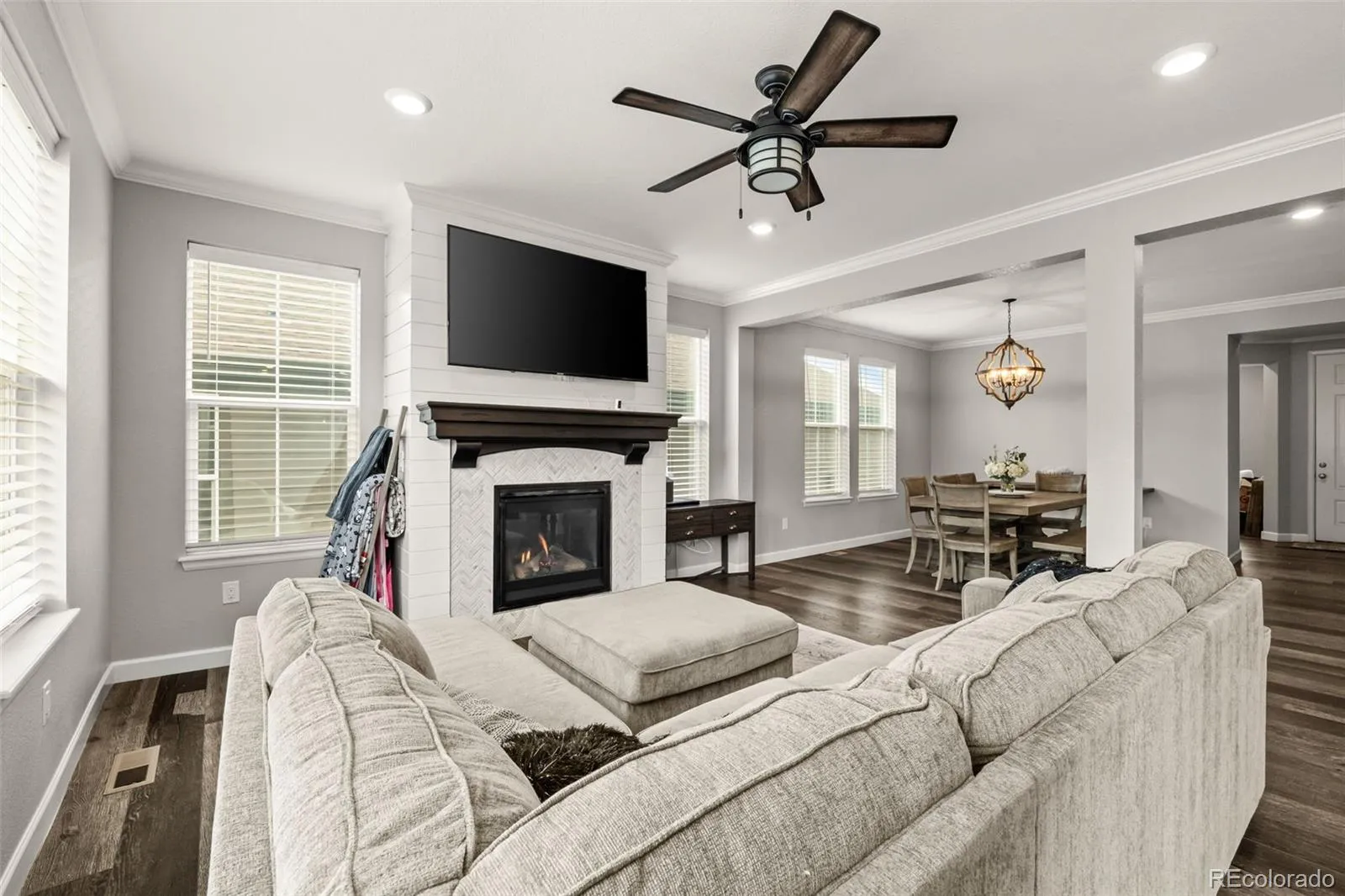 The fully finished basement adds even more living space with a wet bar, electric fireplace, full bathroom with designer tile, and a conforming bedroom that can serve as a guest room, home gym, or office.