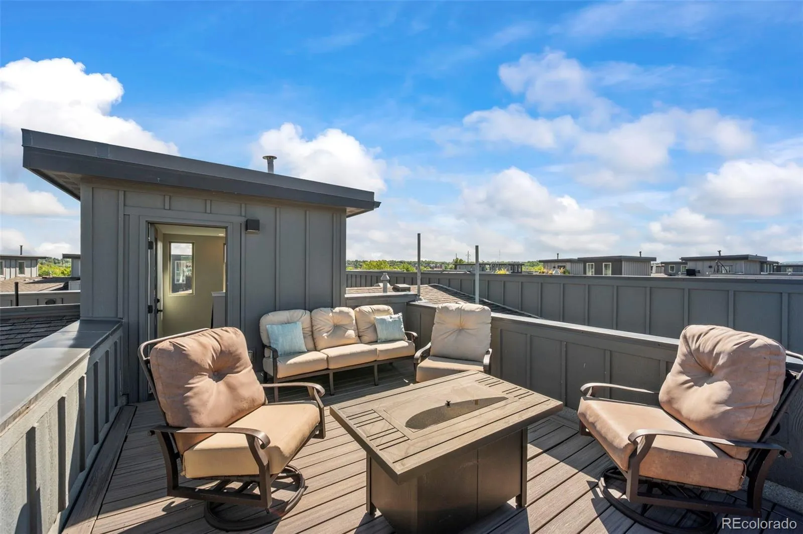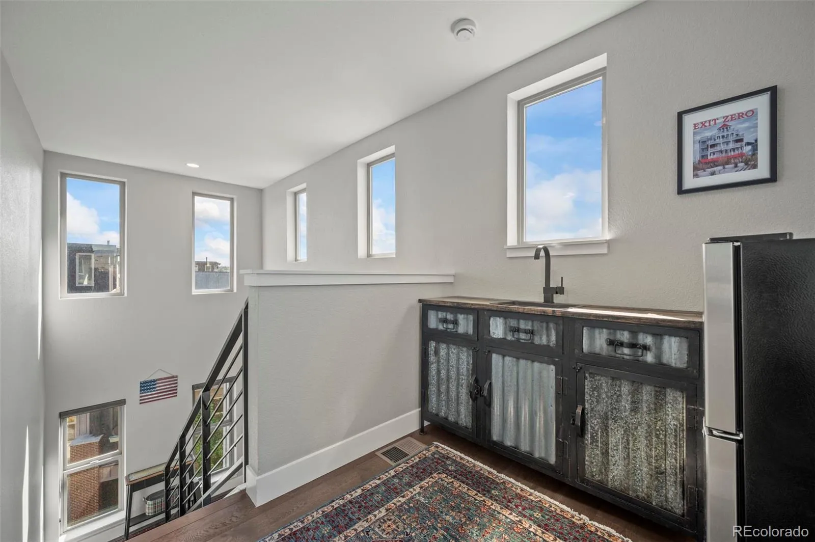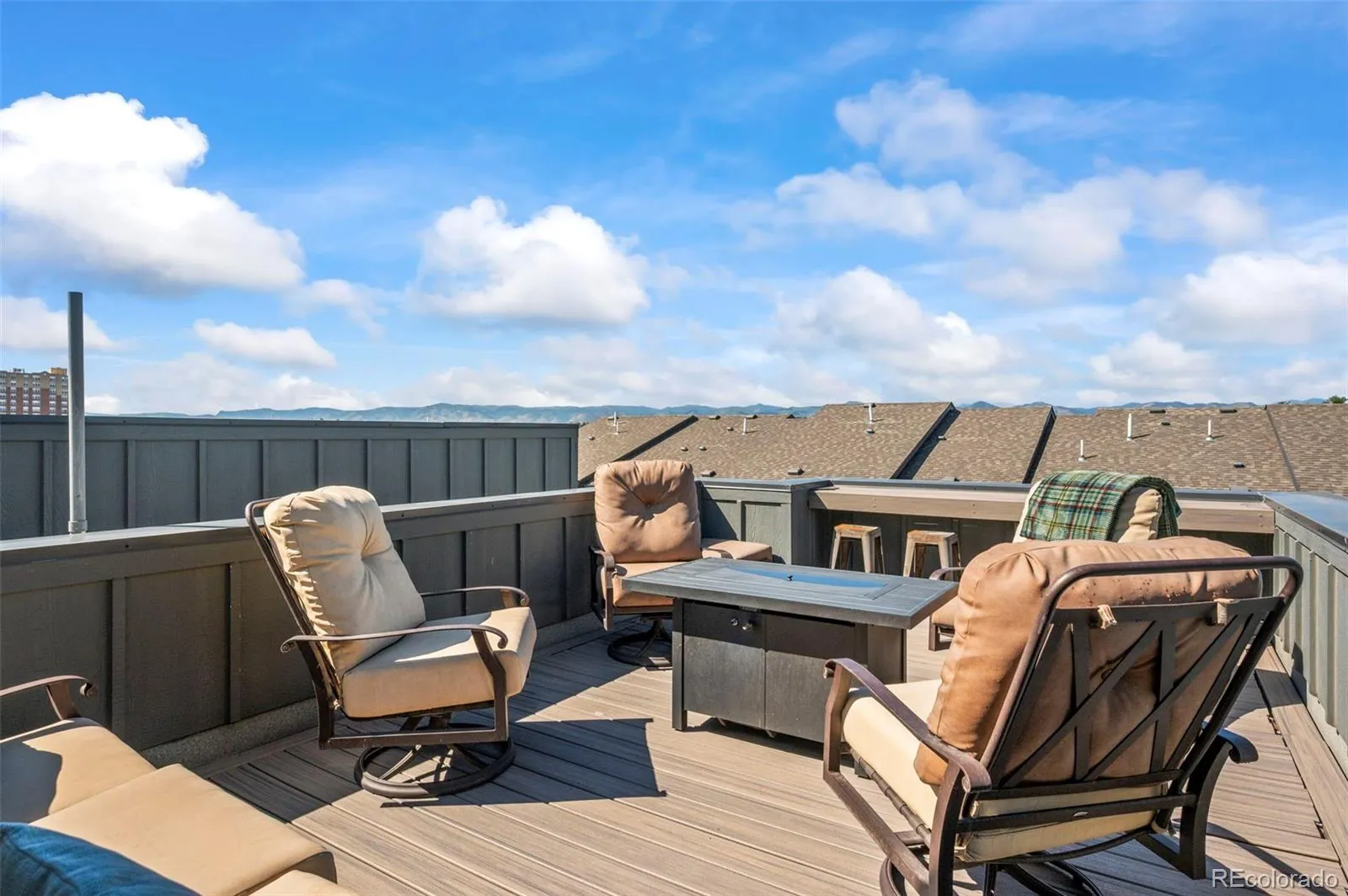 On the top level of the home, there’s a wet bar with a sink and refrigerator right before you step outside to enjoy the rooftop deck. This rooftop deck provides an excellent location to sunbathe or watch the fireworks on the 4th of July.