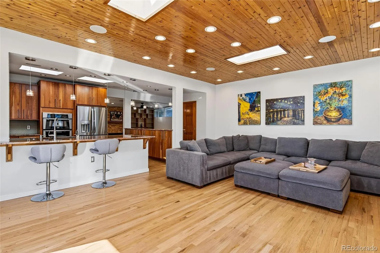 The adorable ranch home features a gourmet kitchen with cherry cabinets, granite countertops, two islands, and premium appliances. Six sky lights provide lots of natural light! The additional living room has a gas fireplace and a hidden lighted 600 sq ft cement floor crawl space (trap door access) for your additional storage needs. The primary suite offers a walk-in closet and spa-like bath with heated floors and heated towel racks and a Toto bidet. The spacious laundry/mudroom adds convenience with abundant storage, a utility sink, and access to the backyard/dog run. Downstairs, enjoy a cozy rec room with gas fireplace, three bedrooms, a newly remodeled bath, and generous storage area. Step outside to your patio entertainer’s dream: an outdoor built-in kitchen with granite counters, Traeger smoker, Jenn-Air grill, fire pit, and mount for a TV. Conveniently located to shopping, Trader Joe’s, boutiques and restaurants. Don’t miss this rare gem with endless possibilities!