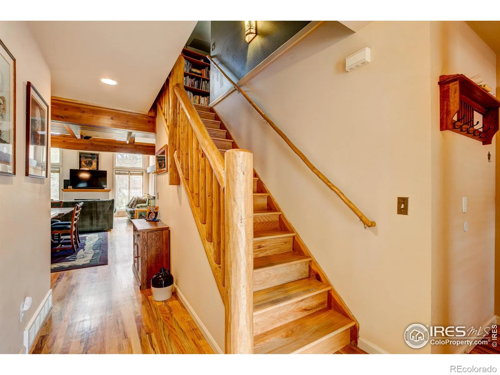 Enjoy riverfront one level living at The Willows in Estes Park, minutes from Rocky Mountain National Park! Large deck and yard area overlooking the Fall River. Take a stroll along the riverwalk to downtown for dining, shopping and more. Great room with vaulted beam ceiling, fireplace and hardwood floors offer a beautiful mountain decor. Large master bedroom on the main level opens to a private riverfront deck tucked in the Willows. Take the solid wood accent stairs to more river views from the loft, with office or family room plus full bath and 2 more spacious bedrooms. 2″ wood blinds throughout the home!