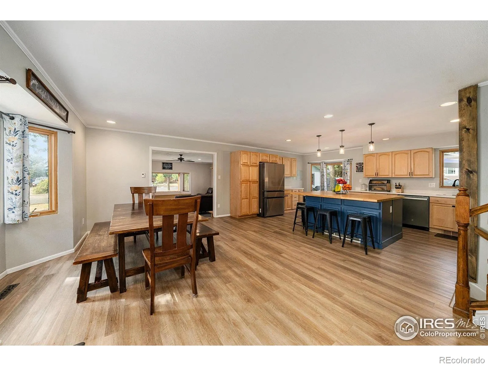 Welcome to your ideal blend of country charm and modern convenience in unincorporated Larimer County. Perfectly situated between Fort Collins, Loveland, and Windsor, this property offers quick access to shopping (Walmart, Sam’s, Costco just minutes away), while still enjoying peace and quiet with no HOA. Inside, you’ll find new stainless appliances, an expanded kitchen with extra cabinetry, a 30 sq ft. kitchen island, and LVP flooring. The several triple-pane windows fill the home with natural light. Recent upgrades include brand new carpet and laminate in the living room, newer systems, new gutters, and fresh lighting in every bedroom. Step outside and enjoy the trail to Boyd Lake, easy access to foothill hikes, and a quiet neighborhood surrounded by mature trees and thoughtful landscaping, complete with a raised, irrigated garden bed. Zoned FA-1 (Farming), you can raise chickens using the existing chicken coop and have fresh eggs at your fingertips! Bring your RV or park your boat in the 3 car detached garage, or shoot some hoops on the south-facing driveway that makes winter snow melt a breeze. Whether you’re hosting friends with ample parking, tending to your garden, or heading out for Colorado’s best outdoor recreation, this home delivers the best of country living with nearby amenities.