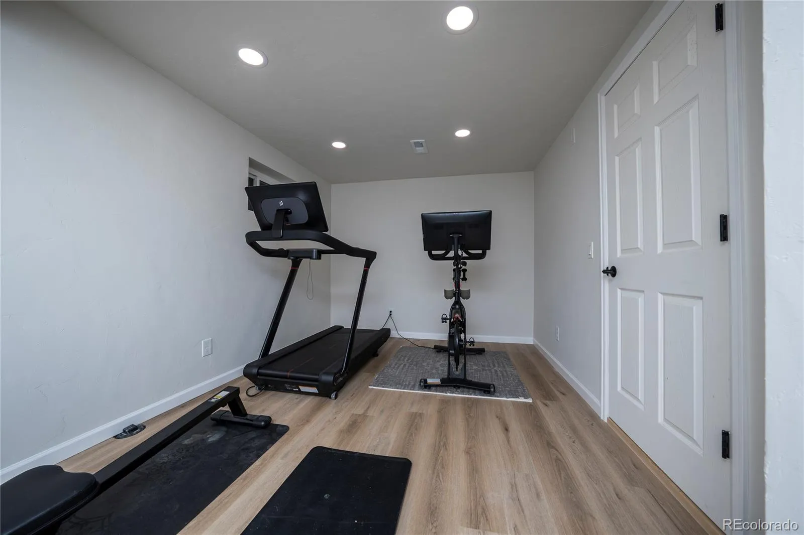 The finished basement expands the living space with a wide-open rec area, dedicated gym, bedroom, and bathroom.