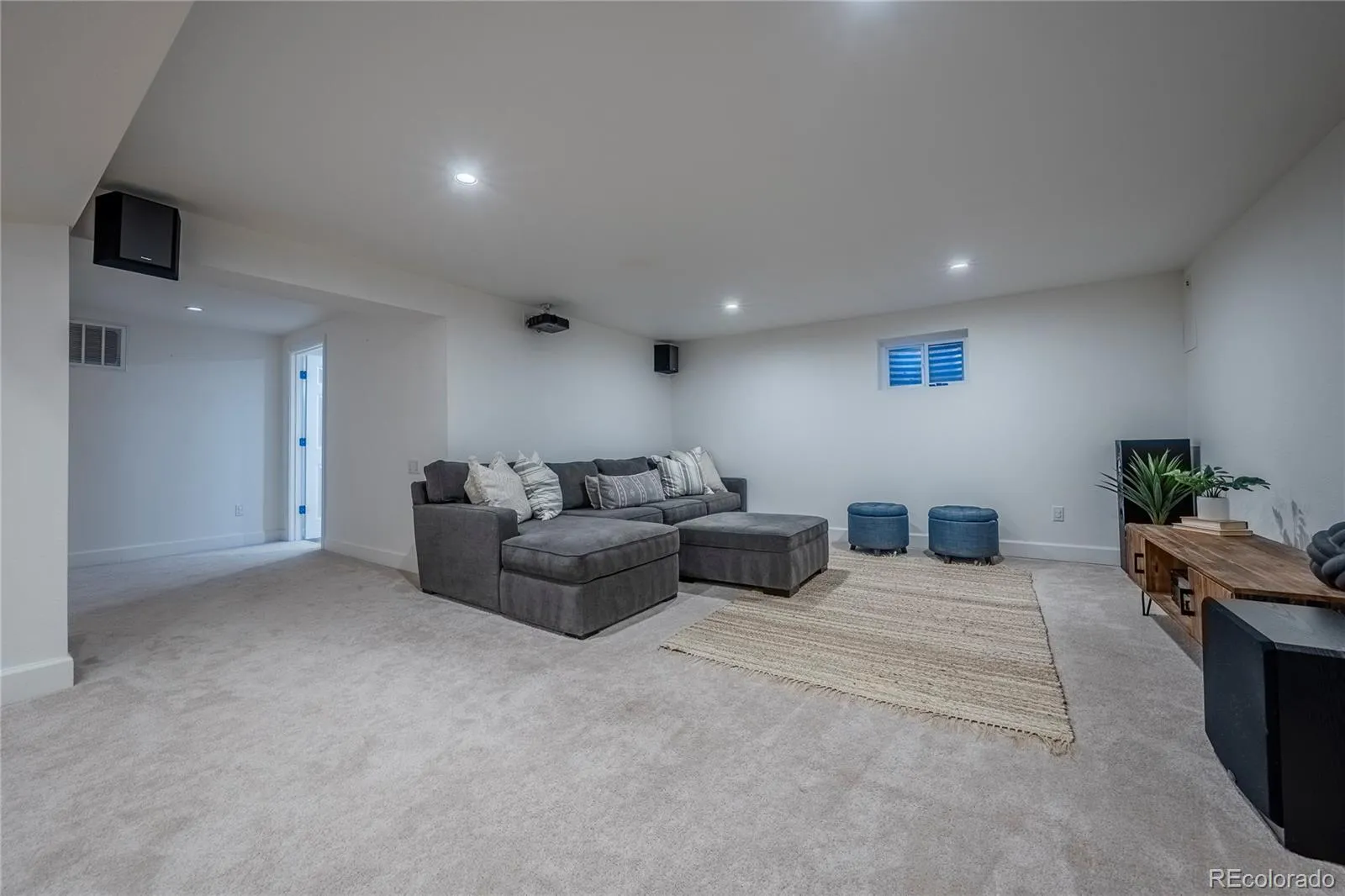 The finished basement expands the living space with a wide-open rec area, dedicated gym, bedroom, and bathroom.