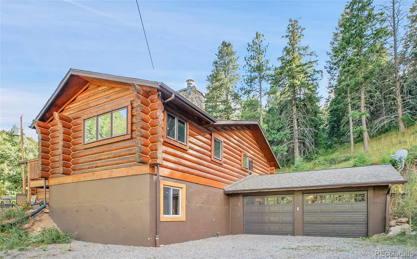 Nestled in the serene western foothills of Littleton, just 20 minutes from C-470, this remarkable 4-bedroom, 3-bath log home combines modern technology, luxurious comforts, and true Colorado charm. Set on 15+ acres of legal horse property, it showcases vaulted ceilings, beetle-kill pine accents, a striking stone fireplace with blower, and an open floor plan that connects the living room, dining area, and gourmet kitchen. The kitchen features stone counters, a hidden pantry, stainless appliances, a wine fridge, and custom quarter-sawn oak cabinetry.