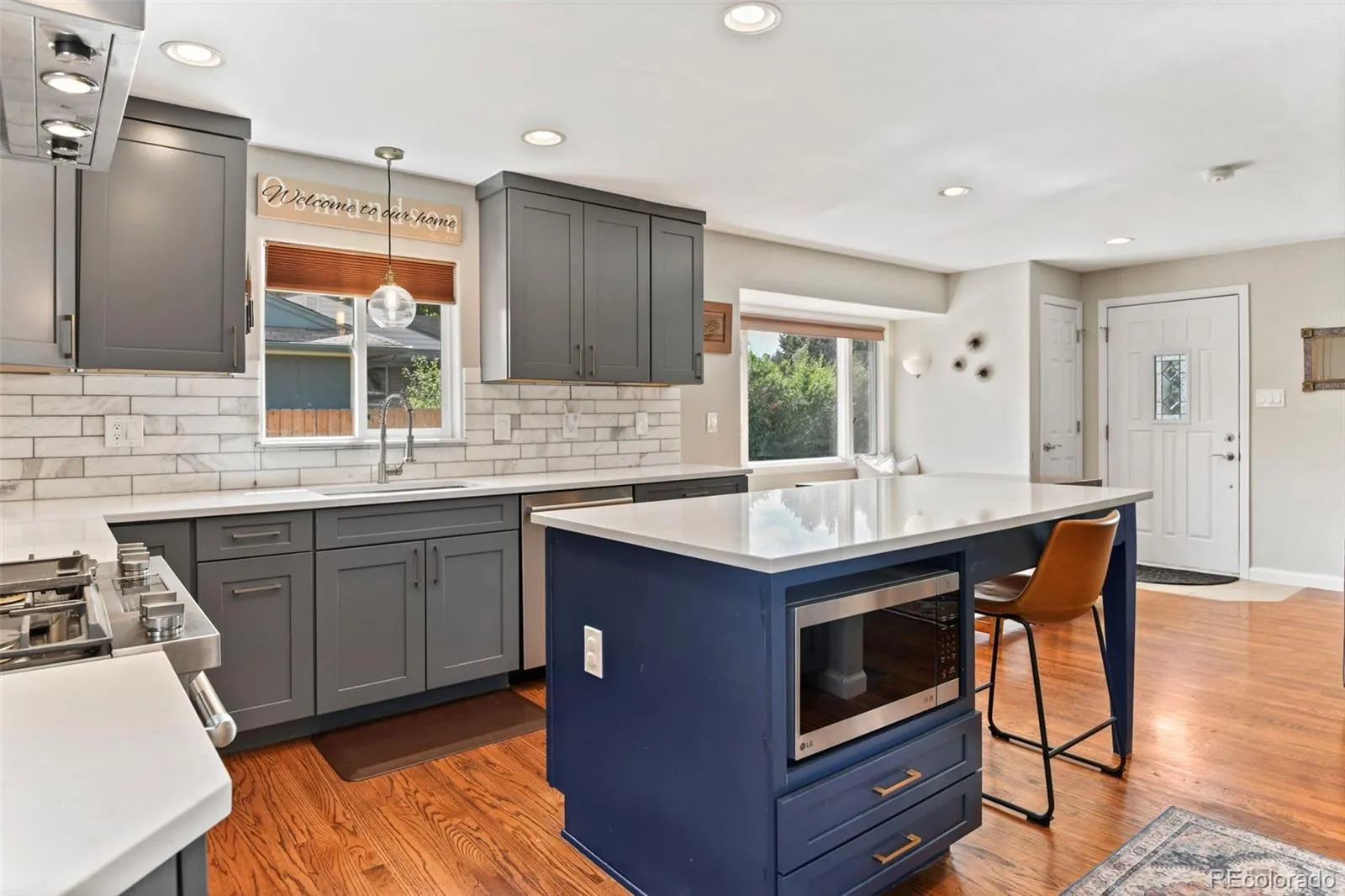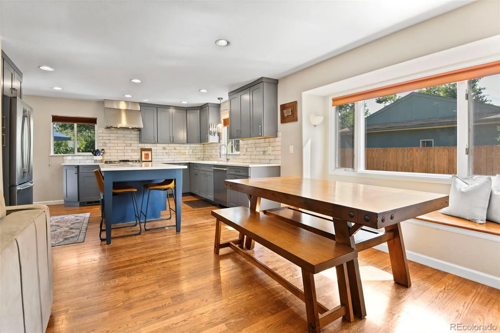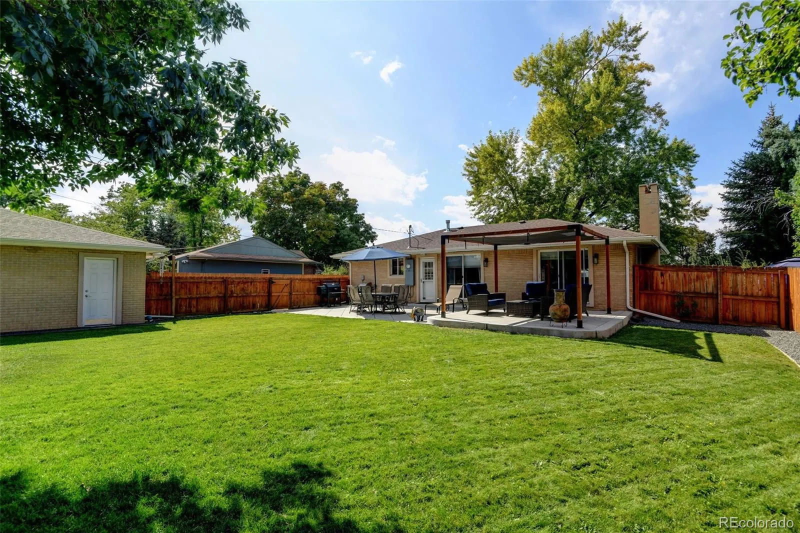 Welcome to this charming ranch-style home that blends modern upgrades with comfortable living* Featuring 4 bedrooms and 2 bathrooms across approximately 2,200 square feet, the property sits on a rare quarter-acre lot in the heart of the city* The spacious and quiet backyard includes a newly poured patio, mature trees, and a fully enclosed yard, making it perfect for both lively gatherings and peaceful evenings* A true standout, the home offers a 4-car garage and extended driveway, providing endless possibilities for vehicles, tools, and storage* Inside, the recently renovated kitchen serves as the centerpiece of the home, designed with an open-concept layout, quartz countertops, modern cabinetry, and premium JennAir appliances* The primary suite provides ample space with a convenient en-suite bathroom, with an additional bedroom on the main floor* The finished basement expands the living space with a large entertainment area ideal for watching the game, along with two additional bedrooms, a full bathroom, laundry room, and abundant storage* Beyond the home itself, the location is a major perk—just steps away from the Highline canal, Trader Joe’s, Ace Hardware, Starbucks, and a variety of restaurants and retail options, placing convenience right at your doorstep. This home is a must see*