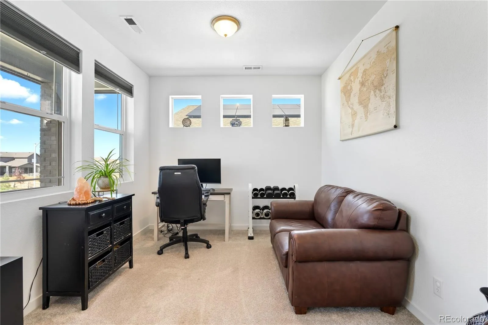 Welcome to 8520 Eckley Street, a clean, lightly lived-in home in the coveted Sterling Ranch community of Littleton. Priced to sell at $649,000, this well-loved 3-bedroom, 3-bathroom home offers incredible value with neighboring homes priced in the high $700s. Inside, you’ll find a thoughtfully designed floor plan with modern finishes and numerous technical upgrades, including solar panels and a tankless water heater for energy efficiency and long-term savings. A main-level office provides the perfect space for working from home—or can easily double as a playroom or in-home gym, depending on your needs. Enjoy your morning coffee on the covered front porch or unwind on the newly finished back patio perfect for family gatherings or entertaining friends. Sterling Ranch isn’t just a neighborhood, it’s a lifestyle. With access to parks, trails, pools, a recreation center, and year-round community events, it’s the perfect setting to put down roots.