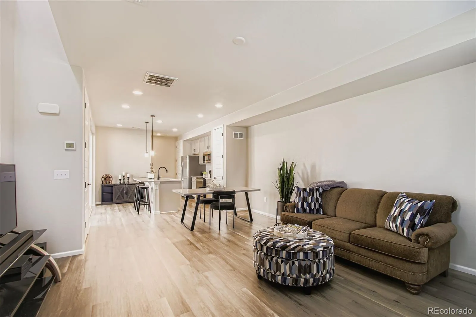 Don’t miss this rare find in Arvada at this price point! Built in 2023, this super cute home offers 3 bedrooms, 2.5 baths, and an open floor plan with soaring 9’ ceilings. You’ll love the modern kitchen—complete with a large island with seating, quartz counters, gas stove, pantry, and a dedicated dining area. The main level shines with beautiful vinyl plank flooring and flows seamlessly to a covered outdoor patio—perfect for year-round enjoyment. Upstairs, retreat to your spacious primary suite with a walk-in closet and luxurious 5-piece bath. Two additional bedrooms are ideal for guests or a home office, complemented by another full bath. The convenient upstairs laundry with washer and dryer included makes daily life easy.
