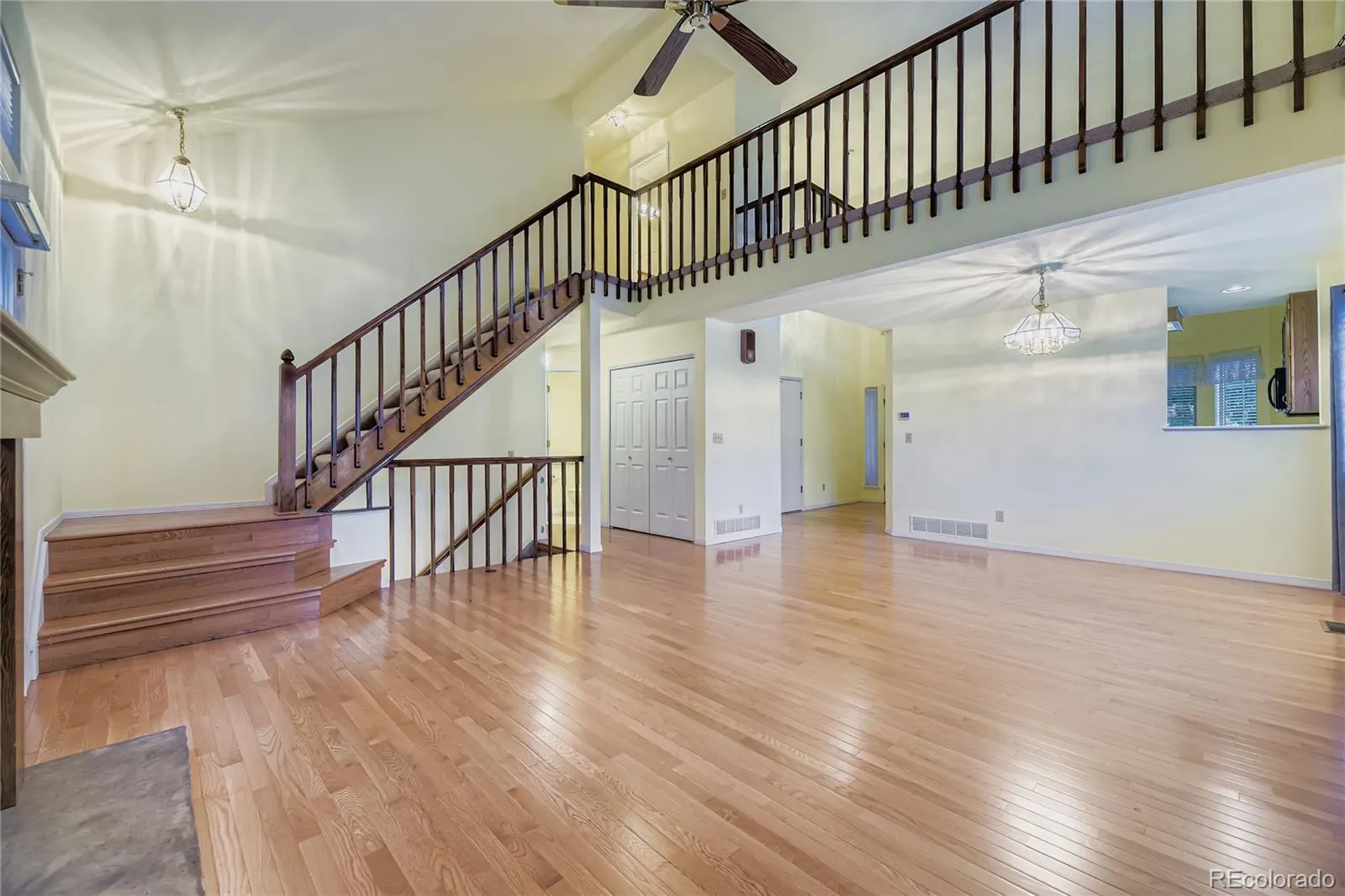 Do not miss this charming Governor’s Ranch home with a sought-after main-floor primary suite! Step inside and you’re welcomed by a bright, open floor plan. To the left, the spacious kitchen offers ample cabinet storage, room for a breakfast table, and a beautiful bay window. The kitchen opens into the dining and family room, where you’ll find a cozy gas fireplace and easy access to the expansive backyard—perfect for entertaining or relaxing. Also on the main level: a guest bath, laundry area, and the primary suite, complete with a walk-in closet and a walk-in shower. Upstairs, an oversized loft overlooks the main living area and provides flexible space for a home office, playroom, or lounge. This level also includes a large bedroom with generous closet space and a full bath. The finished basement offers another bedroom that can serve as a game room, office, or secondary living space. You’ll also find two massive storage rooms—one with the potential to be finished as a fourth bedroom. This home combines comfort, versatility, and plenty of room to grow in a fantastic location! Schedule your showing today, so you don’t miss this home!