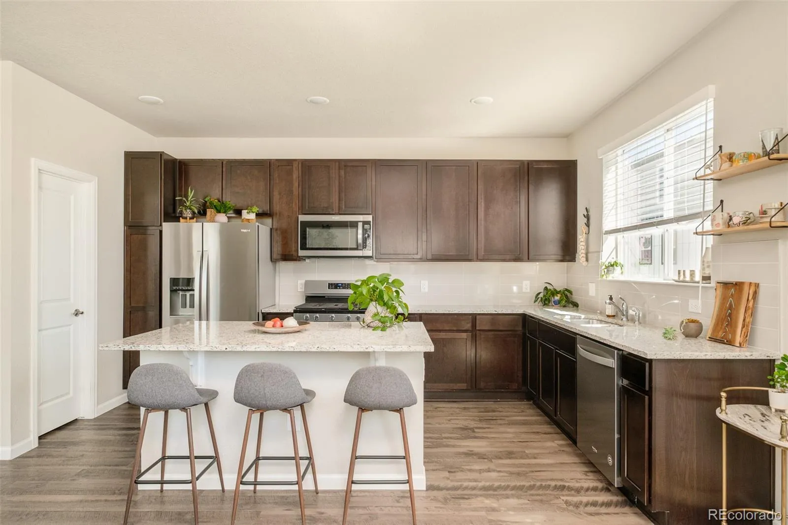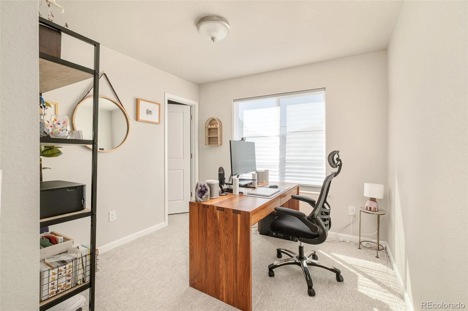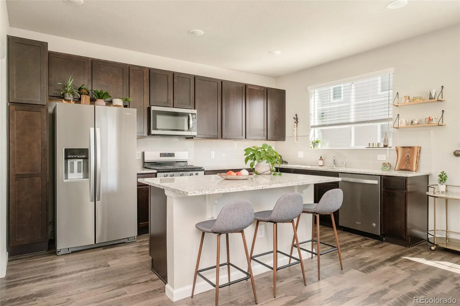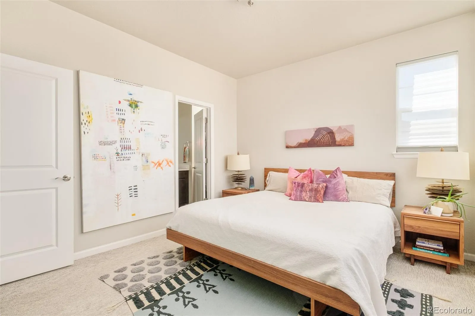 This exceptional end unit at Pearson Grove stands apart as the community’s premier residence—set back from both main roads, privately nestled in the heart of the neighborhood, and oriented south for abundant natural light throughout the year. With windows spanning three exposures—west, south, and east—the open-concept main level is bright and inviting. The expansive kitchen features generous storage, ample counter space, and a walk-in pantry, while the connected dining and living areas create an effortless flow, ideal for gatherings or quiet moments at home. High ceilings amplify the sense of openness, and the oversized deck—unique to end units—offers a perfect retreat for coffee, al fresco dining, or conversation with friends. Upstairs, three bedrooms each feature their own walk-in closet, a rare advantage of this community. Sunlight from multiple directions fills the space year-round, while dual sheer/blackout shades allow for tailored privacy and ambiance. Additional thoughtful touches include a large under-stairs storage area adjoining a main-level closet, a full two-car attached garage with a 220V outlet for electric vehicles, and a laundry area conveniently tucked away from the living spaces to minimize noise. The location itself is unmatched: less than 20 minutes to downtown via 6th Avenue, 15 minutes to Golden, and under 10 minutes to both I-70 and I-25—offering convenient access to the mountains as well as the city. More than a home, this residence was handpicked by its original owners as the standout among all Pearson Grove offerings—chosen for its rare combination of privacy, natural light, and unbeatable convenience.