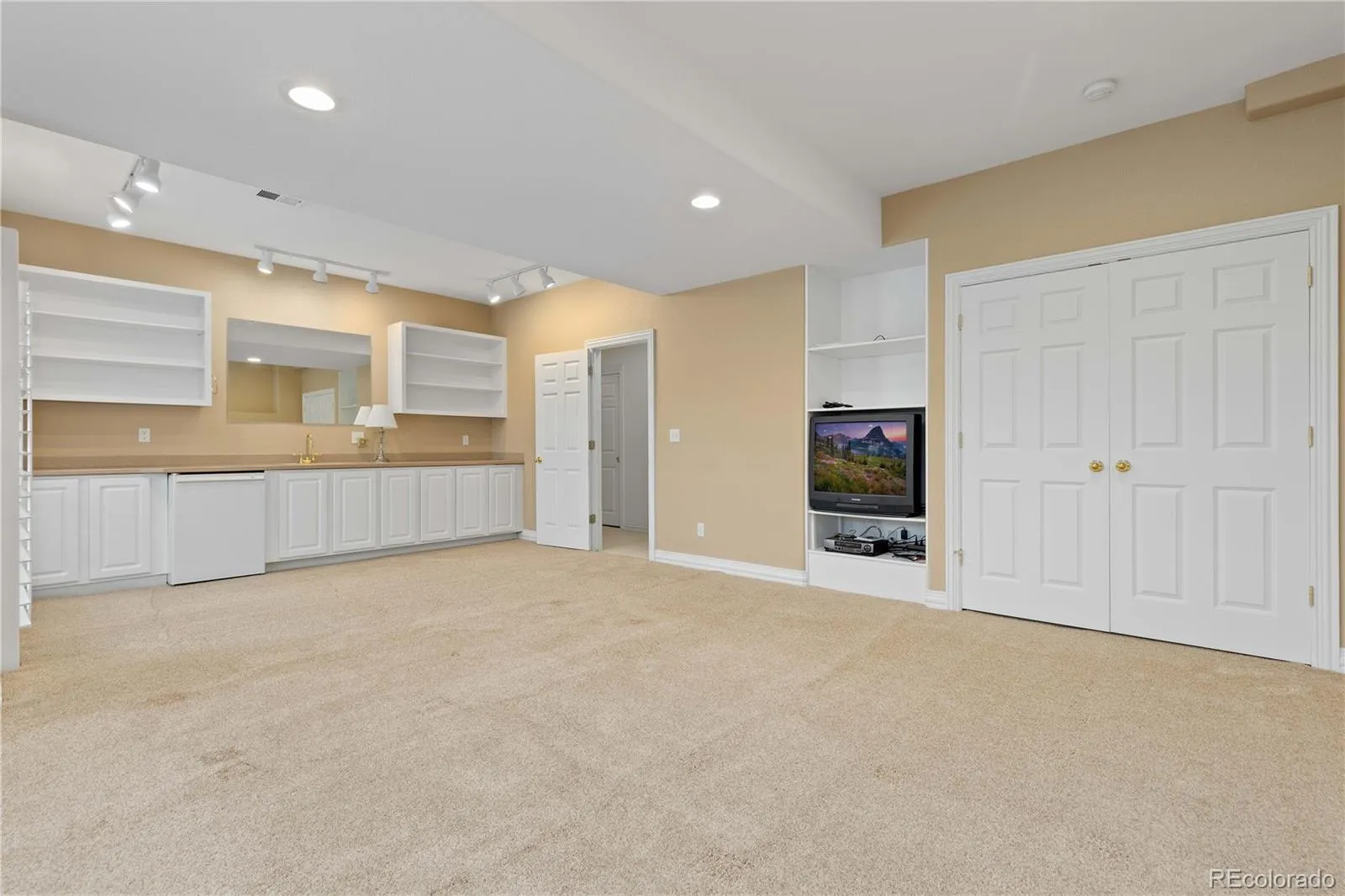 This rare ranch home in The Breakers sits on a prime lot backing to open space with mountain views and offers a bright and inviting layout ready for move-in. The vaulted family room sets the tone with soaring ceilings, a gas fireplace, and built-ins, while the kitchen flaunts an island, walk-in pantry, and plenty of space for both everyday meals and formal gatherings. The private primary suite feels like a retreat with its five-piece ensuite, generous closets, and direct access to the deck. The main level also includes a second bedroom and bath, a versatile office with double doors, and a well-appointed laundry room with a utility sink. The walkout basement adds an expansive living area with built-ins and a wet bar, along with another bedroom featuring a walk-in closet and a bathroom with dual sinks, creating the perfect guest or extended family suite. With a two-car garage, access to the High Line Canal, Windsor Lake, and all the conveniences of a gated community in a central location, this home combines comfort, style, and an unbeatable setting.