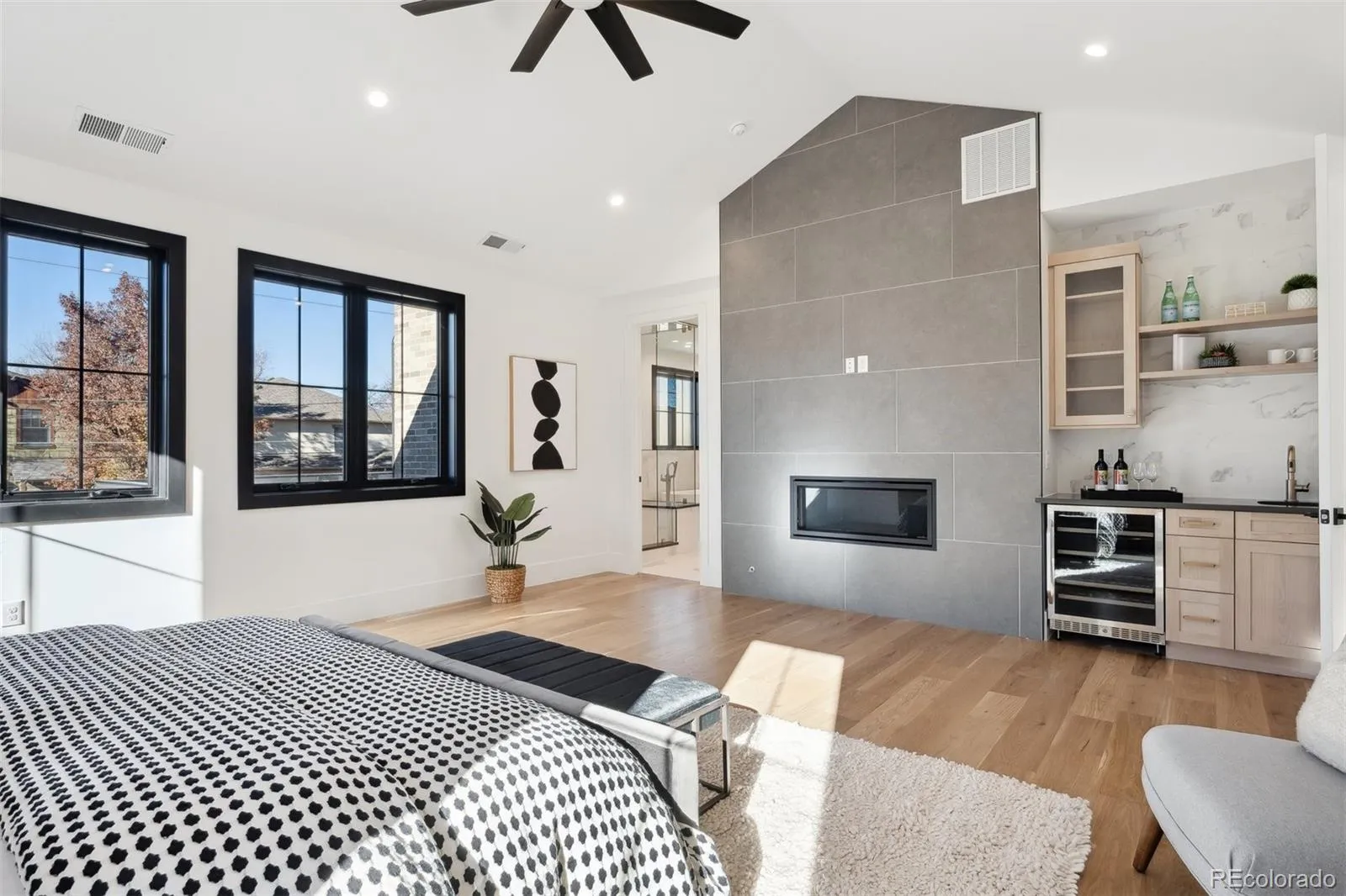 The mudroom includes a built-in dog wash, keeping your pets clean and your home pristine. Upstairs, the luxurious primary suite offers a spa-inspired retreat, complete with double rain head showers, a large walk-in closet, and a built-in wet bar with a beverage fridge. Each additional bedroom includes its own en-suite bathroom and walk-in closet, providing privacy and convenience for all.
