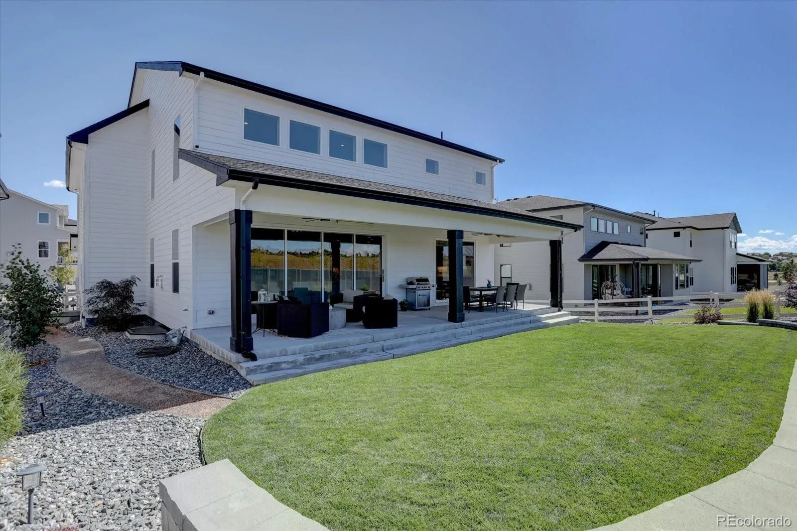 extended covered rear patio (40’) is perfect for year-round entertaining with heaters & fans, gas lines for a