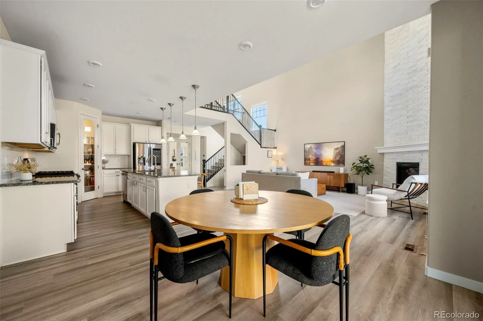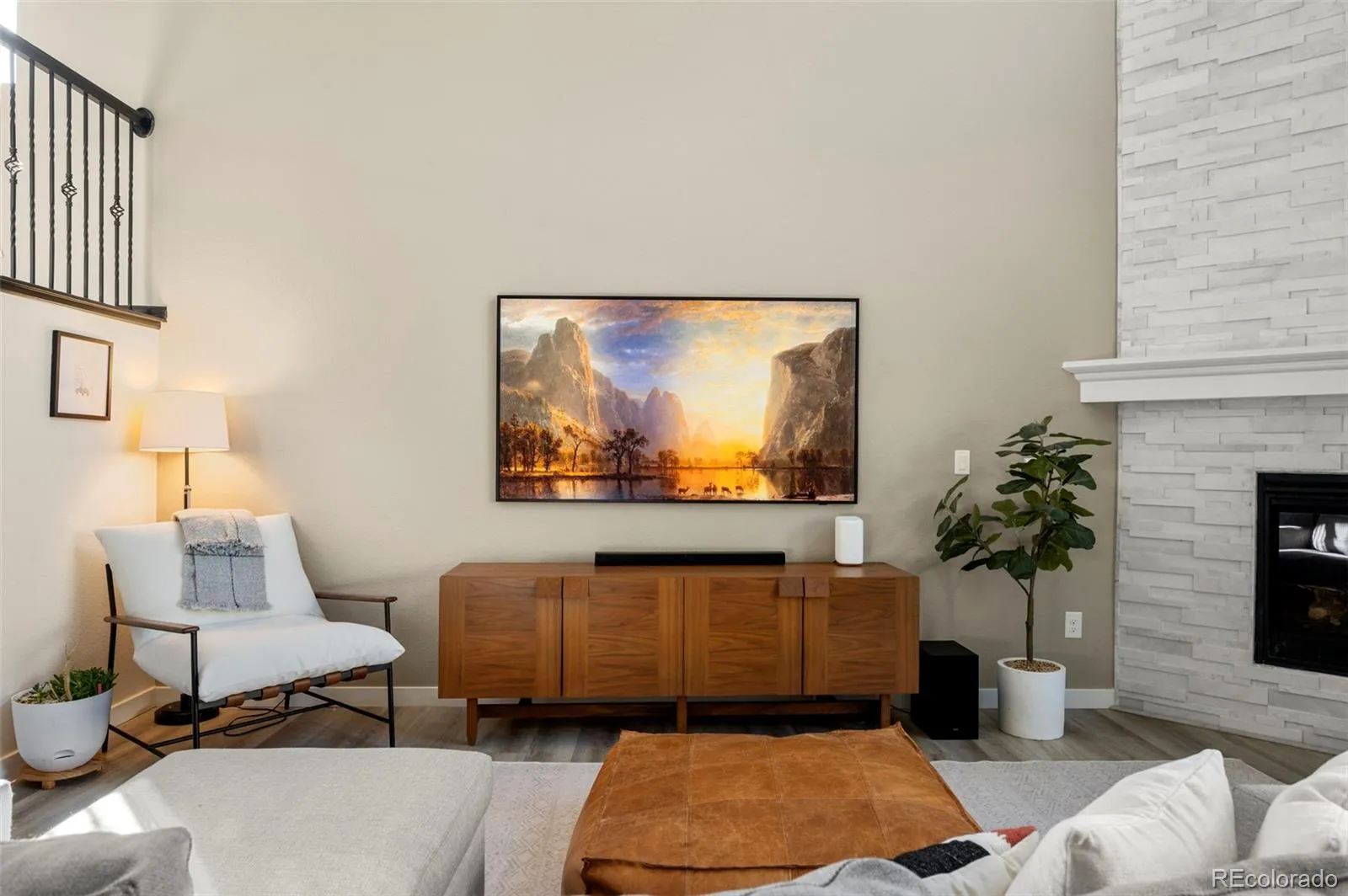 The main level offers a private office off the foyer, luxury vinyl flooring, and a gourmet kitchen with quartz counters, stainless appliances, gas cooktop, large island, and walk-in pantry. The kitchen flows seamlessly into the soaring living room with a stone fireplace and opens to the covered patio and beautifully landscaped yard. Off the 3-car garage, a convenient mudroom keeps everyday living organized.