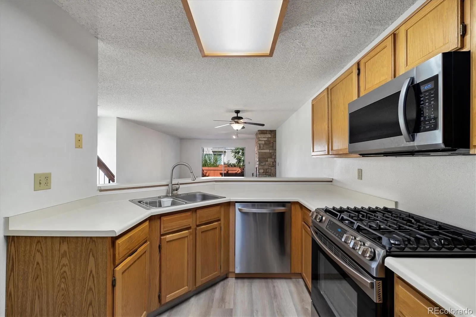 Exceptional End-Unit Townhome Near Cherry Creek! Welcome to this beautifully updated end-unit townhouse perfectly situated near Cherry Creek and countless shopping, dining, and recreation options. Nestled on a greenbelt, this home offers both privacy and a serene setting, while still being close to everything you need.Inside, you’ll love the open floorplan featuring new laminate flooring, fresh carpet, and a cozy wood-burning fireplace that anchors the spacious living area. The kitchen is equipped with newer stainless steel appliances, including a gas range, making it a chef’s delight. Upstairs, you’ll find two oversized primary suites, each offering comfort and versatility. A newer furnace ensures year-round efficiency and peace of mind. Step outside to enjoy a large private patio, perfect for entertaining or relaxing outdoors. Conveniently equipped with electric stair lifts on every floor for enhanced accessibility and comfort. Additional highlights include a two-car garage and access to a vibrant community with two pools, two hot tubs, and two clubhouses—ideal for both relaxation and social gatherings. Don’t miss your chance to own this exceptional home that combines comfort, convenience, and community in one perfect package!
