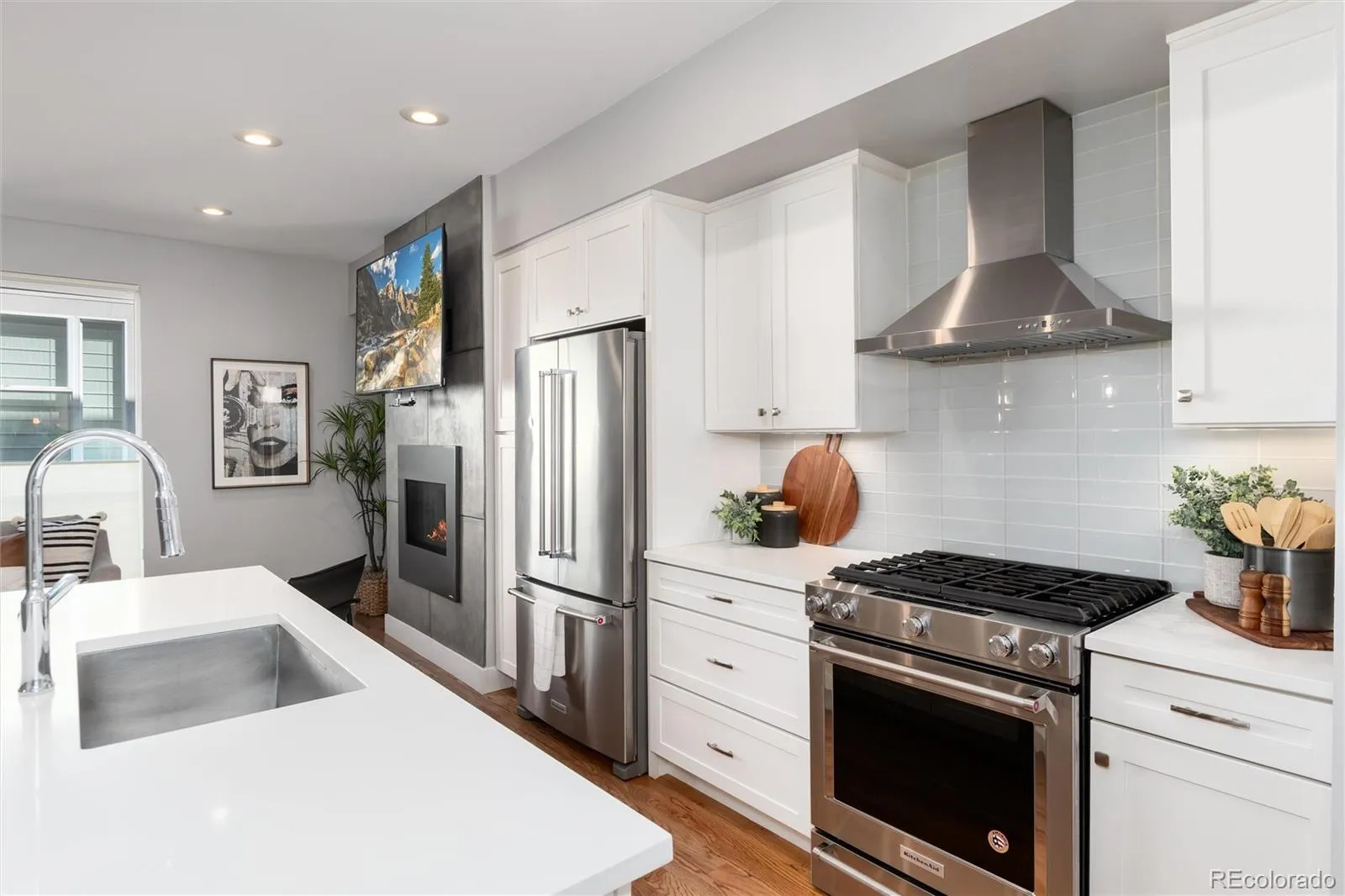 Welcome to 4926 Lowell Blvd — a stunning, modern townhouse nestled in the highly desirable Regis Berkeley neighborhood. Just a half-block south of Regis University, this beautifully crafted townhome combines contemporary finishes with thoughtful design, all in a walkable, vibrant community. Step inside to find gorgeous wood floors throughout, updated modern lighting, ceiling fans, and an inviting gas log fireplace in the living room. The open-concept kitchen features quartz countertops, stainless steel appliances, and a kitchen island — all complemented by custom window coverings throughout, an abundance of natural light.