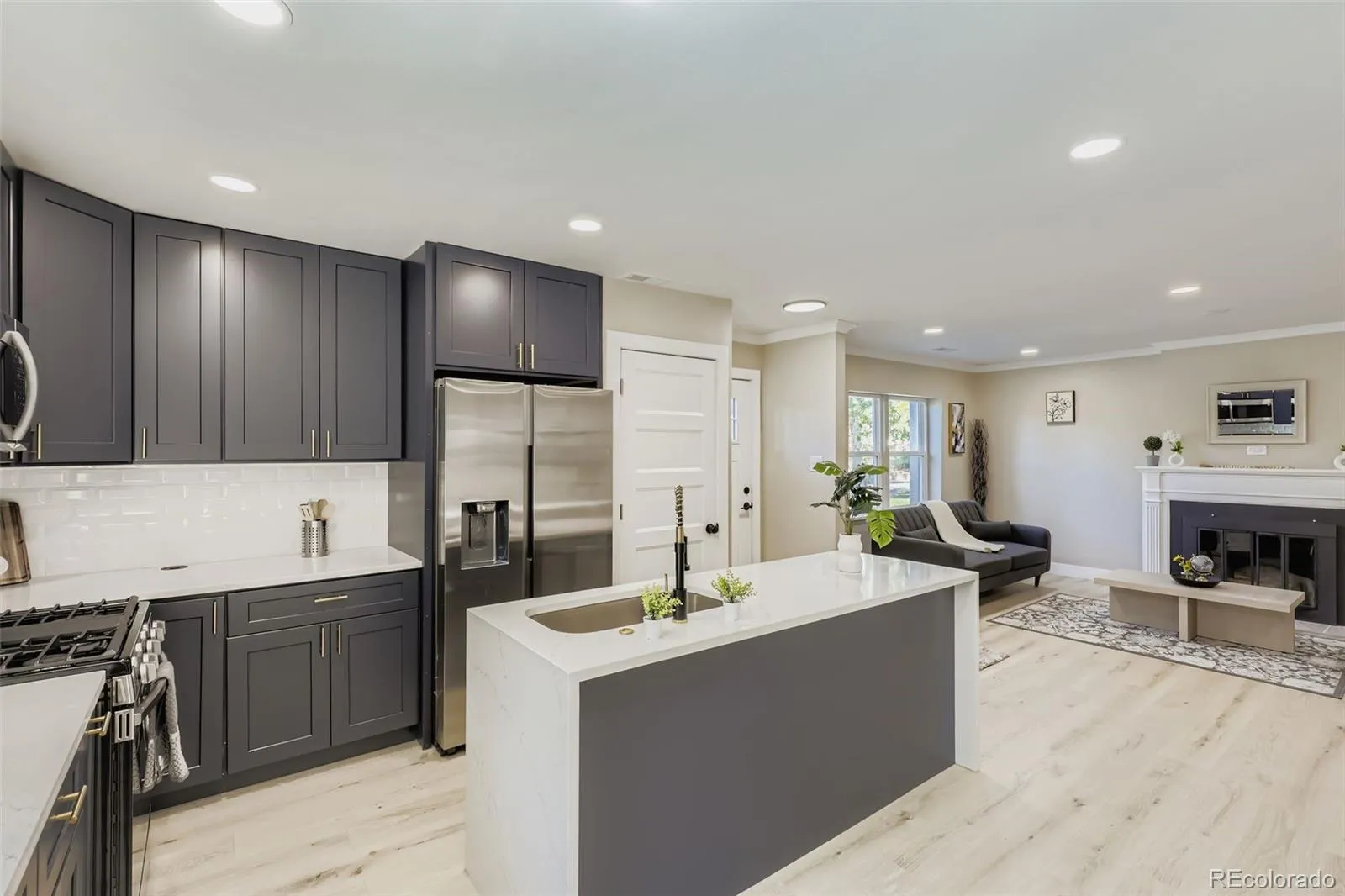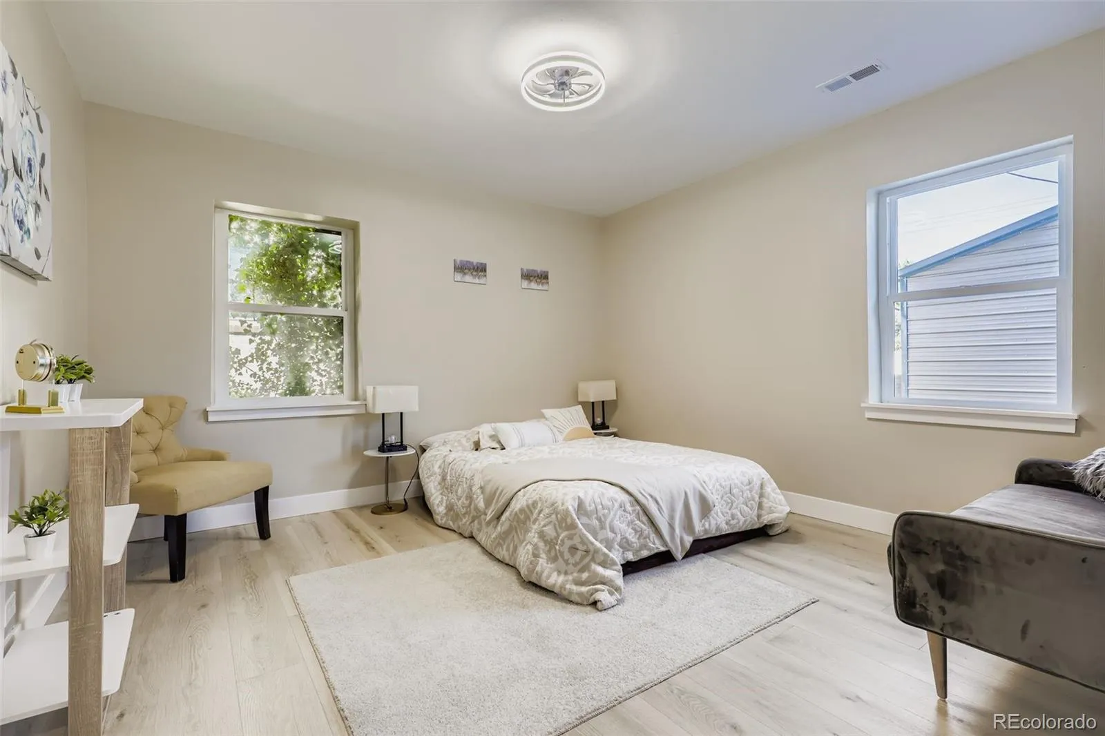 This beautifully remodeled 1940s cottage in Park Hill is waiting for you! Completely redesigned with modern living and features in mind, and conveniently located within walking distance of City Park, Denver Zoo, Museum of Nature & Science, and other popular amenities. This is truly a little gem in the heart of Denver! Come see it to appreciate all the original charisma and charm of the 1930s-1940s era design, complemented by modern upgrades and amenities. Take a look through the listing pictures to see the approach taken that offers a charming and welcoming atmosphere. Rooms and the main layout of the home were shifted and changed to create an open layout with a large kitchen, two full bathrooms, and an attached garage that was converted into an additional large room. Brand new HVAC/AC unit and new ducting will keep you cool on warm summer days, while a new furnace will keep you comfortable throughout the year. Both come with extended warranties. Other interior upgrades include new lighting, fixtures, quartz countertops, cabinets, paint, and waterproof laminate floors throughout. The large backyard does not require any upkeep or watering, so you can save on water bills. And if you need additional garage space or prefer to work on your own cars, then you will appreciate the new oversized 30′ x 20′ garage. The sunroom is a beautiful bonus, bright and cozy, make it into your own little escape, a dining room, or an office. Newer roof (replaced in 2019) will keep your insurance costs down, and stucco exterior is easy to maintain. There is more to see and like about this house, so schedule your showing today!