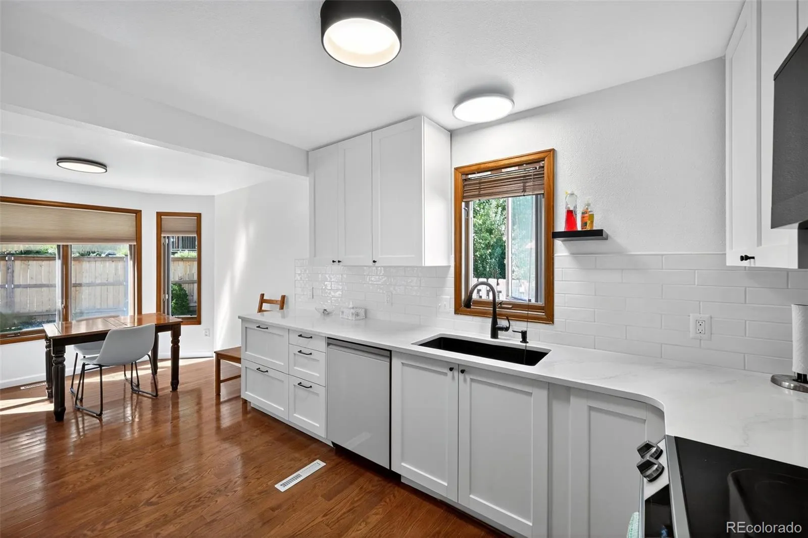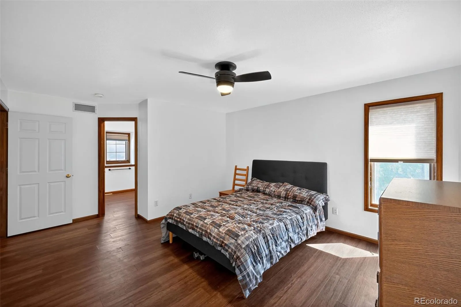 This exceptional Morrison home offers the perfect blend of modern updates and classic charm! Step inside to beautiful solid hardwood floors throughout the main level, complemented by elegantly crafted solid oak stairs and high-end LVP floors throughout the second floor, all new floors on all three levels and solid oak stairs. The new kitchen is a chef’s dream, featuring custom cabinets, quartz countertops, tile backsplash, new sink, and hardware. Relax in the large jet tub or enjoy the Jack and Jill sinks in the main bath. The finished basement and gas fireplace add comfort and versatility, including a partially finished bathroom framed with drywall installed, ready for inspection, and featuring drains for a sink and shower/tub, as well as a utility/storage room housing the water heater and HVAC systems. Outside, the large backyard boasts mature trees, a fat Albert spruce, spruce and pine shrubbery, new planters, landscaping, and a charming pergola, perfect for entertaining. High-speed fiber optic is installed and available, and the property provides direct trail access to Bear Creek Lake Park via a pedestrian bridge over 285, just steps from the front door. From several windows, including an upstairs spare bedroom/office, you can enjoy views of Green Mountain. Additional upgrades include radon mitigation, a new sump pump, new bathroom fixtures, and a new central AC unit. Located within walking distance to D’Evelyn Junior/Senior High School, one of Colorado’s top public schools, and just minutes from Bear Creek Lake, mountain trails, and outdoor recreation, this home combines style, function, and Colorado lifestyle at its finest.