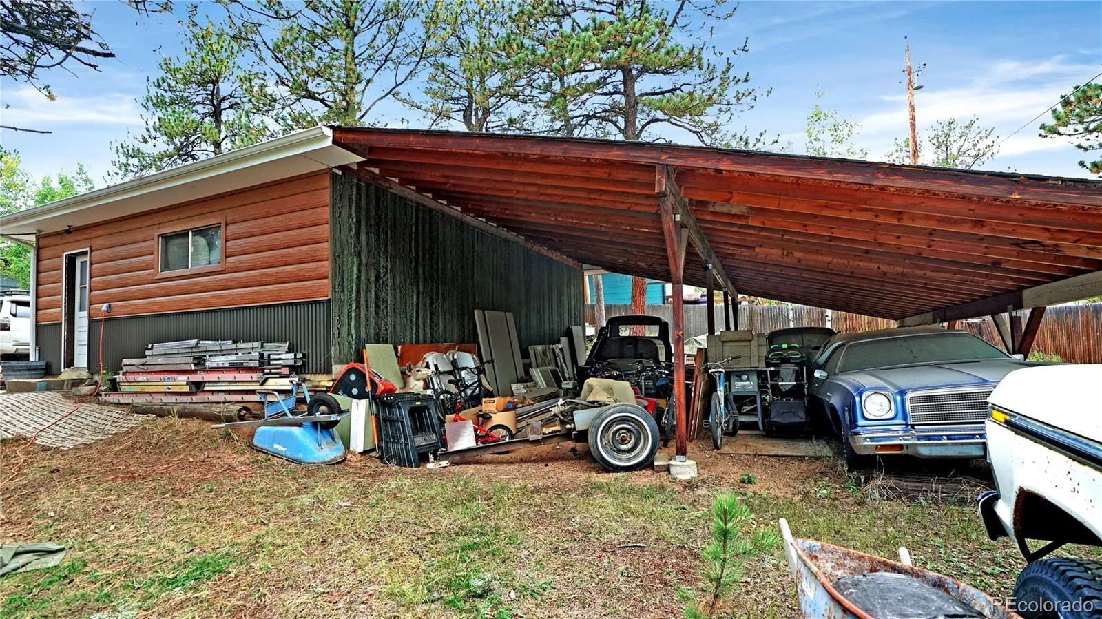Welcome to 183 Bartimous Rd, a one-of-a-kind property in the heart of Harris Park. This mountain home sits on a flat, usable lot surrounded by abundant aspen groves and old-growth ponderosa pines, offering both natural beauty and everyday comfort. Inside, the home is bright and welcoming, with great natural light throughout and ample storage, including two closets in the primary bedroom. The kitchen has been updated with new LED lighting, and the home offers three heat sources: LP forced air, electric baseboard, and a cozy woodstove that keeps the house warm and comfortable even during the coldest Colorado days. The property also features an oversized two-car garage with finished, insulated walls, a floor drain for easy cleanup, and a chimney already installed for a future fireplace if desired, along with a four-car carport for additional covered parking. Recent updates include fire-rated steel siding with added insulation value, freshly painted exterior windows (in progress) and garage doors, and new TREX composite decking with an aluminum railing system on the way. The southern exposure driveway makes for easy year-round access, even in the heart of winter. The property includes an owned propane tank and a concrete slab for an additional 500-gal. tank if desired. Life in Harris Park comes with unique perks, including access to three private ponds reserved for residents, as well as community events throughout the year like July Kids Fishing Derby, Trunk-or-Treat, and more. Families will enjoy the new playground located west of the church, which offers awe-inspiring mountain views, and outdoor enthusiasts will appreciate the shooting range, 4-wheel drive trails, and close proximity to Pike National Forest access points for hiking, hunting, and exploring. With abundant birds and local wildlife right outside your door, this property is more than a home, it’s a lifestyle. More photos coming soon–check out the virtual tour and call for your personal showing today!
