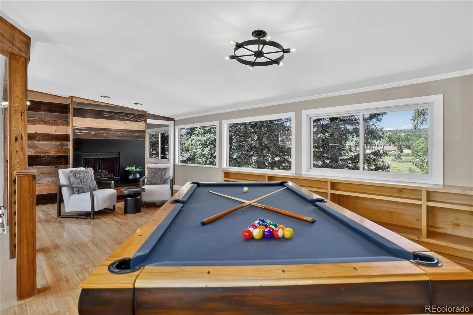 The living room showcases designer fireplace & ample windows to take in the views. Gorgeous gourmet kitchen with custom cabinets, white quartz, waterfall island, designer tile, wine fridge, subzero refrigerator & wolf stove. Open floorplan flows into dining room & onto large NEWLY PAINTED deck for entertaining & enjoying the views. Main floor primary suite with deck access & 5 piece ensuite bath complete with jetted tub & walk-in closet. Additional 2 bedrooms, full bath, den, powder room & laundry room (washer & dryer included) are conveniently located on the main floor. The open loft with custom fireplace is the perfect game room with pool table included. Office with built-ins (could be 5th bed) also located upstairs. The walk-out basement is great for multigenerational living. The family room features custom built-in shelving & access to lower patio. Lower bedroom (closet in bath), full bath & versatile bonus room for gym, crafts or storage complete the lower level.