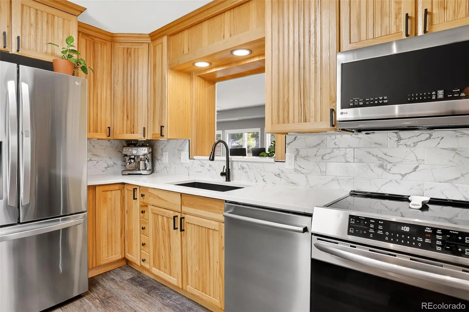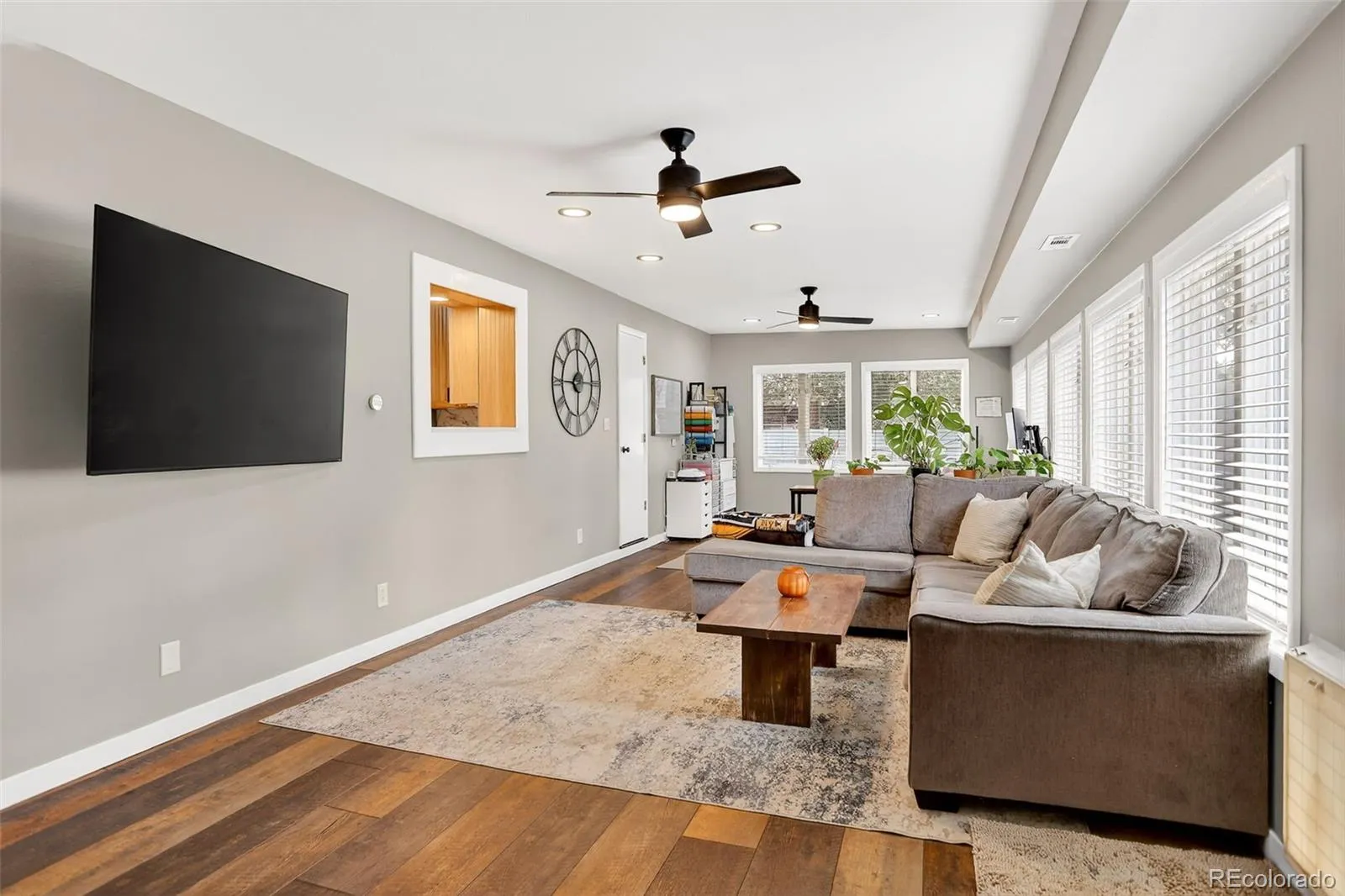Light-Filled Retreat in the Heart of Longmont. Moments from the vibrant energy of Main Street, yet tucked within a peaceful residential setting, this beautifully refreshed Longmont residence blends modern comfort with effortless livability. Thoughtfully updated throughout, the home showcases new lighting, upgraded hardware, and a brand-new roof and furnace-creating a turnkey sanctuary just steps from parks, schools, and the city’s beloved shops and dining. A welcoming living room with custom built-ins and an electric fireplace sets the tone, while the bright, reimagined kitchen features an induction stove, new quartz countertops, a charming breakfast nook with built-in seating, plentiful cabinetry, and a skylight that drenches the space in natural light. The expansive family room, wrapped in windows and flowing seamlessly to the kitchen, is an ideal setting for entertaining. Generously scaled bedrooms offer private retreats, including a main-floor bedroom with its own entrance and a serene primary suite with barn doors, a walk-in closet, and a spa-like ensuite boasting a huge shower and dual sinks. The lower level unfolds into a versatile recreation area with new carpet, abundant storage, and an entertainment space complete with a pool table. Outside, a private fenced driveway provides ample parking, while the spacious backyard invites outdoor living with garden beds and an in-ground firepit for evenings under the stars. Designed for gathering, entertaining, and everyday ease, this home embodies Longmont living at its most inviting-bikeable to everywhere you want to be.