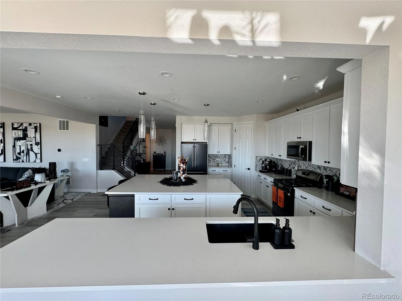 From the moment you step into this home, you’ll instantly fall in love. The open floor plan creates a warm and inviting atmosphere, starting with a welcoming entrance that leads into a versatile space—either an office or dining room. The flow continues into a stunning, spacious kitchen featuring quartz countertops, a generous island, pantry, and a breakfast bar that overlooks the sunroom and living area. The sunroom is filled with natural light and provides access to the deck, perfect for grilling with an outdoor natural gas line already in place. The living room boasts oversized doors to the deck, a cozy fireplace, mounted tv (included) and soaring vaulted ceilings, making it an ideal spot to relax with your morning coffee.