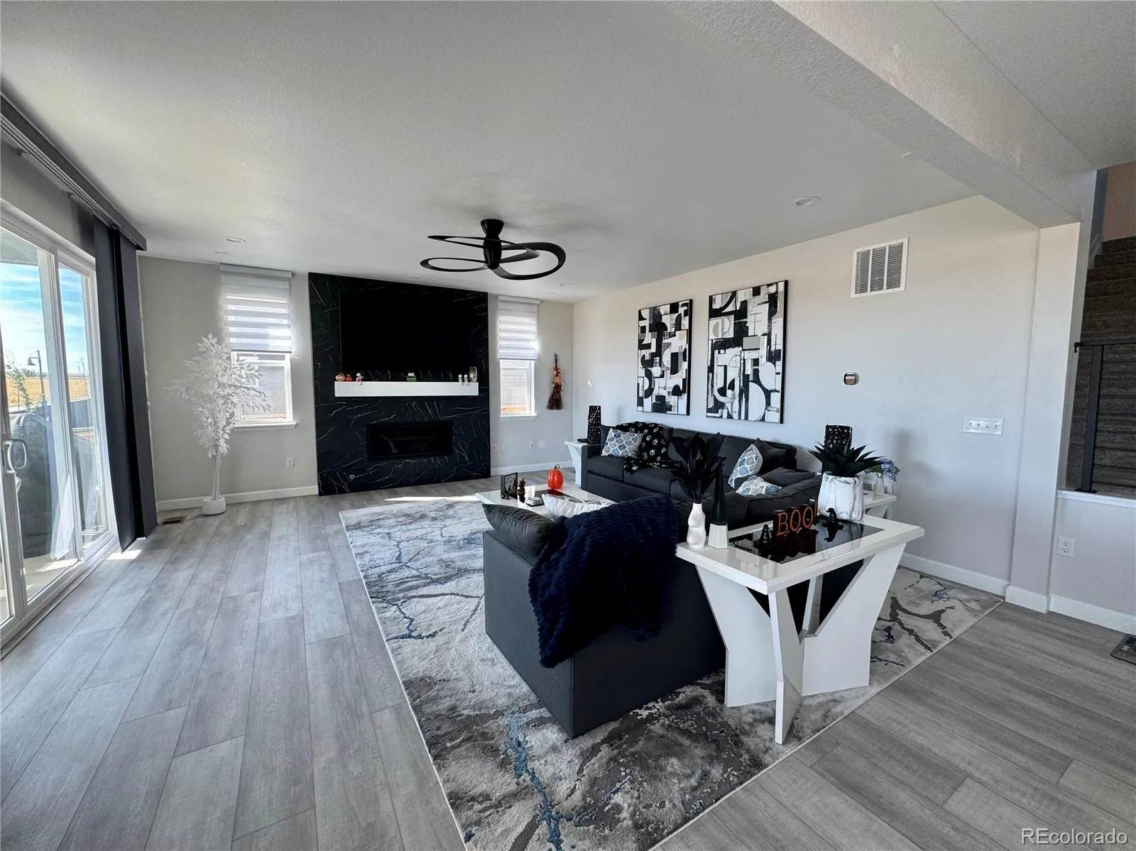 If you need a main-floor bedroom, you’re in luck—there’s one with a convenient half bath nearby. Upstairs, you’ll find a beautiful wrought-iron railing that leads to a large loft perfect for family entertainment. The primary suite offers two large walk-in closets, double sinks, and a spacious shower. The upper level also includes 3 additional bedrooms, a full bathroom, and a laundry room.