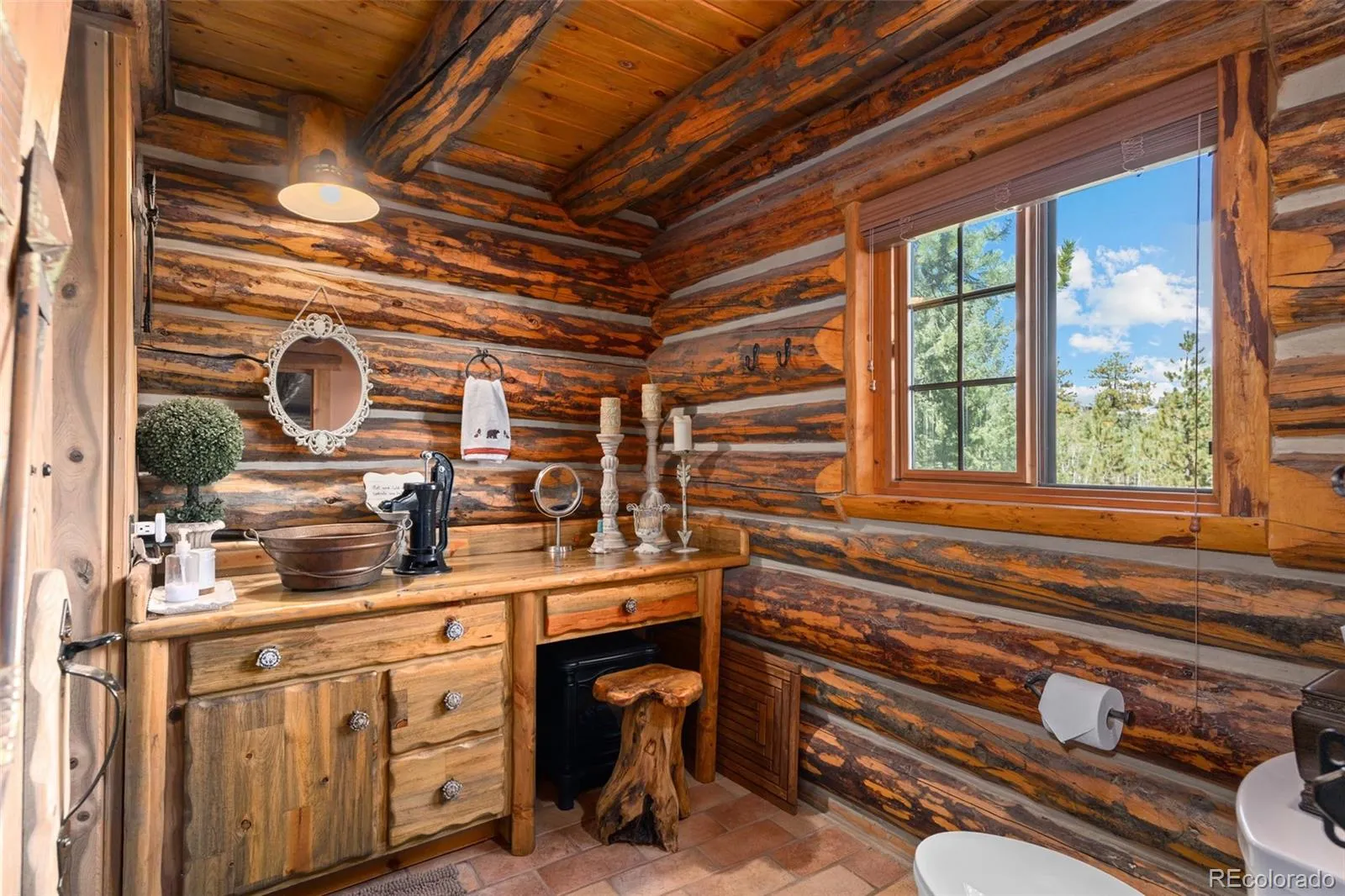 Looking for a true Colorado log home, not log siding or a log-style house? This authentic hand-hewn log cabin in Bailey offers craftsmanship that is increasingly rare.