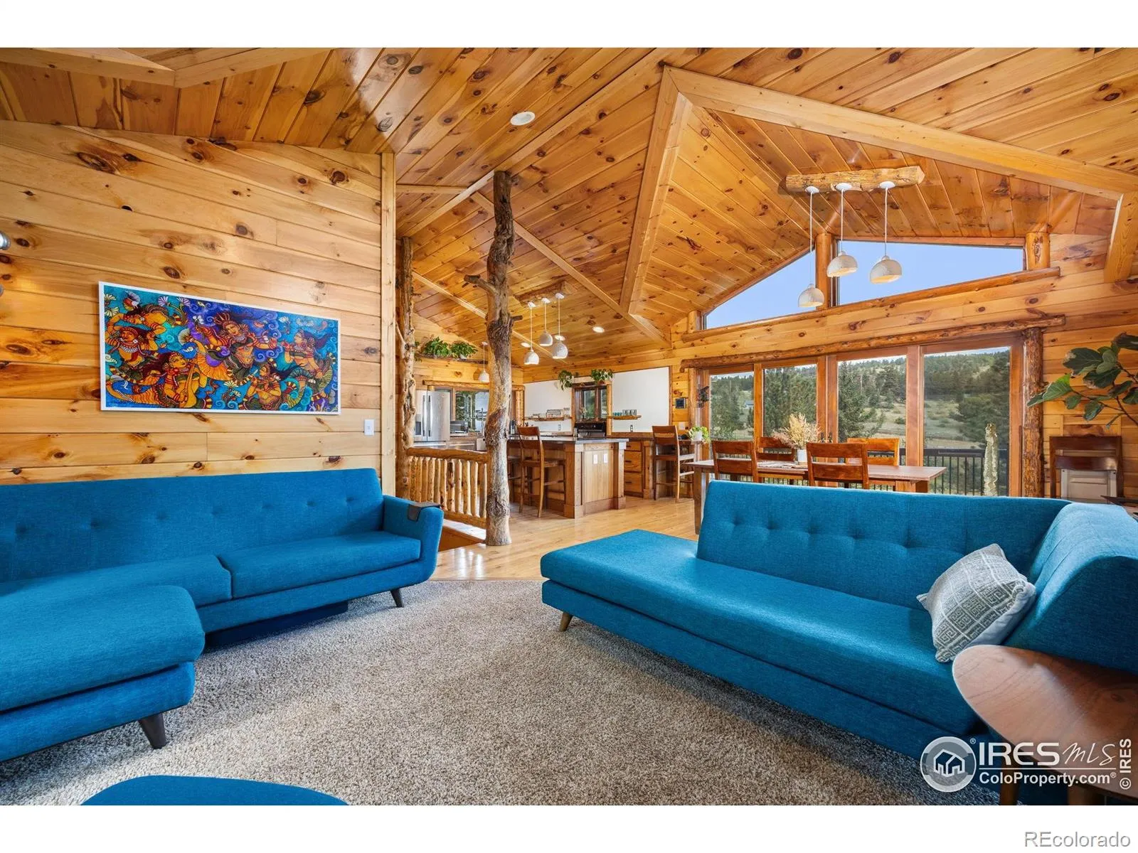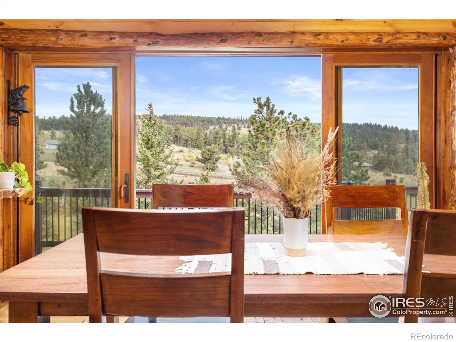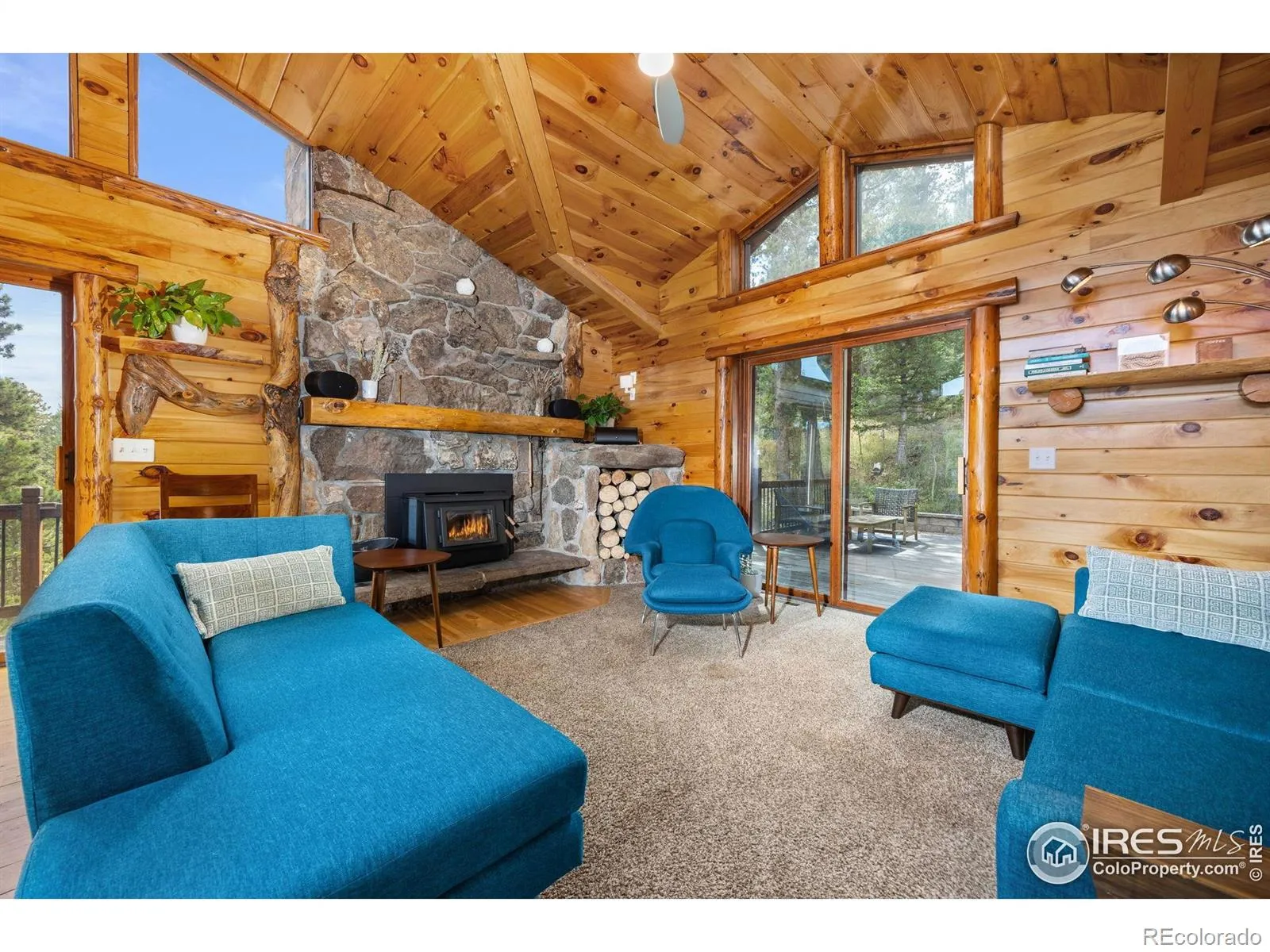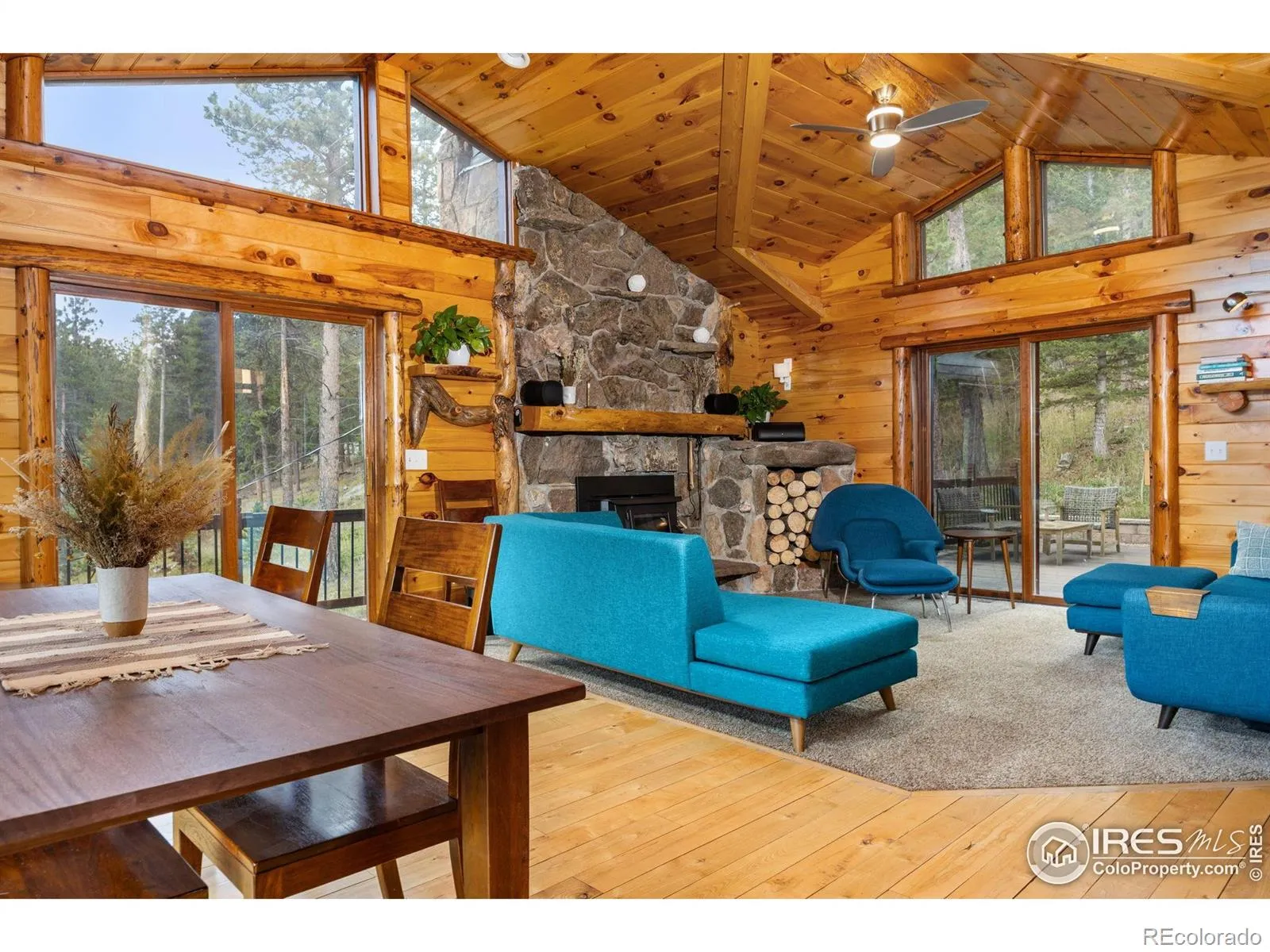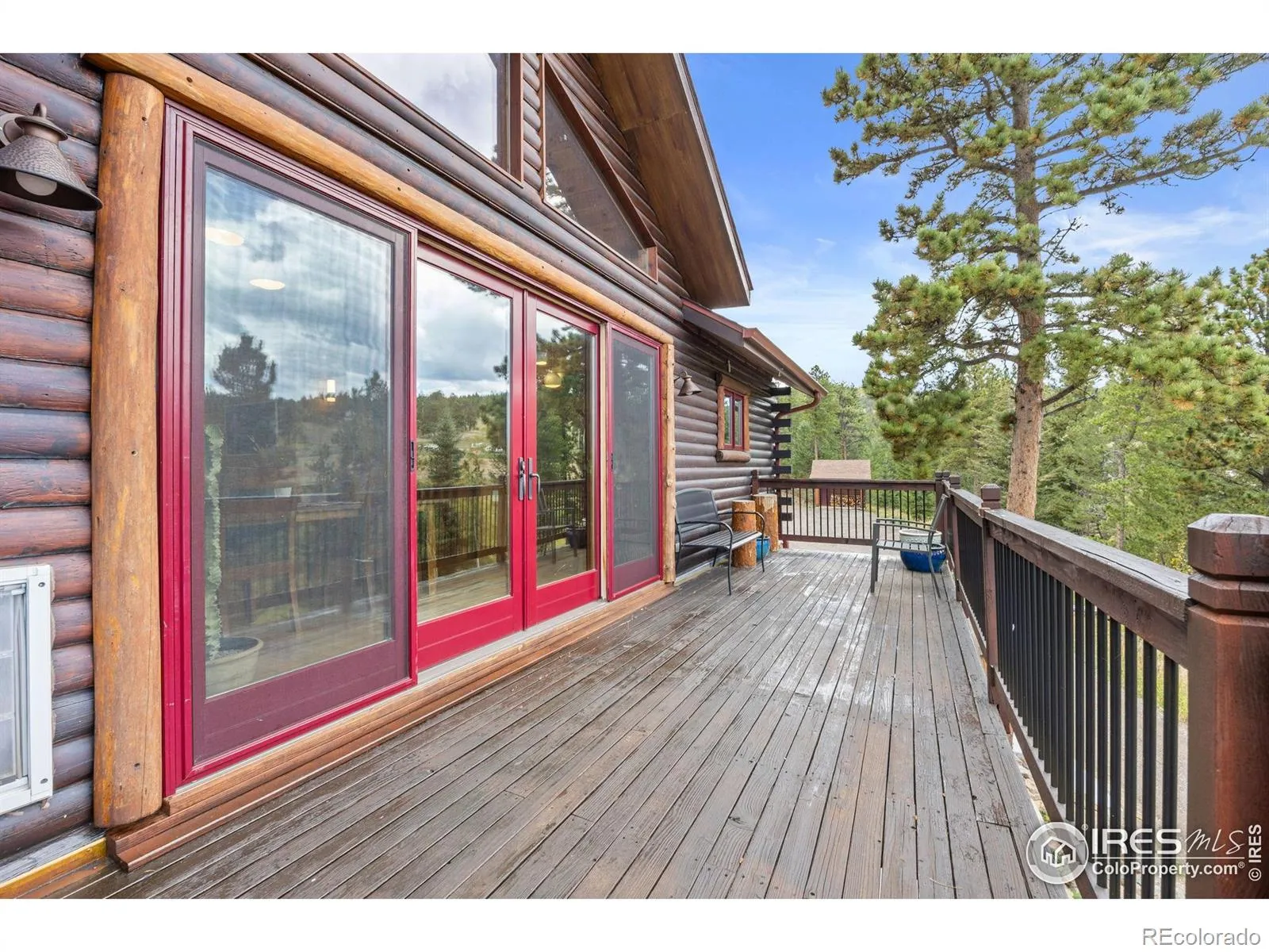 Perfectly positioned between Nederland and Boulder this custom-crafted log home blends timeless mountain charm with thoughtful modern updates. Set on 5 usable acres of green pasture with a barn/loafing shed, this property offers both privacy and wide-open space with serene mountain views. Inside, the finishes are a true work of art- rustic logs, tongue-and-groove pine, wide plank wood floors and fine custom wood details throughout that accent tall vaulted ceilings in this floorplan designed for both function and beauty. The kitchen shines with custom cabinetry, granite countertops, an island and updated appliances, while sliding glass doors open to a sunny wraparound deck that seamlessly connects indoor and outdoor living. Bright sunlit spaces are enhanced by skylights peppered throughout the home that create warm and inviting spaces. Soak in the warm ambiance around the natural stone fireplace in the evenings while spending your days on the spacious & sunny deck. Practicality meets craftsmanship with a workshop-style entry room for gear storage, a wired generator for peace of mind, and a 10kW solar system plus EV charger for efficiency. The oversized 2-car garage includes a private 1-bedroom ADU apartment with a kitchen and 3/4 bath-perfect for guests, rental income or multi-generational living. Additional features include a log-style shed, greenhouse and wraparound outdoor spaces where you can enjoy the crisp mountain air. Bring your horses, bikes, or ATVs- National Forest trails are nearby, offering endless recreation. A quick and scenic 20-minute drive brings you to the vibrant, cultural oasis of Boulder, or stay closer to home and enjoy the charm of Nederland with its local shops, restaurants, breweries, movie theater and live music venues. Winter brings skiing at nearby Eldora or skating at the town’s outdoor ice rink, while the surrounding trails and community events ensure year-round adventure and entertainment.
