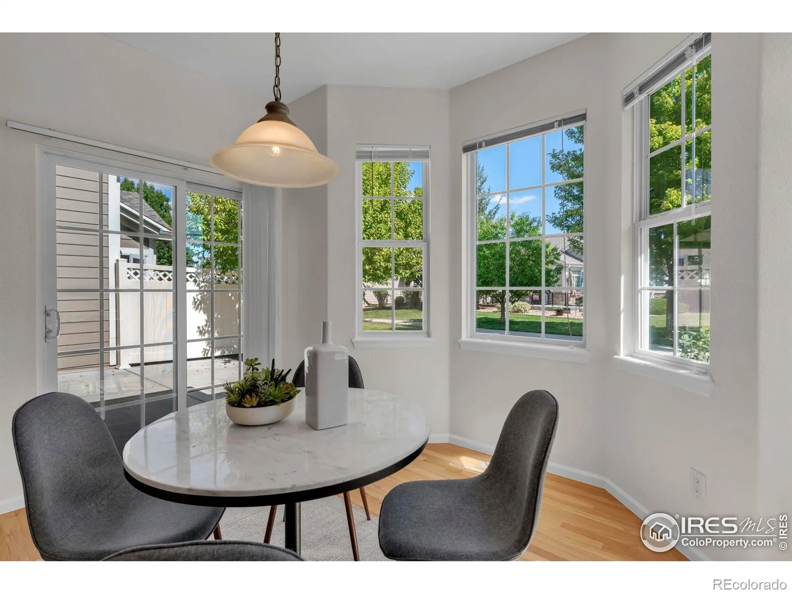 Located on a corner lot in the Broadlands community, this 3-bed, 2 bath townhome features a bright, open layout with fresh interior paint and brand-new mechanicals, making it move-in ready. The main level offers a dining room and a living room with soaring ceilings, anchored by a cozy fireplace and access to the back patio. The kitchen provides ample cabinetry, generous counter space, a pantry, and a sliding door to the patio. An adjoining breakfast nook, surrounded by windows, overlooks the community walking path. Also on this level are two versatile bedrooms, one ideal as a home office, along with a full bath and a convenient laundry/mudroom leading to the two-car garage. Upstairs, the spacious primary suite serves as a private retreat with an en-suite bath and walk-in closet. Over 1,300 square feet of unfinished basement space offers excellent potential for future expansion. The community amenities include an extensive network of walking trails around Plaster Reservoir, while golf enthusiasts will appreciate the proximity to Broadlands Golf Course. HOA dues provide access to the activities center, indoor and outdoor swimming pools, clubhouse, and fitness facility. With low-maintenance living in a central Broomfield location, this property also offers easy access to parks, trails, playgrounds, the Paul Derda Rec Center, Broomfield Commons, FlatIron Crossing, Whole Foods, and The Orchard Town Center.