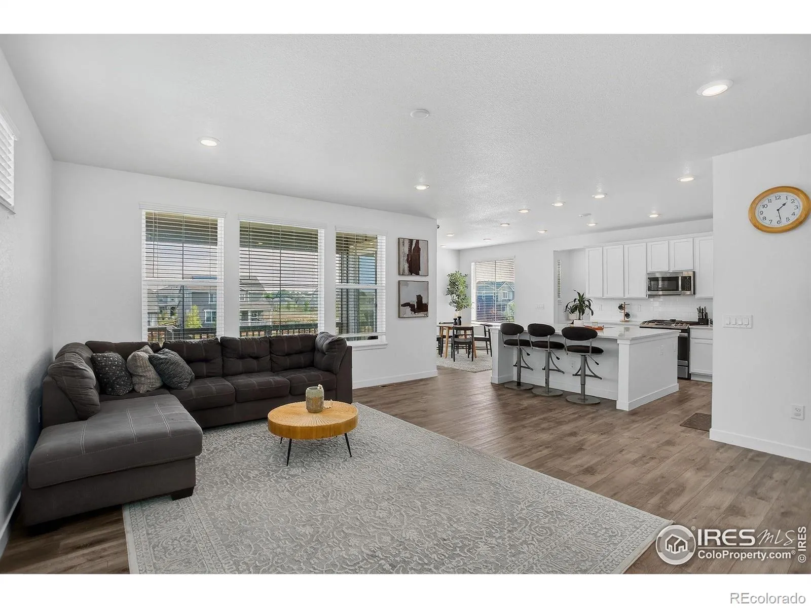 A distinctive addition defines this property from the start: a covered, private basement entrance that leads to a mostly finished basement apartment, perfect for guest privacy, multi-generational living and more! With timing just right, buyers can still choose final touches to make it their own! Ideally situated in Morgan Hill, this 3-bedroom, 4-bathroom home backs to open space with direct access to the neighborhood trail system, leading straight to Downtown Erie and around the community. Just a short distance from the future Town of Erie Park, two neighborhood parks, and the community pool this home’s location offers the perfect blend of convenience and lifestyle. The covered, front porch offers an inviting entrance. Inside, the home features an open, versatile layout with a dedicated home office at the front of the home, a living room filled with windows and a powder room. The kitchen, with a huge central island, offers a dedicated dining nook that flows directly to an elevated outdoor deck. The backyard overlooks protected open space, with no neighbors directly behind. Easy living continues with a pocket office, a large walk-in pantry and mudroom that leads to 3-car garage equipped with EV charging. Upstairs, you will find all 3 bedrooms plus a large loft with ensuite bathroom, which can easily be converted to a 4th bedroom. Convenience continues with upstairs laundry, while the primary suite offers a relaxing retreat complete with an ensuite bathroom and spacious walk-in closet.