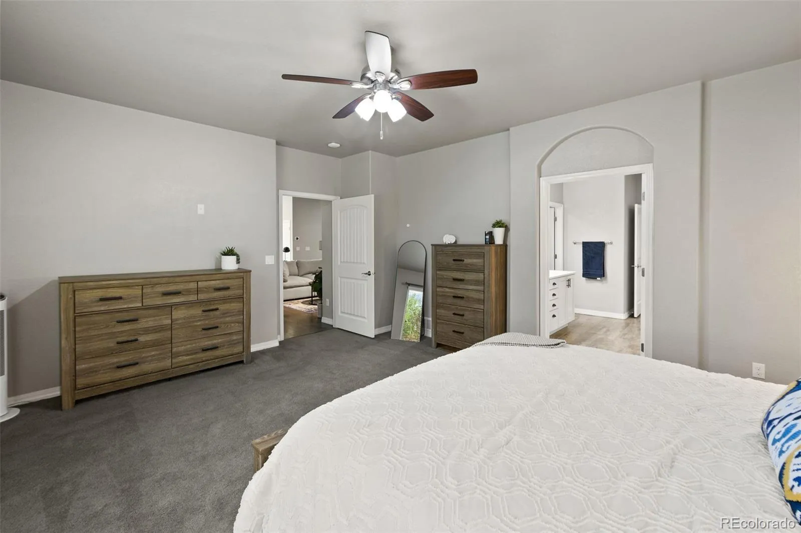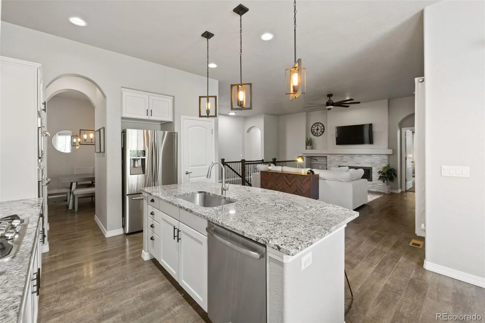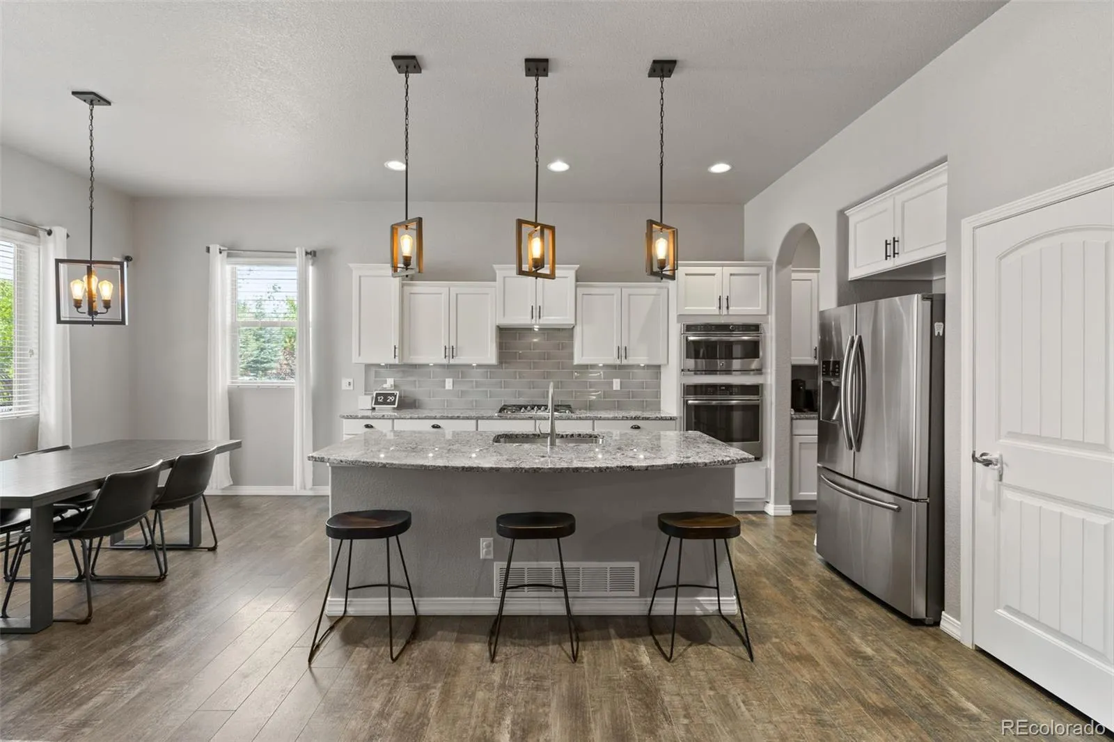 Luxury, lifestyle, and location converge in this stunning ranch-style masterpiece tucked within the prestigious Forest Lakes community. Perfectly positioned just steps from shimmering private lakes, miles of meandering trails, and serene open space, this residence offers a front-row seat to Colorado’s most coveted outdoor experiences—kayaking, paddleboarding, fishing, hiking, and community parks/concerts are all at your fingertips. From the moment you arrive, timeless sophistication and thoughtful design shine through. Inside, the open-concept layout is anchored by soaring ceilings, expansive windows that frame the natural beauty outside, and rich hardwood floors that flow throughout the main level. The gourmet kitchen is a chef’s dream, boasting granite countertops, stainless steel appliances, double ovens, a gas cooktop, soft-close cabinetry, and an oversized island. A stylish butler’s pantry adds both function and finesse. The great room is warm and welcoming, featuring a cozy gas fireplace and custom built-ins, seamlessly connected to an elegant dining area that opens to a covered composite deck—complete with roof heaters, so you never have to clear snow—ideal for year-round entertaining. Main-level primary suite offers a peaceful escape. JR suite, home office or flex room, and formal dining room on the thoughtfully designed main floor. Downstairs, the lower level expands your living space with a spacious rec room, wet bar, 2 additional bedrooms, full bath, and plenty of storage. Step outside to your personal oasis—lush landscaping and a private hot tub! A community known for its scenic 65-acre lake, rolling hills, and resort-style amenities, this home offers more than just a place to live—it delivers a lifestyle of tranquility, recreation, and elevated comfort. Quick access to I-25, top-ranked District 38 schools, and breathtaking mountain views, this is Forest Lakes living at its absolute finest.