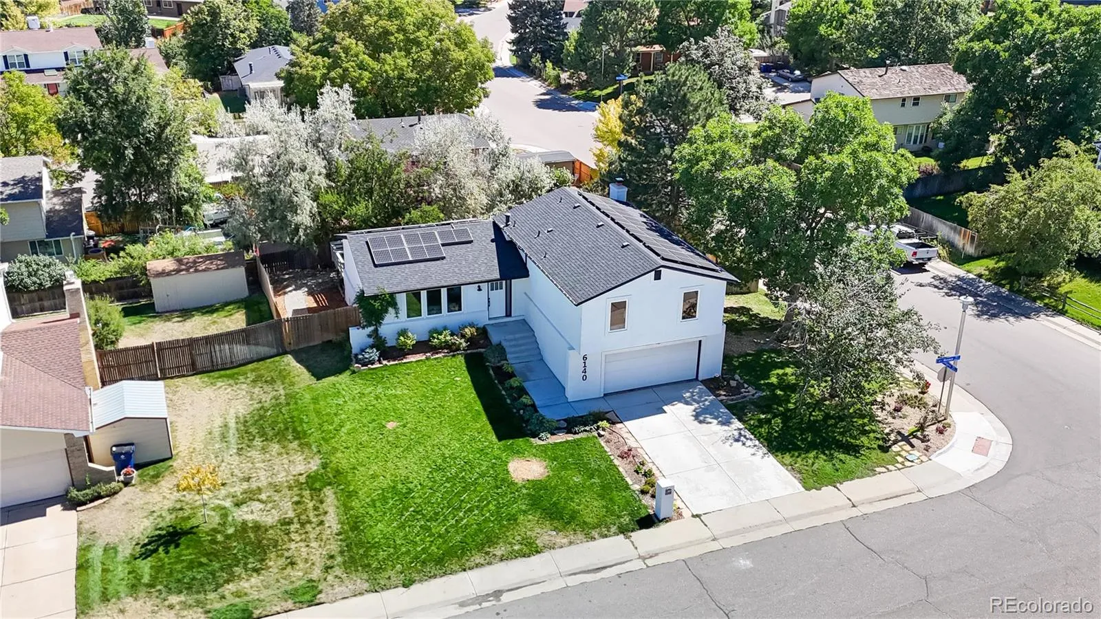Two spacious primary suites, including a lower-level bedroom that can also be used as an office or, living room, with a moss rock fireplace, sliding glass doors to the back patio, and a spa-like bath with a jetted tub. Additional bathrooms feature mahogany cabinetry, granite, and beautiful tilework.The finished basement offers a large family room with new carpet and laundry/storage area. Exterior was painted in 2021, Property also features Cape Cod lighting, striking black corbels, a newer garage door, radon mitigation system, and updated roof (2021), newer gutters (2021), solar system, newer sewer line, and fresh driveway all to add peace of mind. The large backyard is a true retreat with a deck, patio, and garden beds complete with watering system, perfect for outdoor living and entertaining. Fantastic garden in backyard, 2-car attached garage, and walking proximity to Palos Verdes Park and minutes from the Denver Tech Center, this home blends rustic warmth with modern convenience in an ideal location.