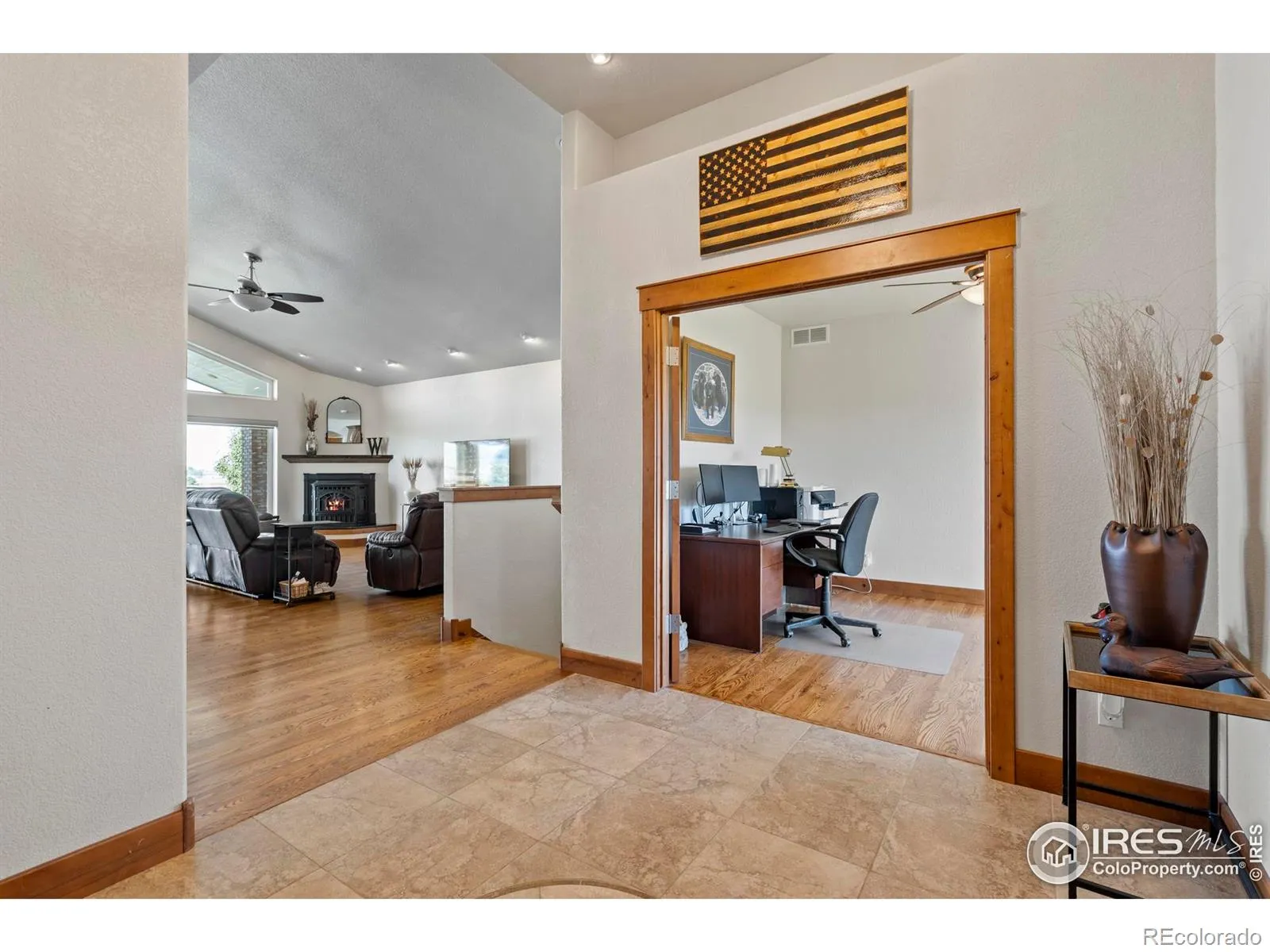 Welcome to your personal Colorado retreat at 36775 County Road 53 in beautiful Eaton. This custom-built, all-brick ranch home is perfectly positioned on over 30 acres of agricultural-zoned land, offering panoramic mountain views, peaceful sunsets, and the kind of space and privacy you simply can’t find in town. Inside, you’ll find a spacious and inviting open-concept floor plan centered around a chef’s kitchen featuring custom Select Alder cabinetry, a 6-burner gas cooktop with a built in Grill, trivection oven, and a stunning granite backsplash that reflects the mountain landscape views outside. The layout was made for entertaining and everyday comfort alike. The primary suite is a relaxing escape with dual walk-in closets, a luxurious spa shower, and separation from the guest bedrooms for privacy. There’s also a bright and functional home office complete with a charming bay window and built-in seating-ideal for remote work or a quiet reading nook. Outdoors, the possibilities are endless. You’ll love the professionally landscaped yard, complete with a 40′ flagpole surrounded by blooming perennials. A fully insulated, 1,276 sq ft shop provides the perfect space for projects, storage, or hobbies. RV owners will appreciate the full hookup station, and there’s also a loafing shed for animals or additional storage. Wildlife lovers and outdoor enthusiasts will enjoy the opportunity to hunt geese and doves right on the land. A two-year-old roof, new windows, and a custom walk-in storm shelter in the basement complete with a Fort Knox Vault Door round out this extraordinary rural property, located in the desirable Eaton School District.