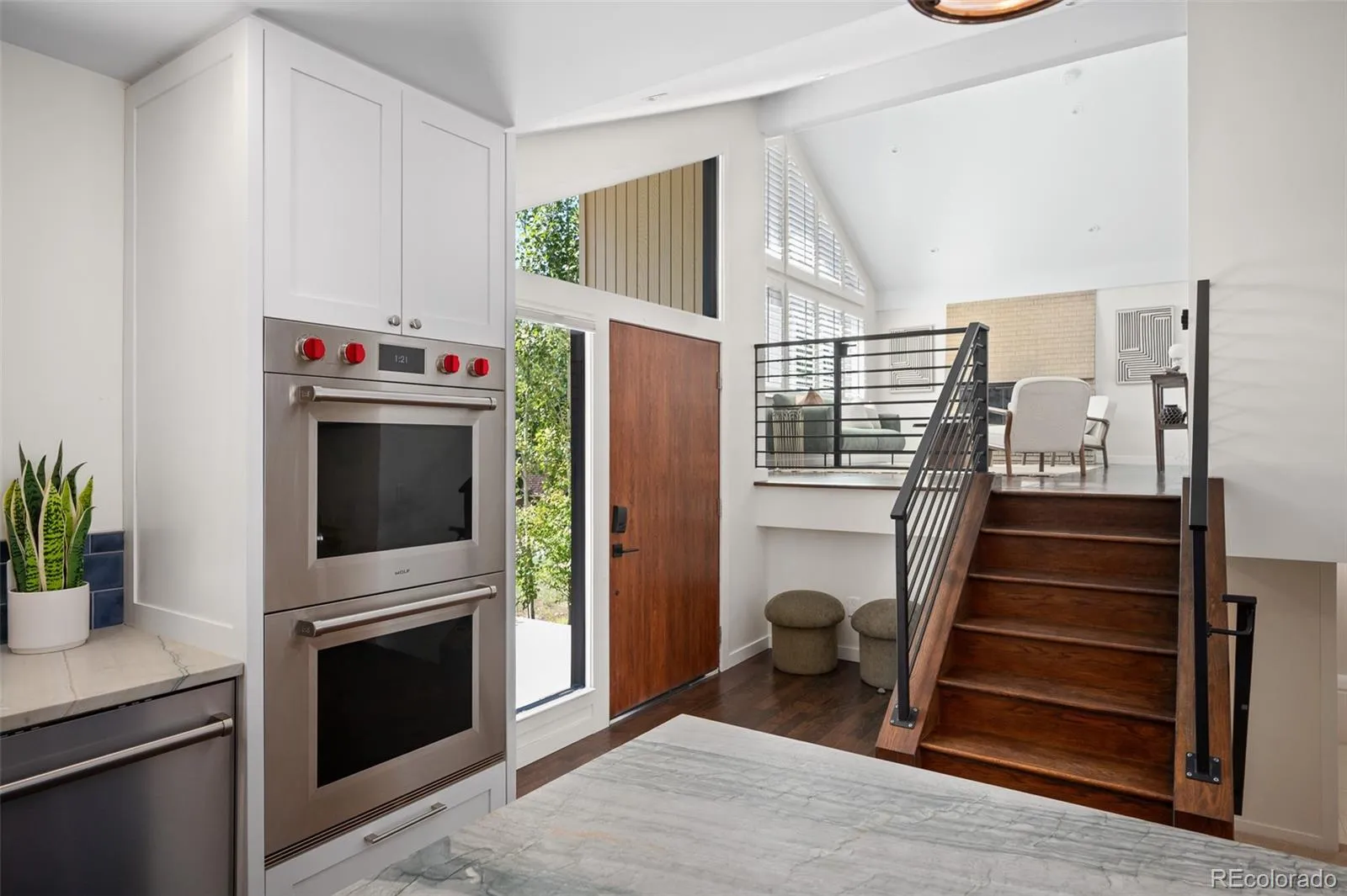 Step inside to discover a brand-new chef’s kitchen, the crown jewel of the home, featuring an oversized granite island, sleek custom cabinetry, and top-of-the-line appliances that make cooking and hosting effortless. A dramatic sliding glass wall opens the kitchen and dining area to the expansive entertainer’s patio, creating an indoor-outdoor flow ideal for gatherings under Colorado’s endless skies.