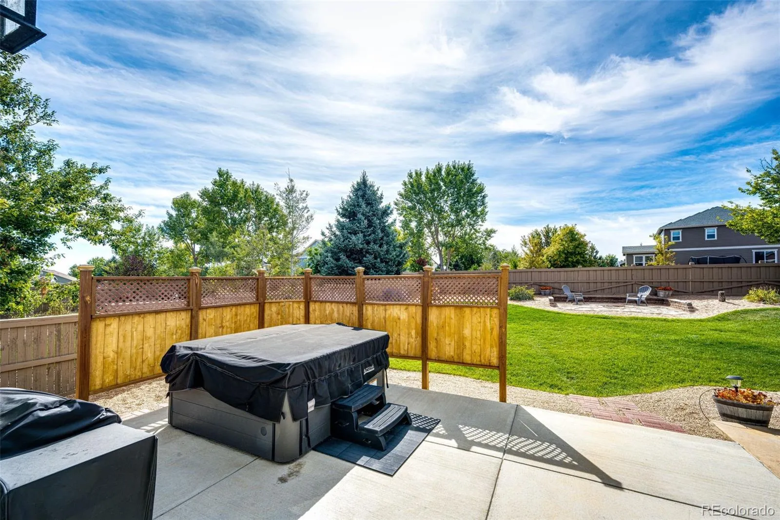 A huge back yard 4 patio areas including a one with a cabana. One patio has a private hot tub that is less than 5 years old and lots of space to entertain. A utility shed on the side of the house will hold your gardening tools and a fenced area that could be used as a dog run. The 3 car attached garage has work benches that stay and high ceilings. Large open basement is unfinished but, painted and set up as a gym. Rough in plumbing is there if you want to finish a bathroom. Close to all 3 level schools, parks and trails.