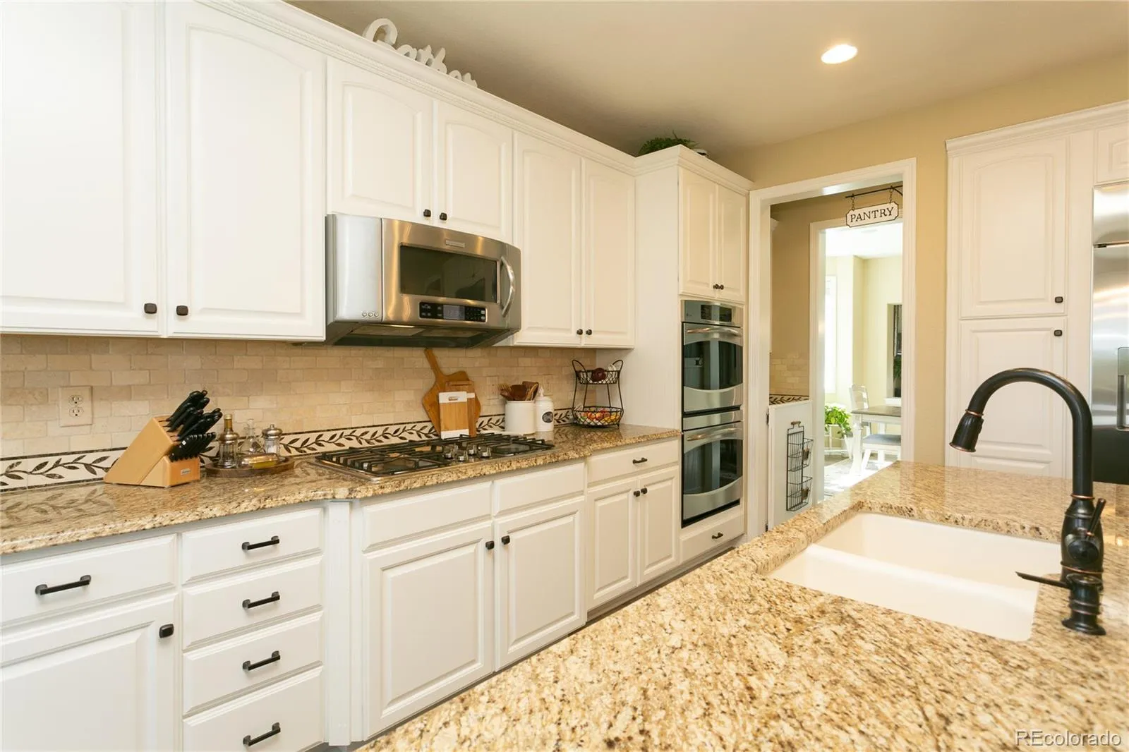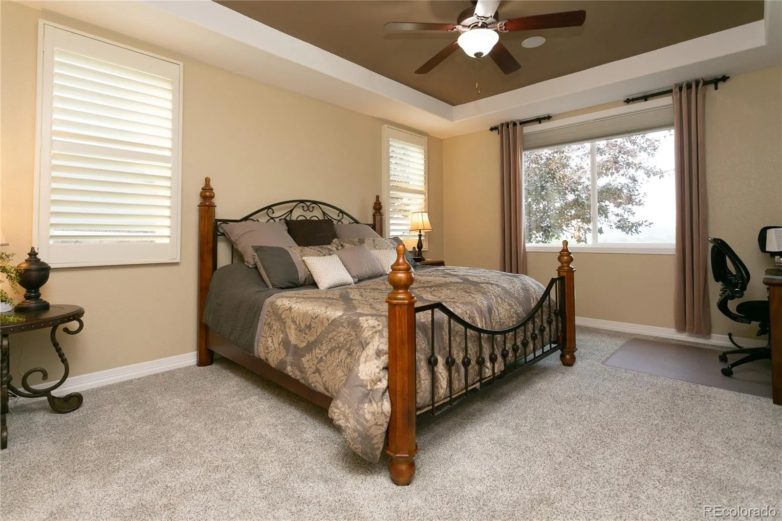 5-bathroom residence is fresh and spotless. an opportunity not to be missed. Designed with both entertaining and everyday living in mind, this home offers multiple spaces to gather and relax. New luxury vinyl flooring, newer carpet, and interior paint. The main level boosts an office with french doors, wainscoting and built in shelves. The 2 story formal living room is perfect for a library. The formal dining room has new lighting and a bay window. The gourmet kitchen is a chef’s dream with new appliances, granite countertops and large island. Adjacent to the kitchen is a cozy family room with a fireplace and built in shelves. The main level secondary master suite has a 5 piece bath with a custom walk in closet. Retreat upstairs to the large primary master suite, complete with a deep soaking tub, an oversized walk-in shower, dual vaniity, and a new custom spacious walk-in closet. There are 4 additional bedrooms and 2 baths, along with a spacious loft. Outside you can enjoy beautiful sunrises with your morning cup of coffee on the large covered patio. The 9 foot ceiling unfinished basement is ready for your customization and will provide ample space for all your needs. The outstanding Cobblestone Ranch community amenities include a pool, clubhouse, tennis court, pickleball court, paved trails, new 12-acre and stroller-friendly park with a playground, shelters and pavilions with picnic tables and benches, asphalt pump track for biking and more! Located in the Douglas County School District with easy access to downtown Parker, the Outlets at Castle Rock, shopping, dining, and conveniences.