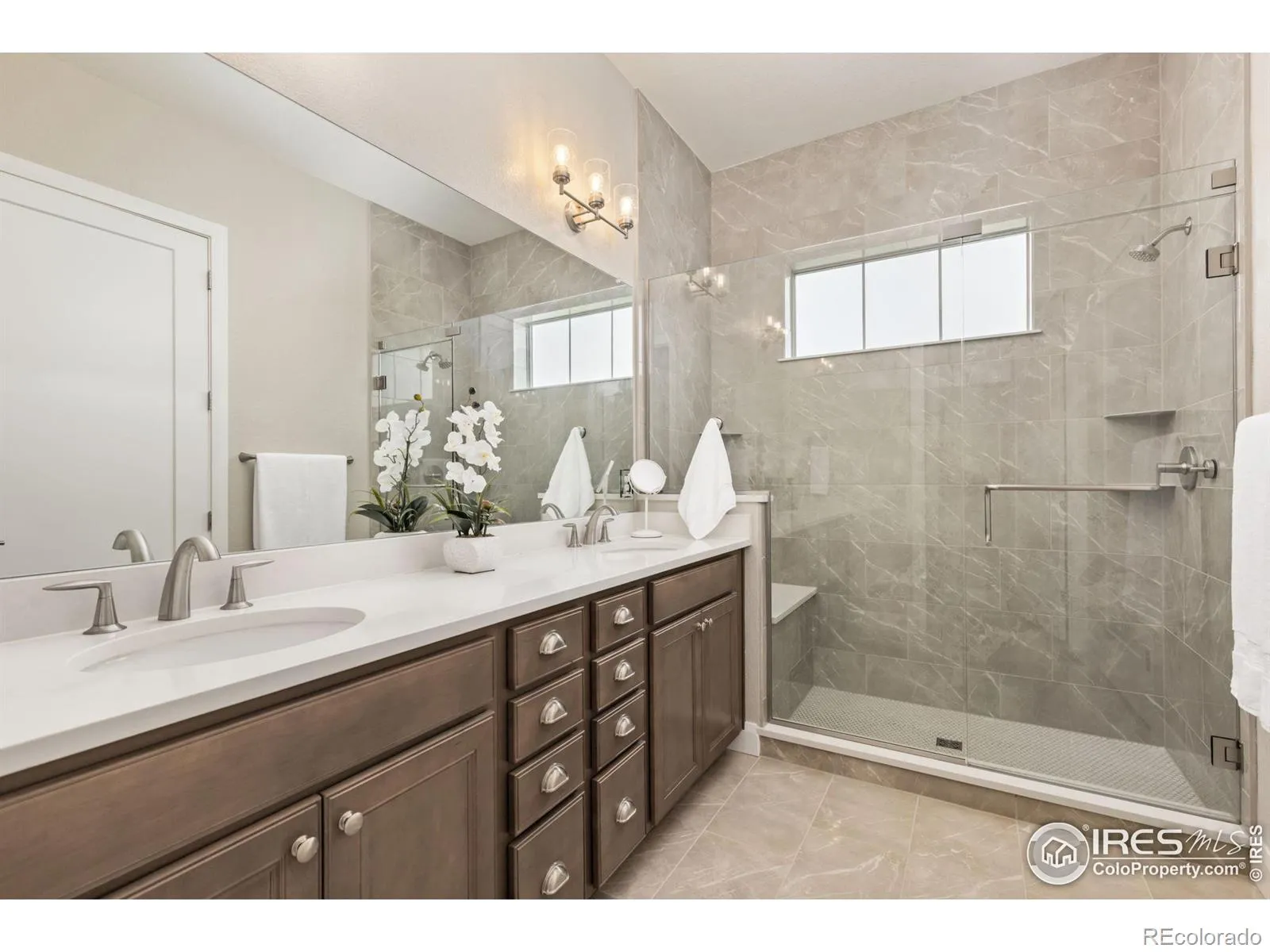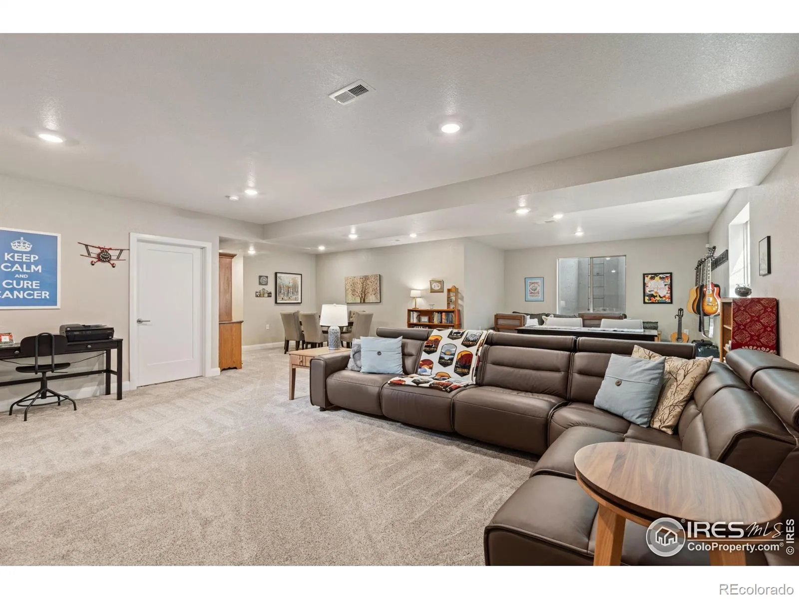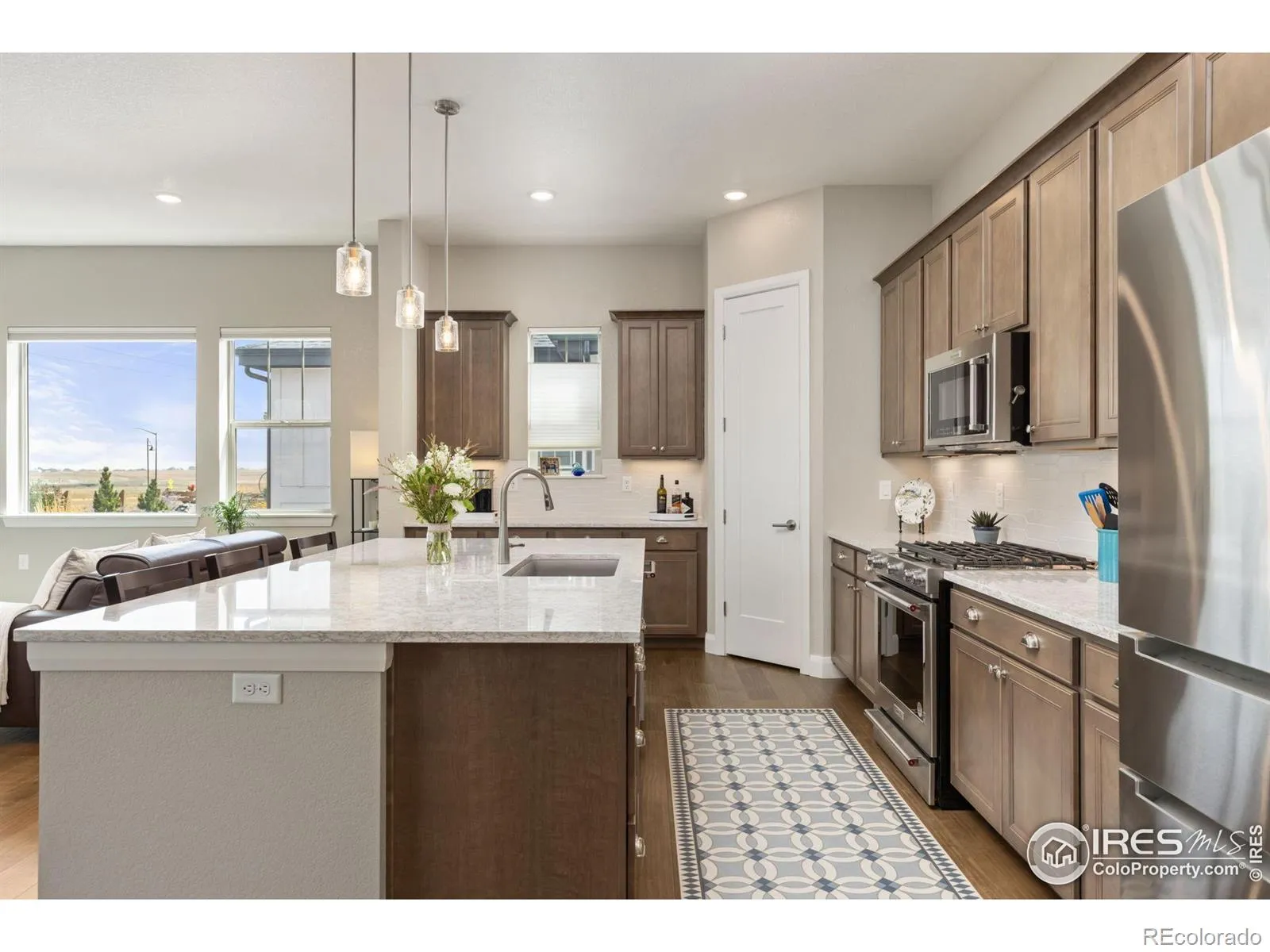 Discover refined ranch-style living in this south-facing Boulder Creek Builders home, perfectly set in Erie’s highly sought-after Colliers Hill community. With 10-foot ceilings on the main level, a flexible open layout, and spaces designed for both comfort and entertainment, this home offers low-maintenance ease and a welcoming neighborhood lifestyle. Inside, a great sunlit room with fireplace flows into a chef’s kitchen featuring a quartz island, KitchenAid stainless appliances, and a walk-in pantry. The main-level has two primary suites offering elegant four-piece baths and walk-in closets. Main level office with French-doors. The finished basement expands the living space with a rec/media room, bedroom, full bath, and three generous unfinished sections for storage, a workshop, a gym and a potential 4th conforming bedroom. Step outside to a professionally landscaped, tranquil backyard, perennial beds, and stonework. Entertain with ease on the expansive patio featuring a hot tub, built-in grill/bar, and covered porch-all with mountain views and direct access to the community’s walking paths and open space. Over-sized two car garage with EV Charger outlet. Life in Colliers Hill is about more than just a home-it’s a vibrant community. Enjoy neighborhood happy hours, two community parks, extensive trails, and resort-style amenities including community pools. HOA services also cover front yard care and snow removal, making everyday living seamless.