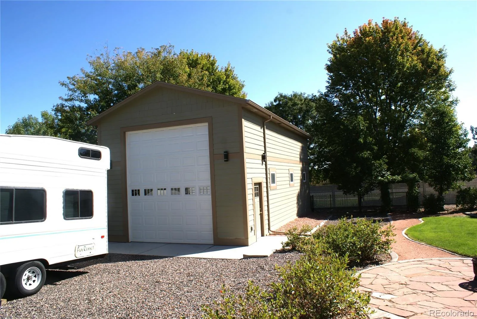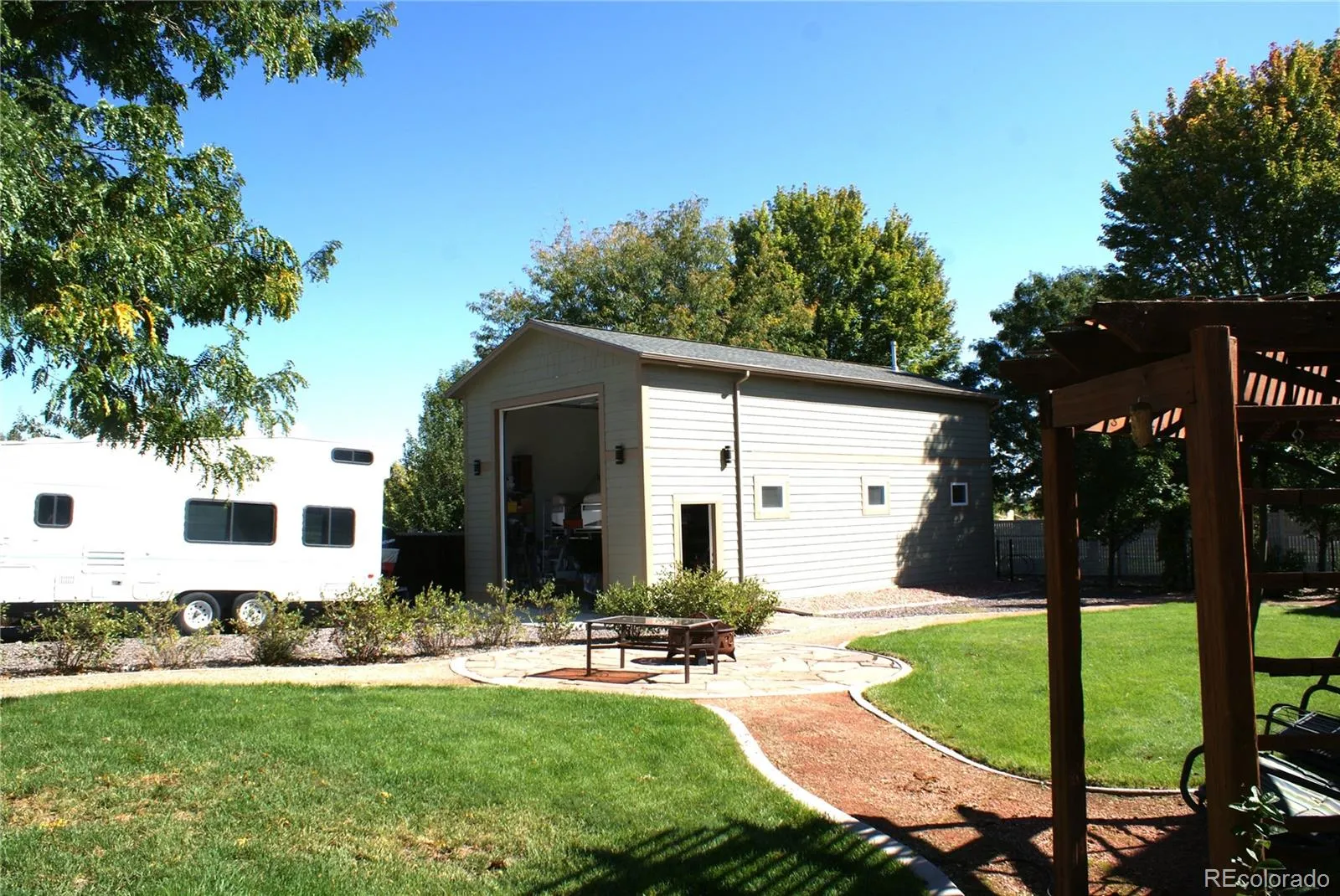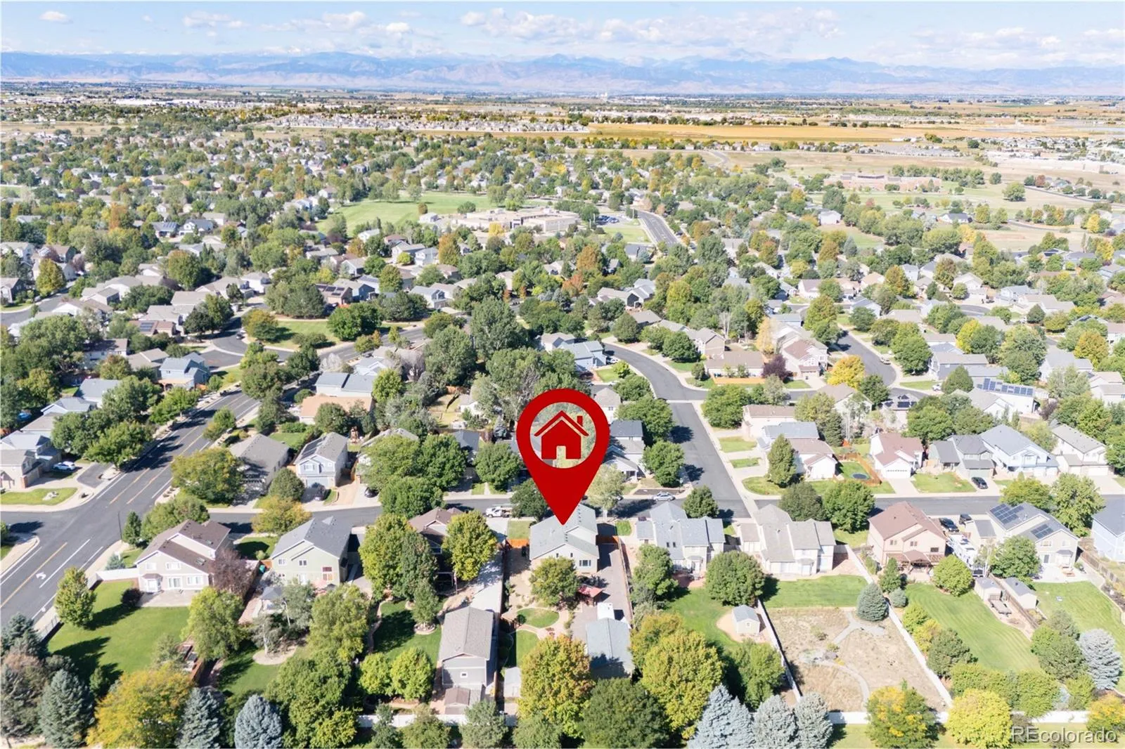 Popular St. Vrain Ranch, west facing 2 story home with main floor primary bedroom, attached 2 car garage and 20×40 detached RV garage (heated, 14′ high x 12′ wide OH door). Basement is finished into a studio bedroom with kitchenette & bathroom. Well landscaped, large lot but not too much grass to mow, RV dump, garden/dog run area, electricity to storage shed, natural gas grill, fenced, sprinkler, gazebo, covered patio. Kitchen has Corian counters, pantry and eating area. Main floor family room with vaulted ceilings and gas fireplace. Primary bath has jetted tub, separate shower, double sinks and walk in closet. Upstairs loft would be good gathering area, office or could be closed in to be an additional bedroom (upstairs bedrooms and loft each have WI closets). Central AC + whole house fan. Access to crawl space for extra storage. Not in a Metro District! Small town living with central location to Denver, Boulder, Longmont, Loveland and DIA.