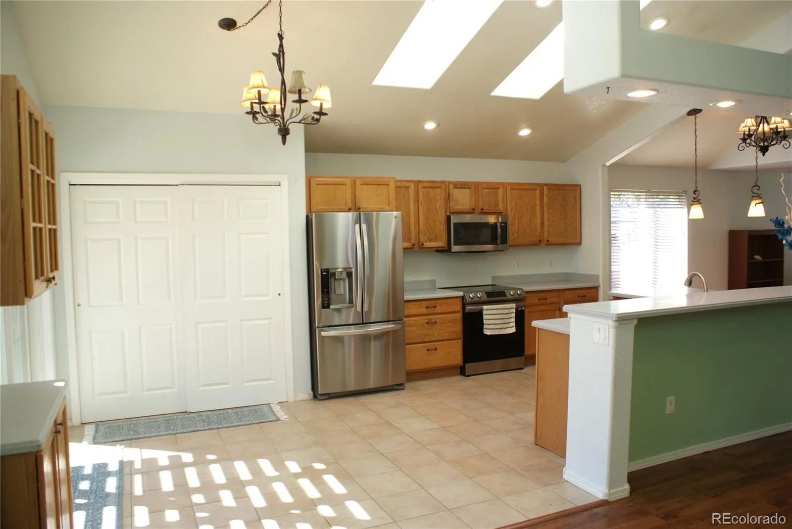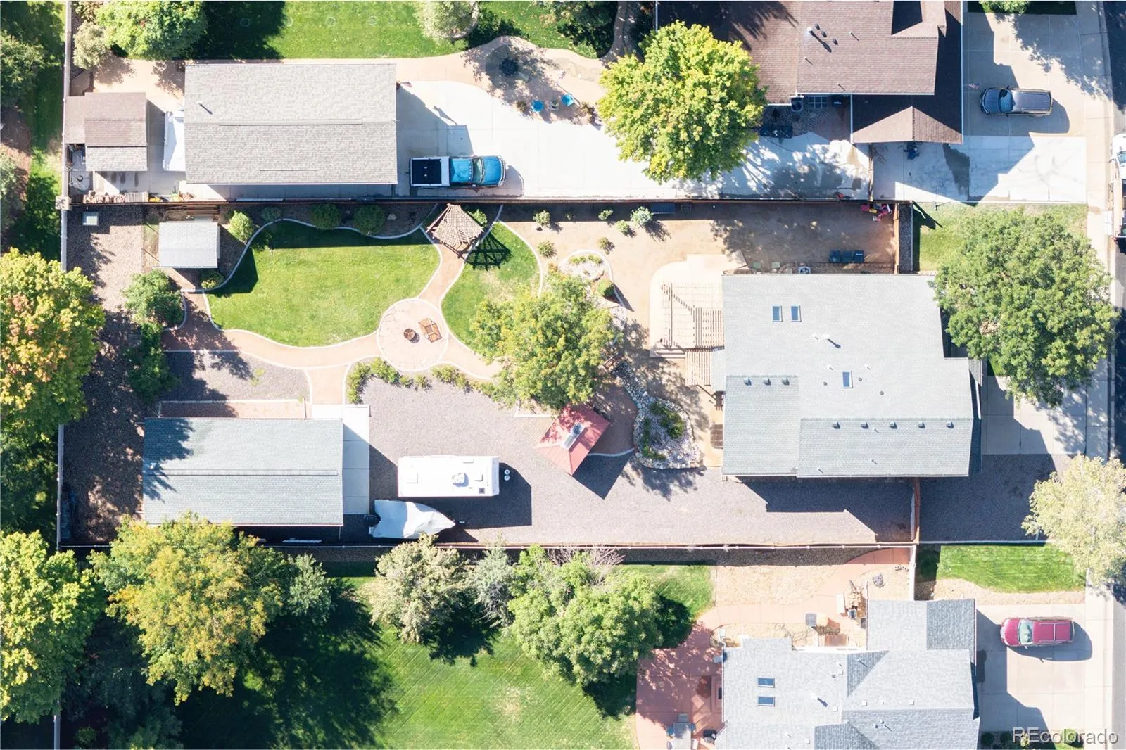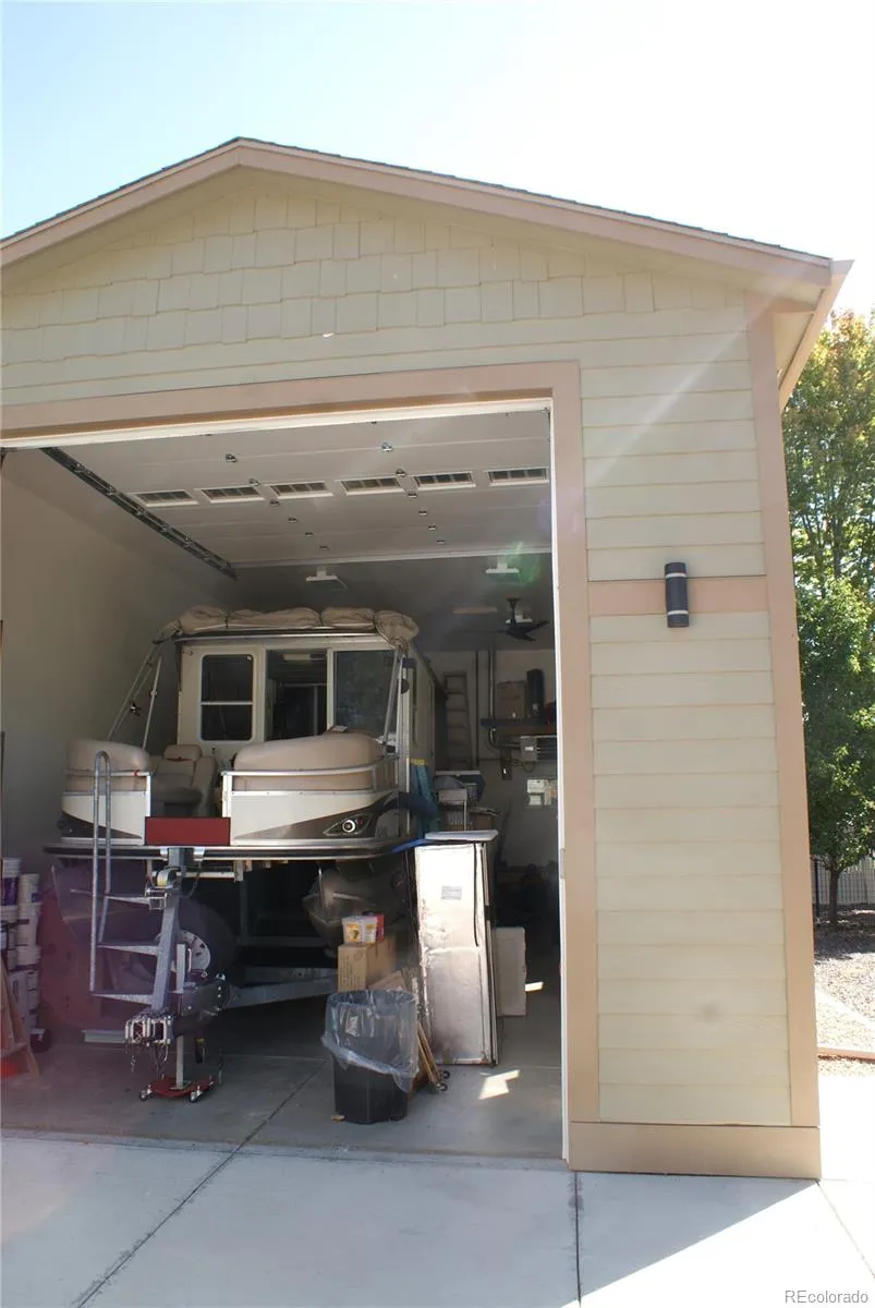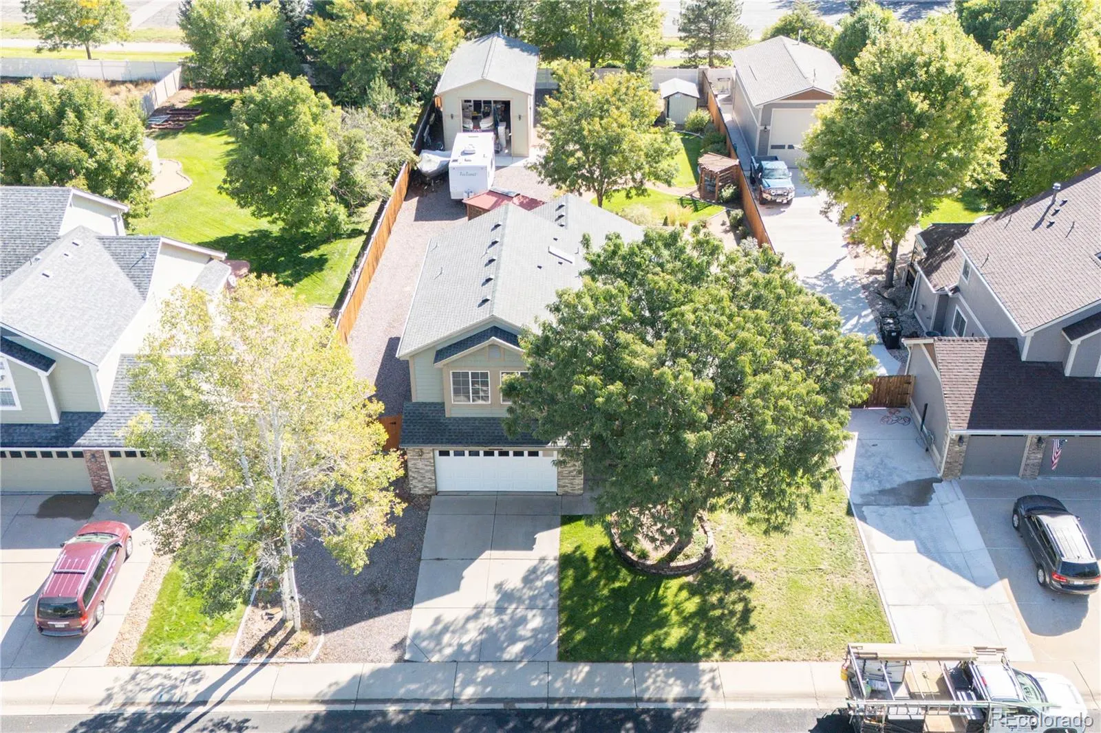 Popular St. Vrain Ranch, west facing 2 story home with main floor primary bedroom, attached 2 car garage and 20×40 detached RV garage (heated, 14′ high x 12′ wide OH door). Basement is finished into a studio bedroom with kitchenette & bathroom. Well landscaped, large lot but not too much grass to mow, RV dump, garden/dog run area, electricity to storage shed, natural gas grill, fenced, sprinkler, gazebo, covered patio. Kitchen has Corian counters, pantry and eating area. Main floor family room with vaulted ceilings and gas fireplace. Primary bath has jetted tub, separate shower, double sinks and walk in closet. Upstairs loft would be good gathering area, office or could be closed in to be an additional bedroom (upstairs bedrooms and loft each have WI closets). Central AC + whole house fan. Access to crawl space for extra storage. Not in a Metro District! Small town living with central location to Denver, Boulder, Longmont, Loveland and DIA.