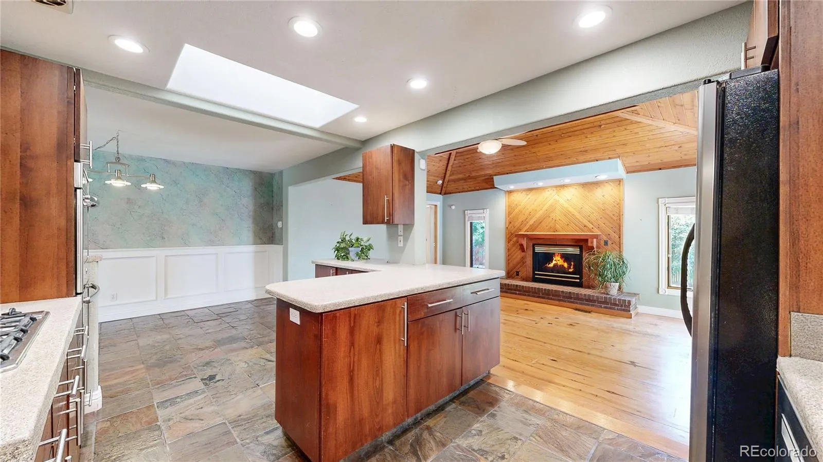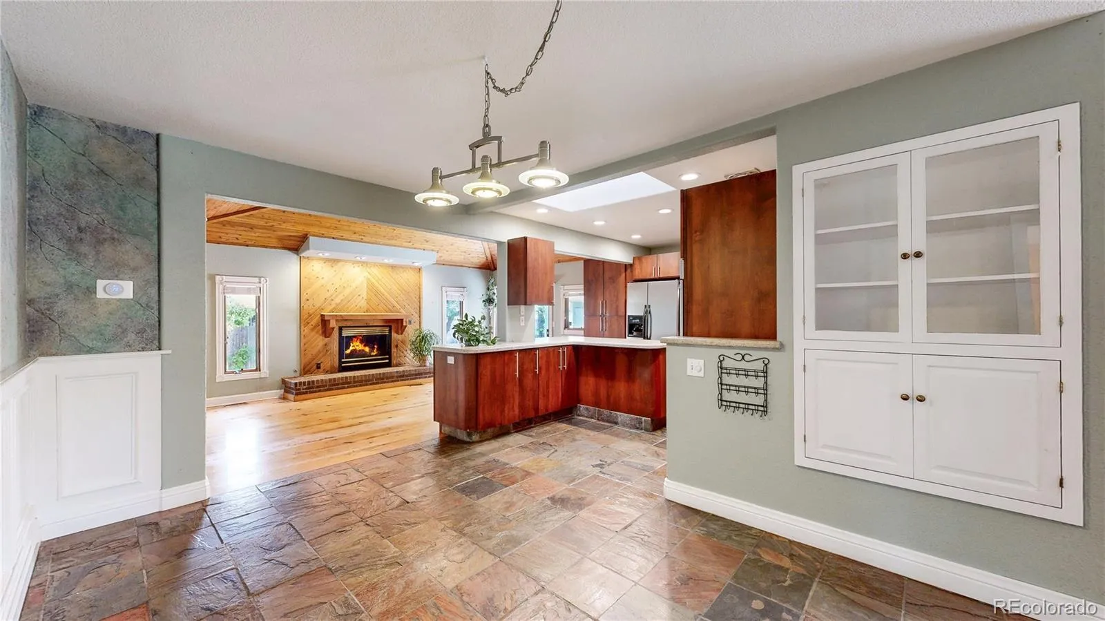 Nestled in desirable Green Mountain Village, this stunning brick ranch greets you with a charming full-length covered front porch-perfect for savoring your morning coffee or enjoying afternoon spritzes. As you step inside, you’re welcomed by beautiful wood floors and inviting tongue-and-groove ceilings that exude warmth and character. With five spacious bedrooms and multiple living areas, including cozy fireplaces on each level, there’s ample room for everyone to spread out and unwind. The open kitchen is truly a chef’s paradise, equipped with a gas cooktop, newer dishwasher, double oven, and microwave-ideal for crafting culinary delights. The true showstopper of this home is its private and serene backyard oasis. Imagine spending your evenings on the covered patio surrounded by mature landscaping and plush foliage, including a delicious apple tree! The backyard also features a greenhouse, wraparound tree bench, and a stunning water feature, creating a peaceful paradise that makes it hard to ever want to head indoors. In addition to its beautiful features, this home is conveniently located near Green Mountain, multiple parks, scenic trails, Red Rocks, and a variety of dining and shopping options. You’ll enjoy the best of Colorado living right at your doorstep! The insulated and heated 2-car garage is perfect for your vehicles and recreational gear. With a new AC and furnace, you can have peace of mind while you spend your free time exploring the great outdoors. It’s all here!