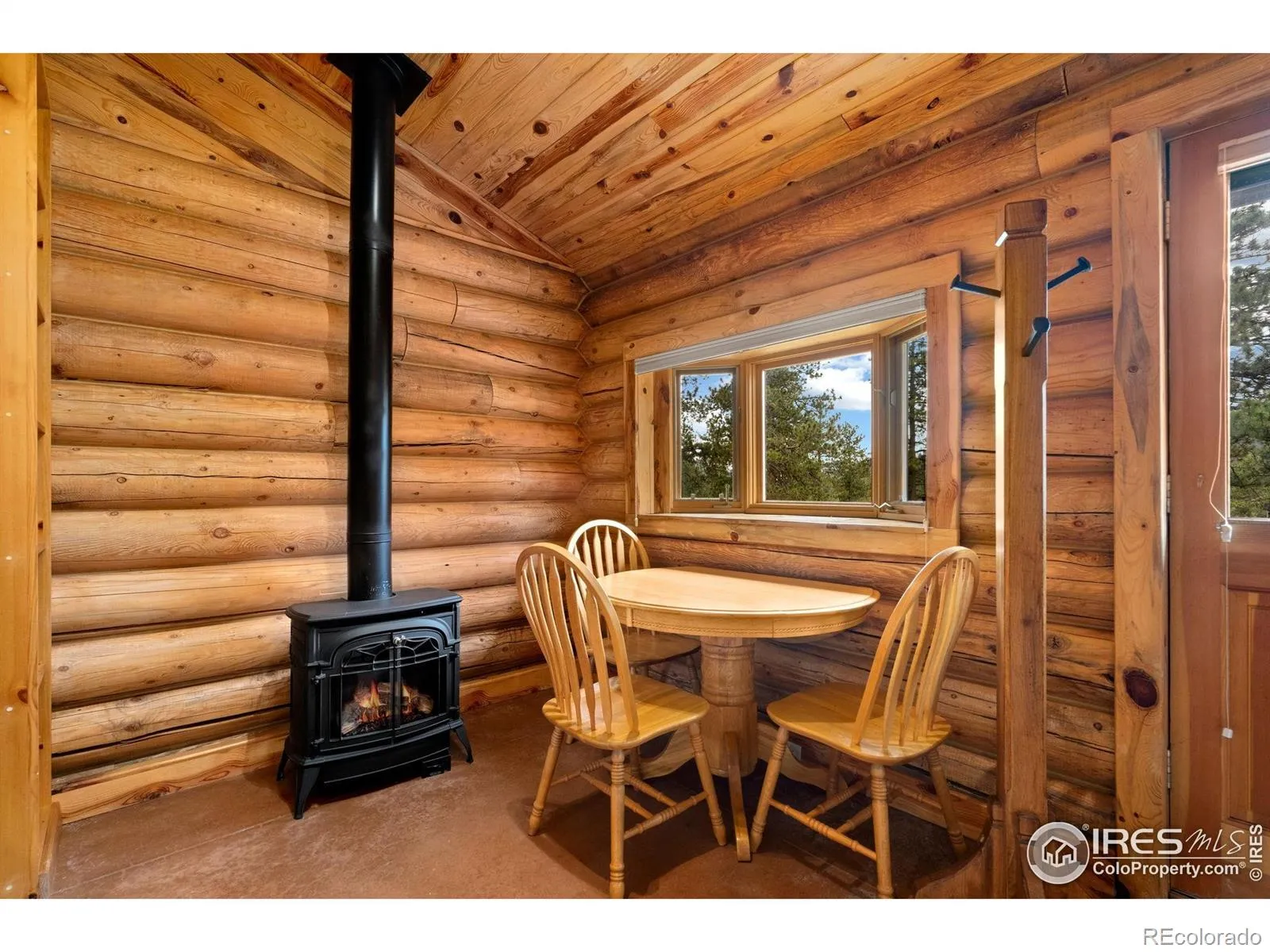 Welcome to 16235 County Road 18E – a truly unbelievable 31-acre mountain horse property known as “Back Home Acres.” Just 20 minutes from Mariana Butte Golf Course and only 5 minutes from Pinewood Reservoir, this private retreat offers unparalleled access to wakeless water sports, fishing, hiking, and camping, while providing all the peace and seclusion of mountain living. Enter through the electronic gate to find three horse-safe, fully fenced pastures, a hay barn, and a horse barn with a beautifully finished 675 sq ft upstairs great room complete with a 3/4 bath-ideal for guests, a studio, or entertaining. The main log home features 3 bedrooms and 2 baths, a durable metal roof, and a walkout basement. Inside, you’ll find a vaulted, open-concept kitchen and living area centered around a cozy stone fireplace, a sunlit primary suite with vaulted ceilings, and a spacious mudroom outfitted with a dog bath and exercise space. The walkout basement adds two additional bedrooms, another full bath, and a bright area perfect for a home office or family room. The property also includes a charming ~400 sq ft studio cabin with a partial kitchenette, a full bath, and a gas heat stove-making it ideal as guest quarters, a creative retreat, or a private home office. Additional amenities include a detached two-car garage and a large dog run currently housing beehives. Surrounded by gently rolling terrain, fire-mitigated trees, and sweeping views, the property is alive with abundant wildlife, birds, and native flora. Located near Ramsey-Shockey Open Space and thoughtfully maintained, this one-of-a-kind mountain estate offers both serenity and versatility-perfectly blending nature, comfort, and convenience.