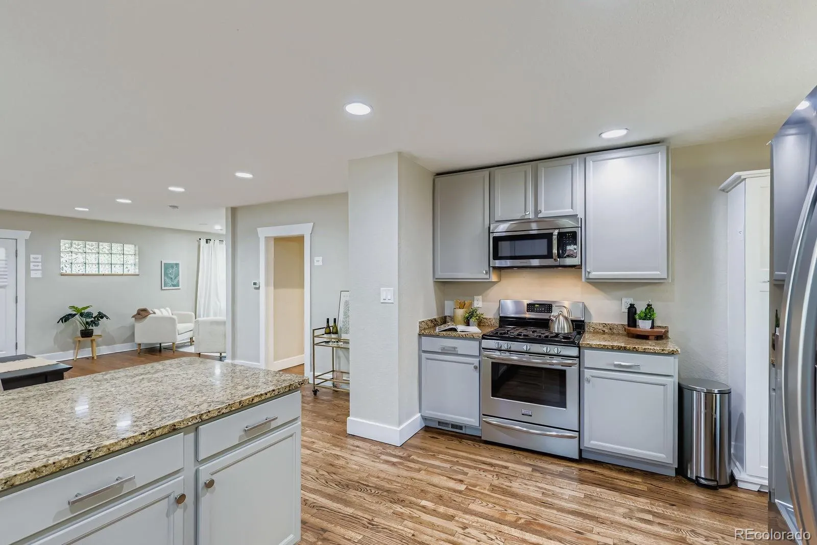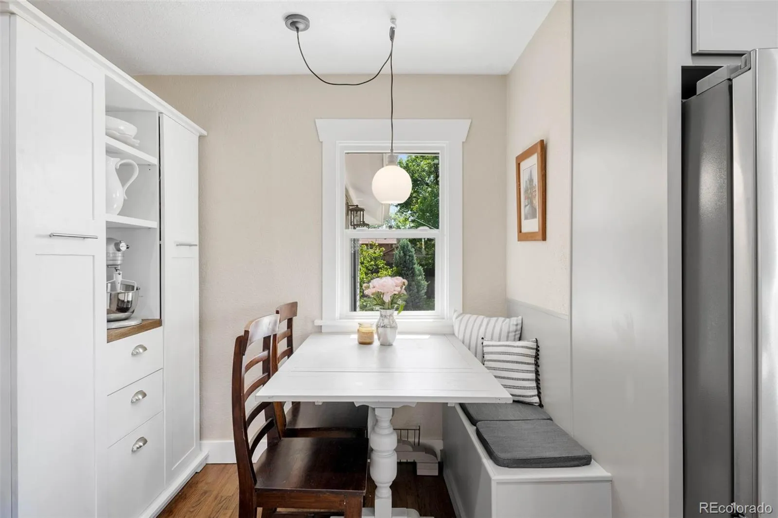 The heart of the home is a spacious, functional kitchen with a gas range, custom pull-out pantry, and a cozy eat-in nook. Whether it’s quiet mornings or lively dinner parties, this space is designed for connection.